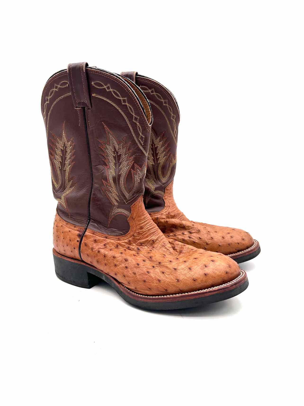 Larry Mahan Size 10 Tan/Brown Stitched Ostrich AS IS Men's Boots- Men's