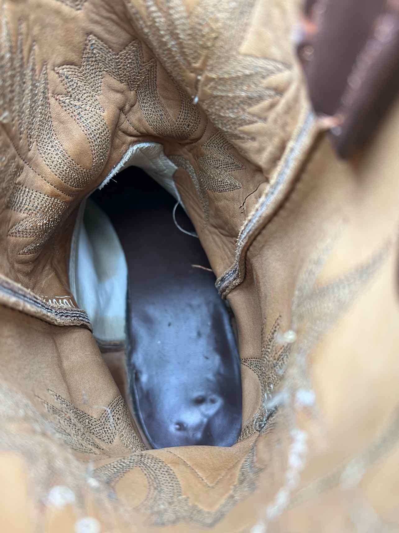 Justin Size 10.5 Tan/Brown Embroidered Leather AS IS Men's Shoes Boots- Men's