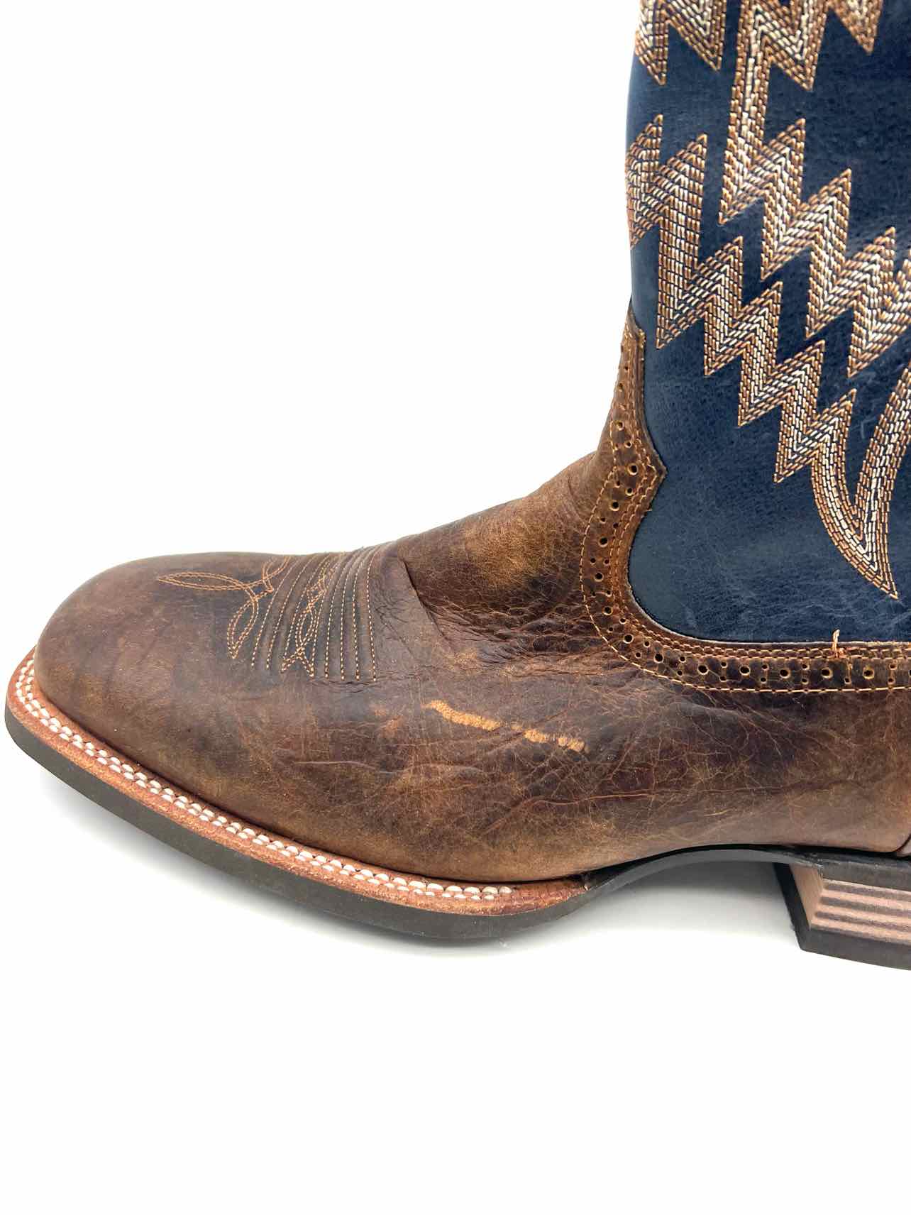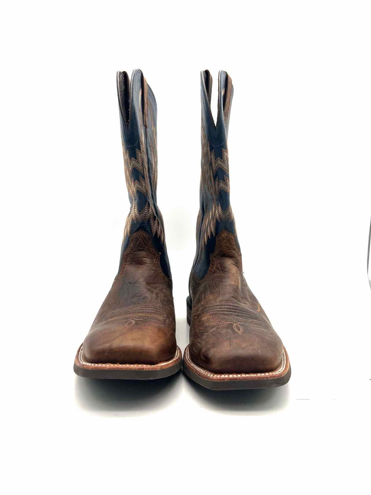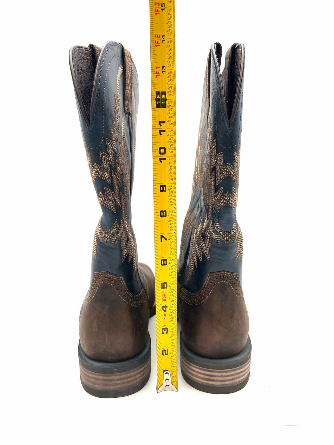 Ariat Size 12 Navy/Brown Embroidered Leather Men's Shoes Boots- Men's