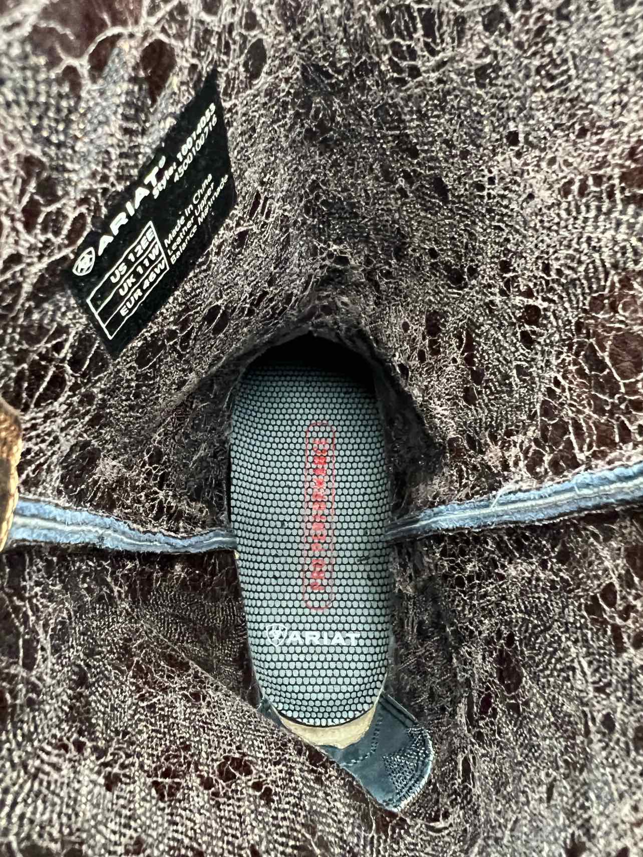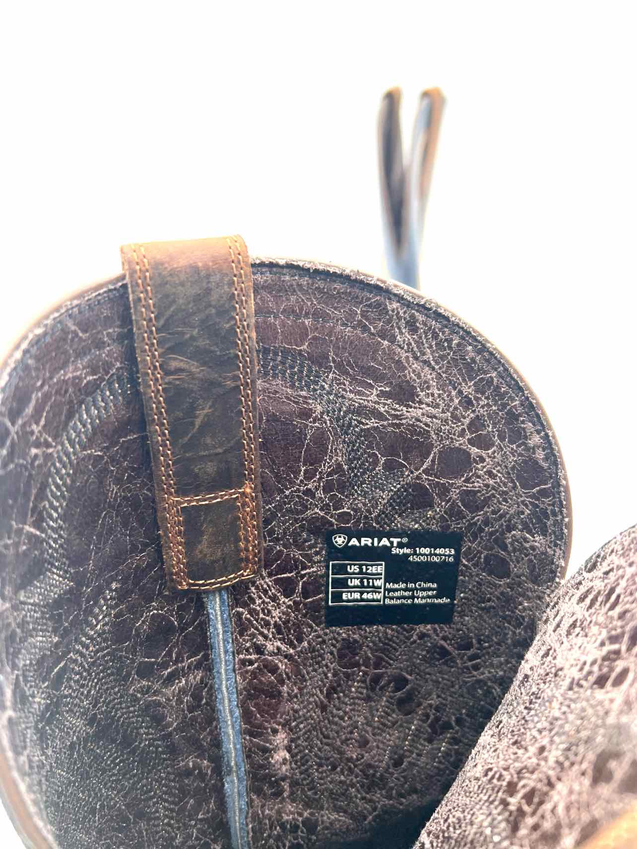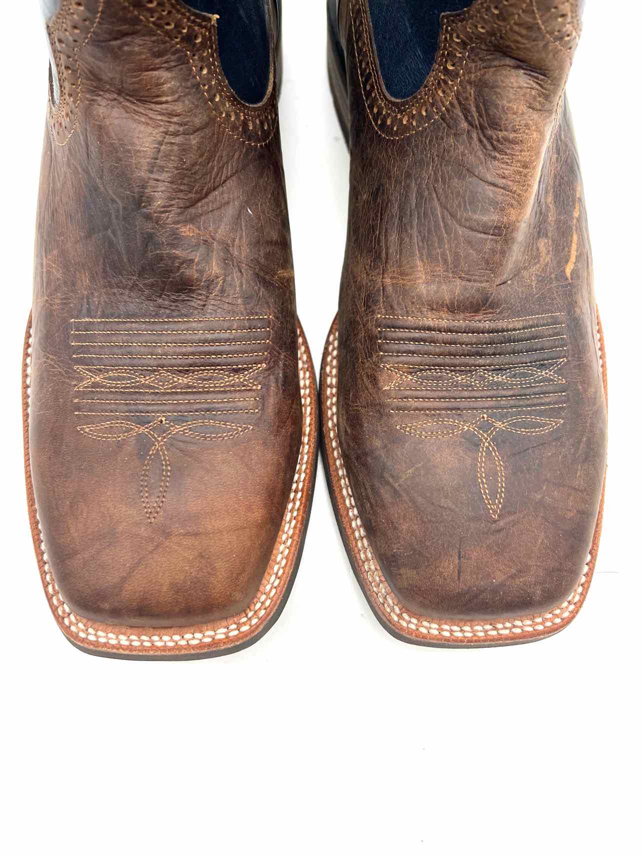 Ariat Size 12 Navy/Brown Embroidered Leather Men's Shoes Boots- Men's
