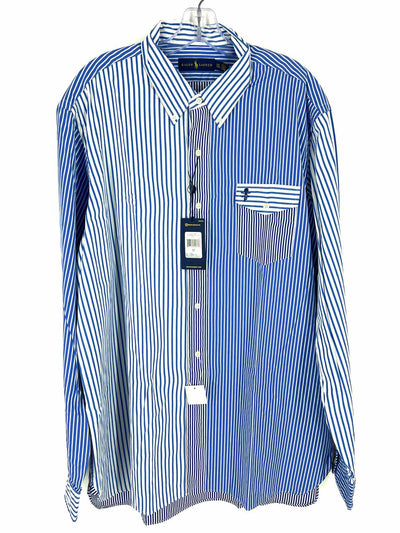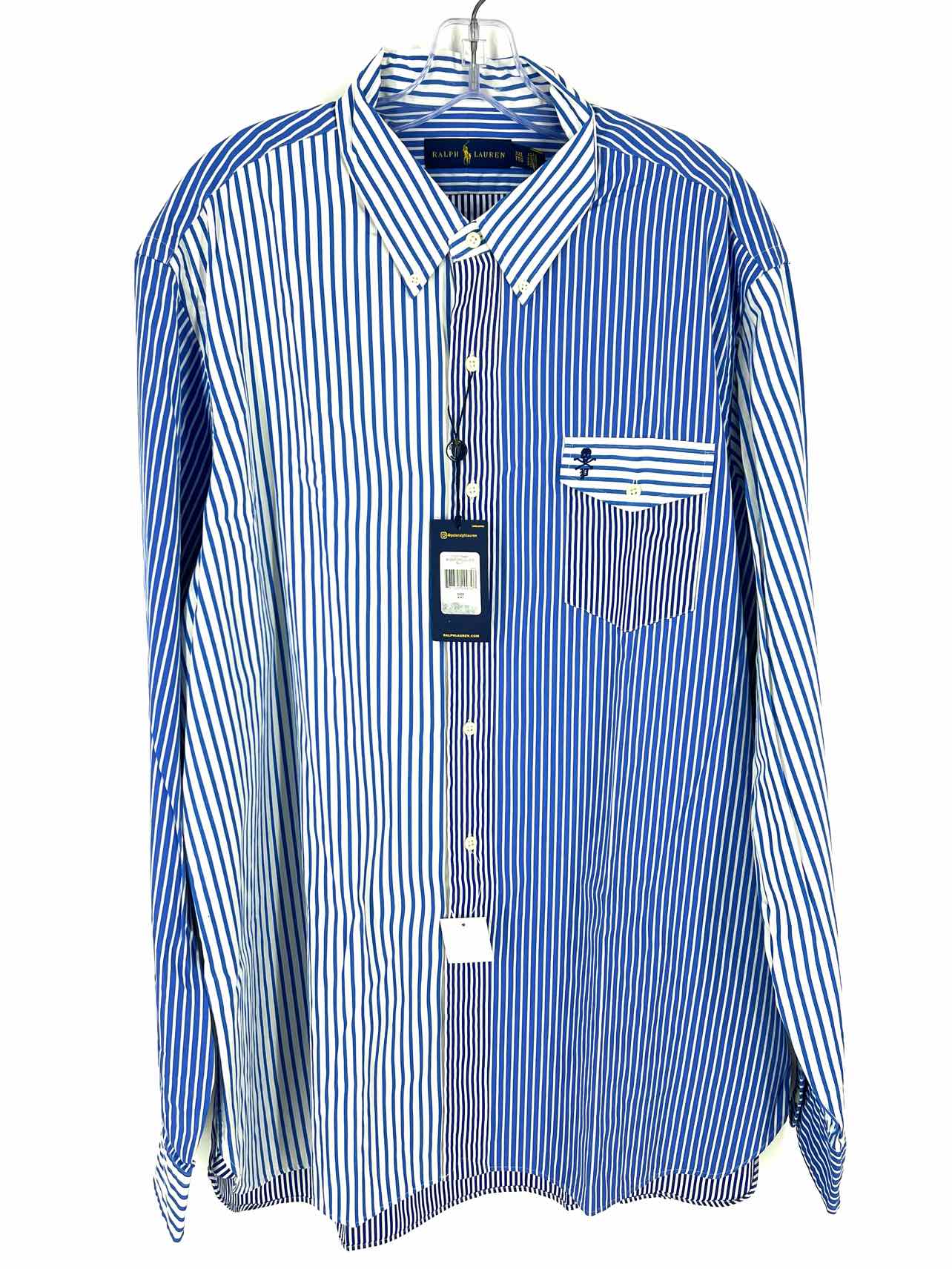 Ralph Lauren Size XXL Blue/White Applique Stripe NEW Shirt-Long Sleeve- Men's