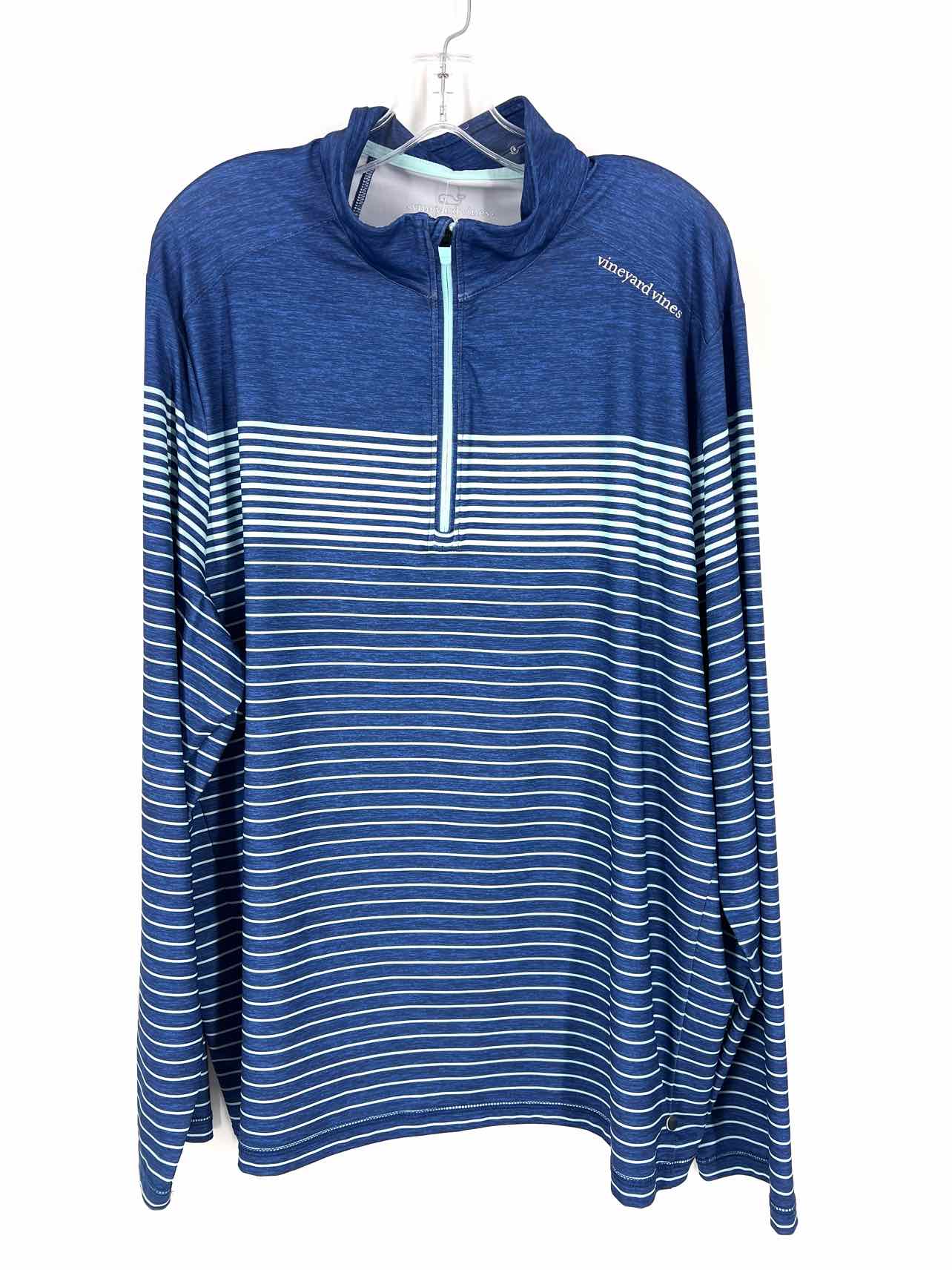 Vineyard Vines Size XXL Navy/Aqua Stripe Quarter Zip Men's Pullover- Men's