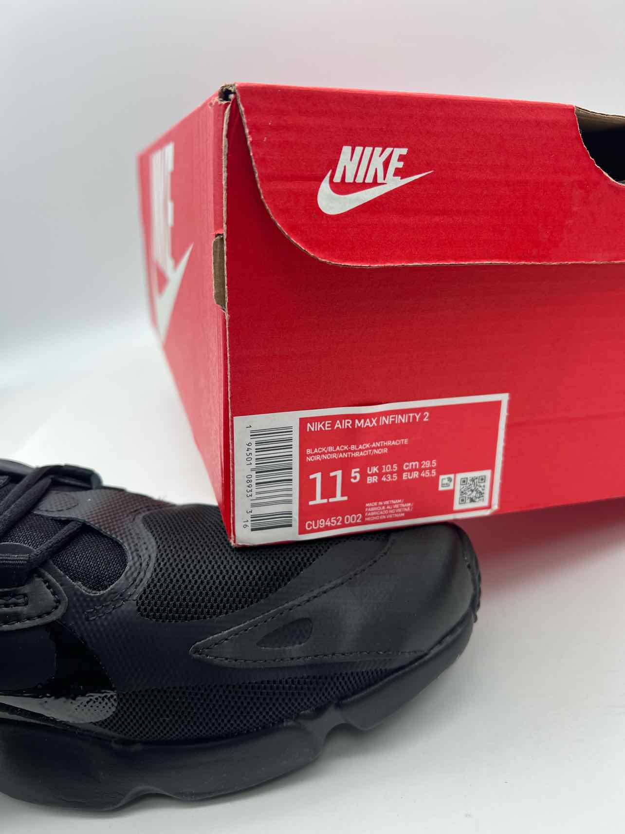 Nike Size 11.5 Black Lace-Up Leather/Mesh W/ BOX!!! Men's Shoes Sneakers- Men's
