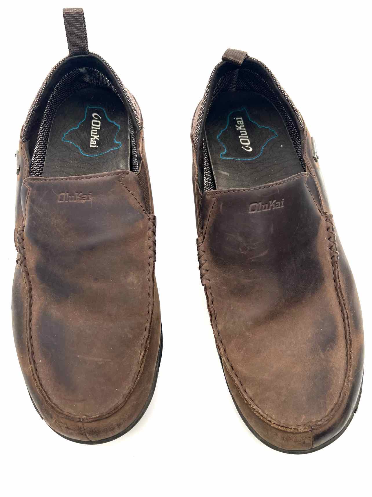 OluKai Size 12 Dk Brown Slip-On Leather Men's Shoes Loafers- Men's
