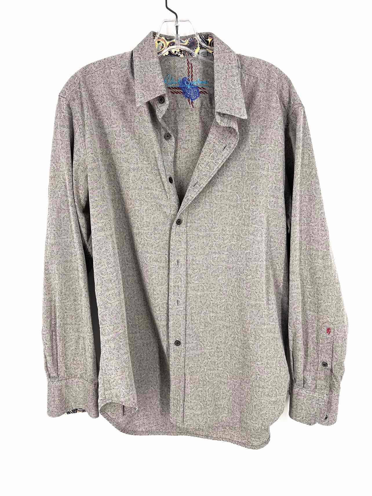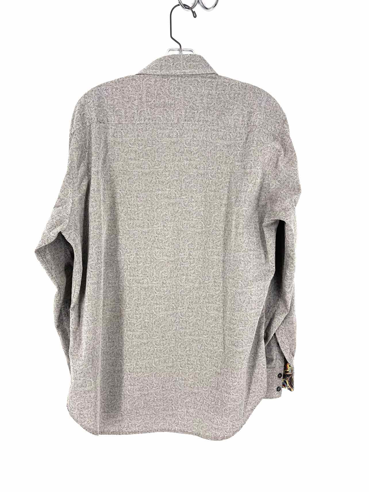 Robert Graham Size L Gray/White Print Men's Shirt-Long Sleeve- Men's