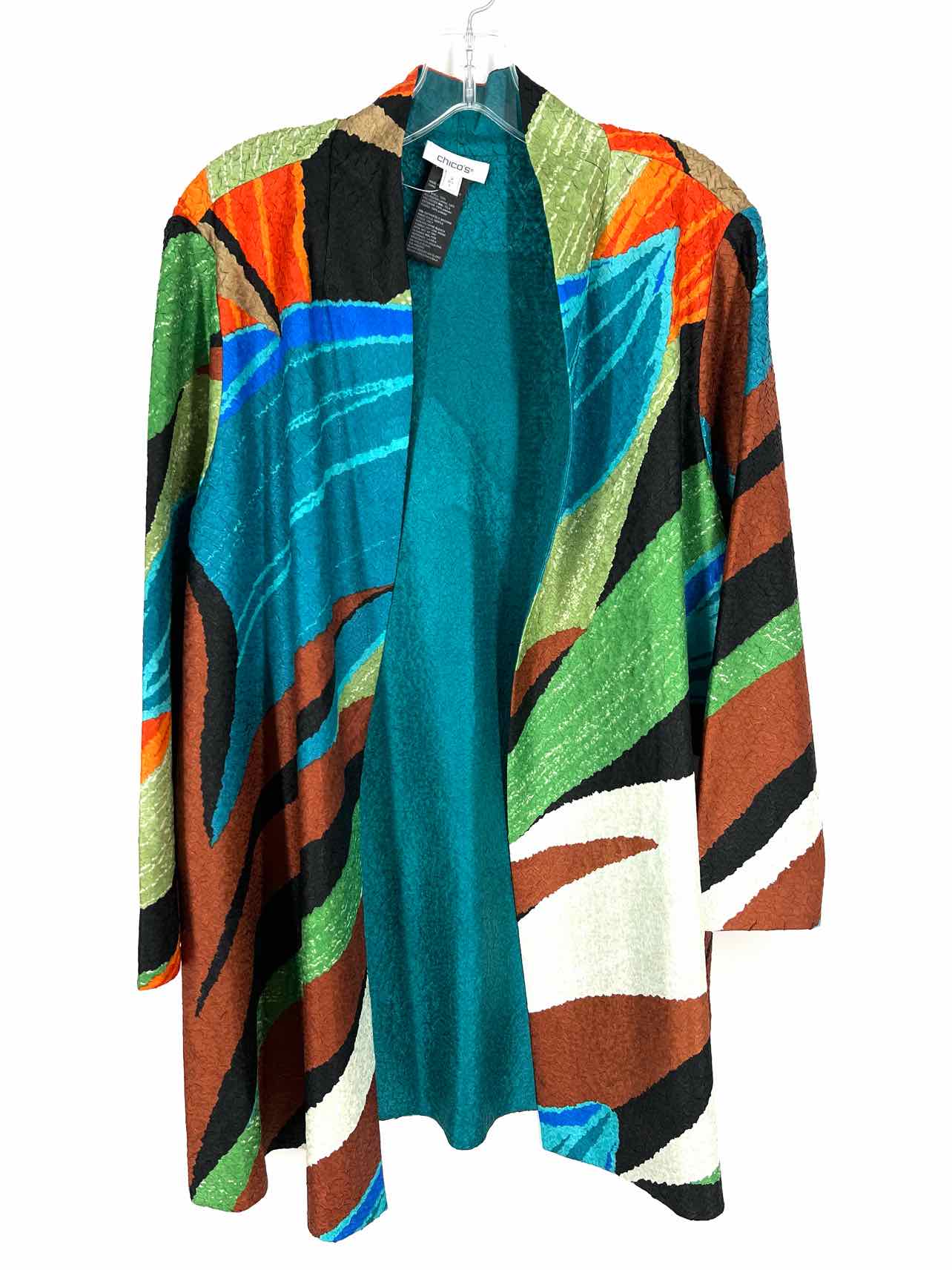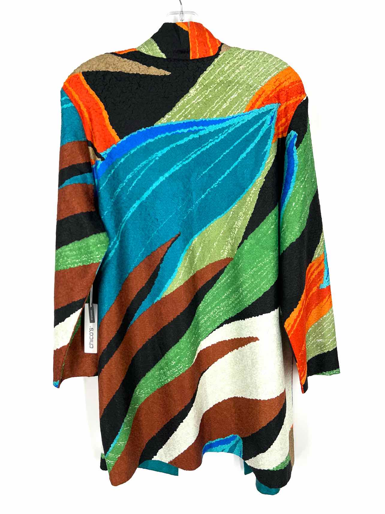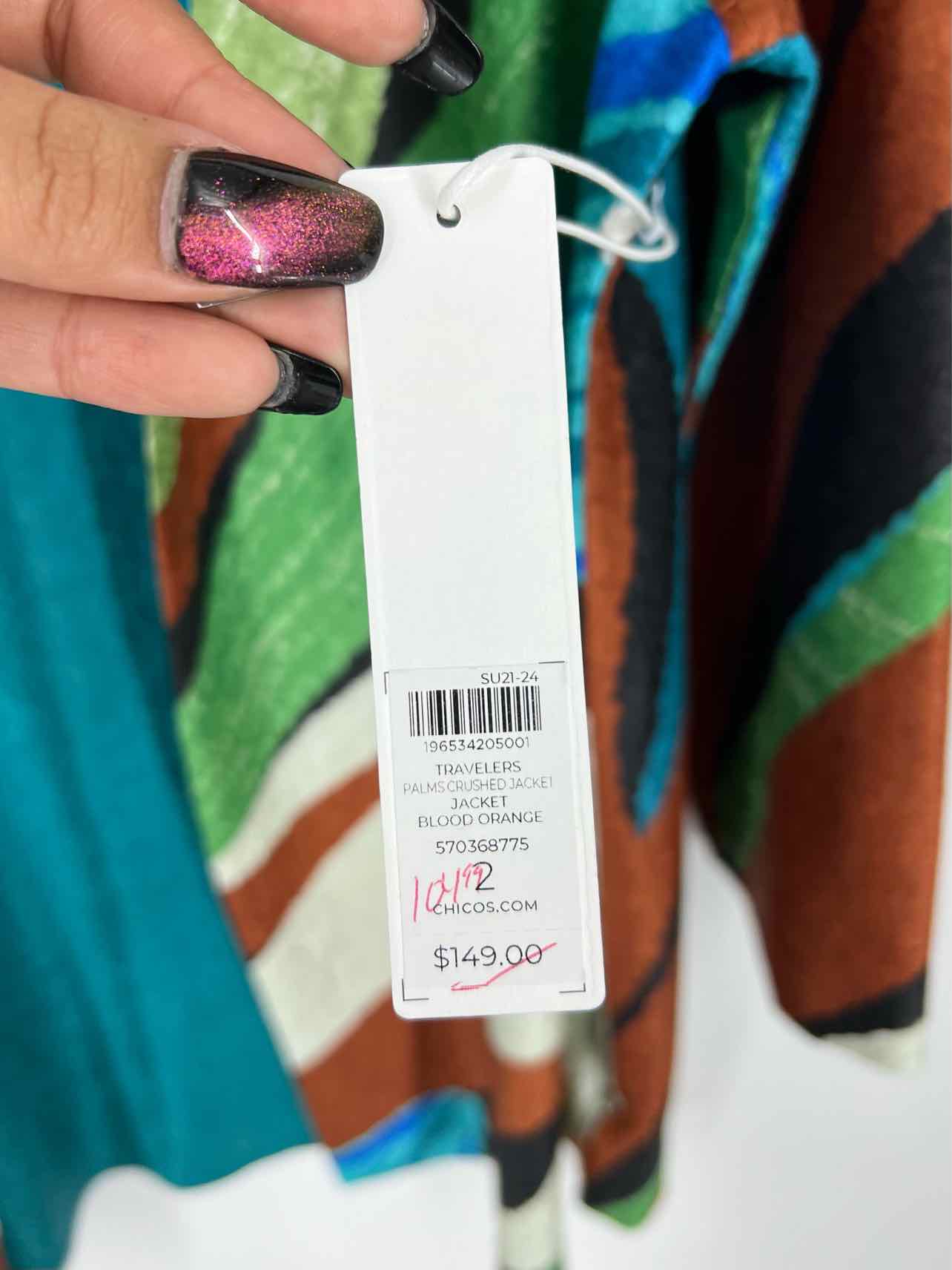 Chico's Size 2 Blue/Multi Print Textured NEW NB Cardigan