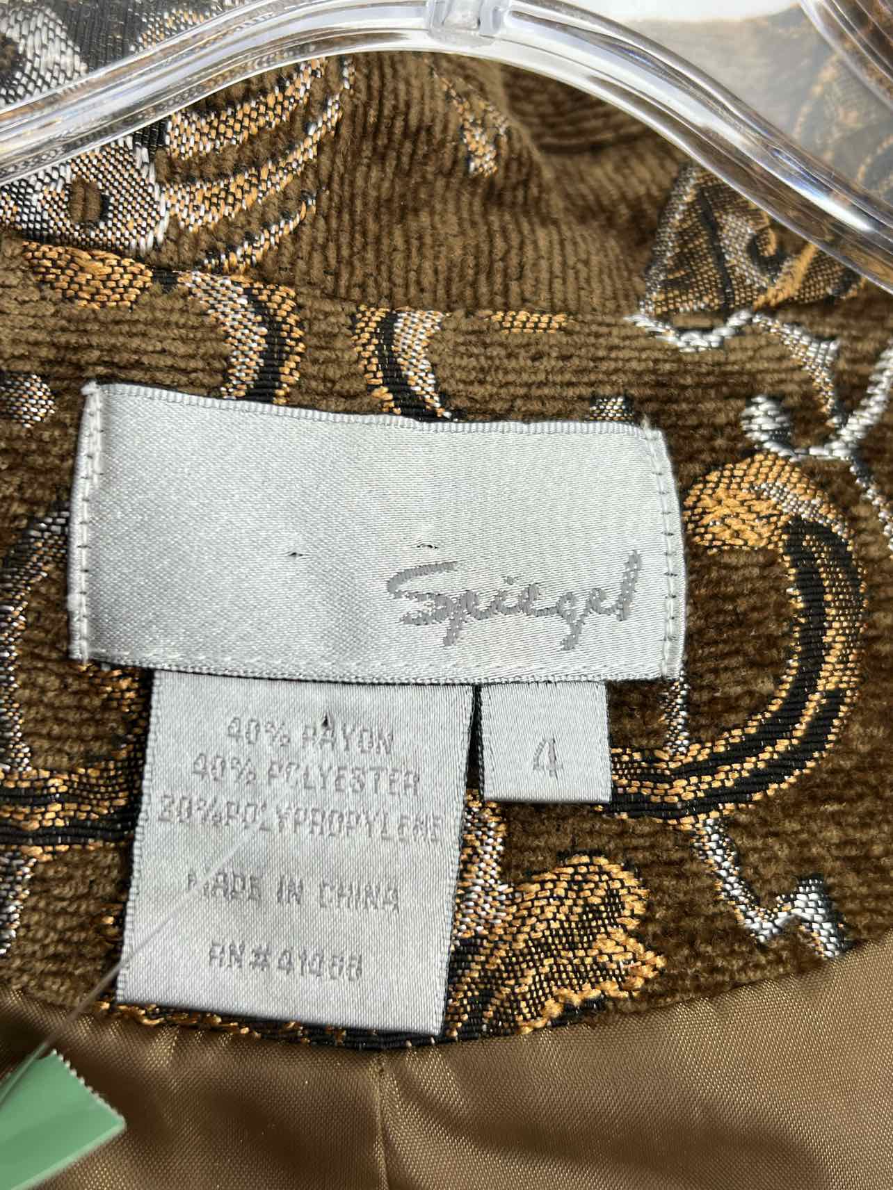 Spiegel Size 4 Br/Gld/Slv Print Metallic Blazer Jacket