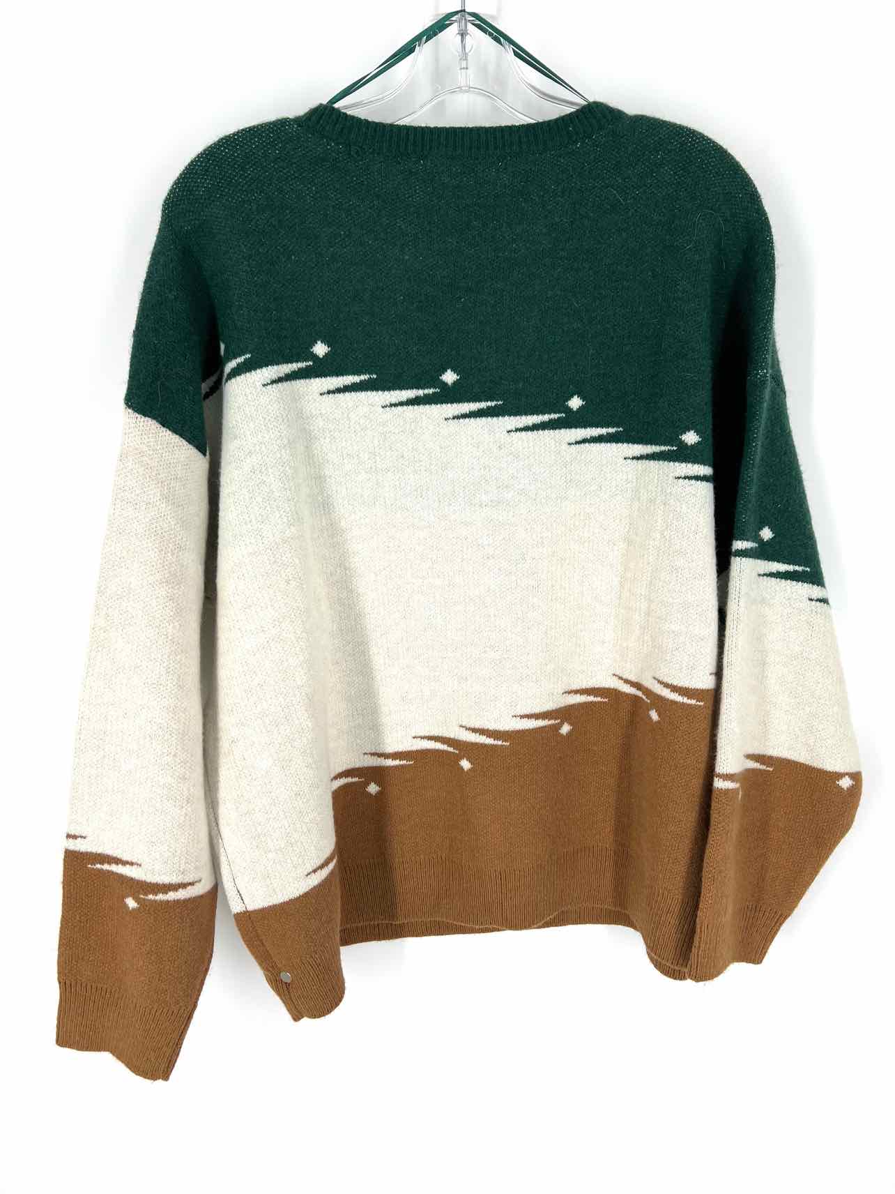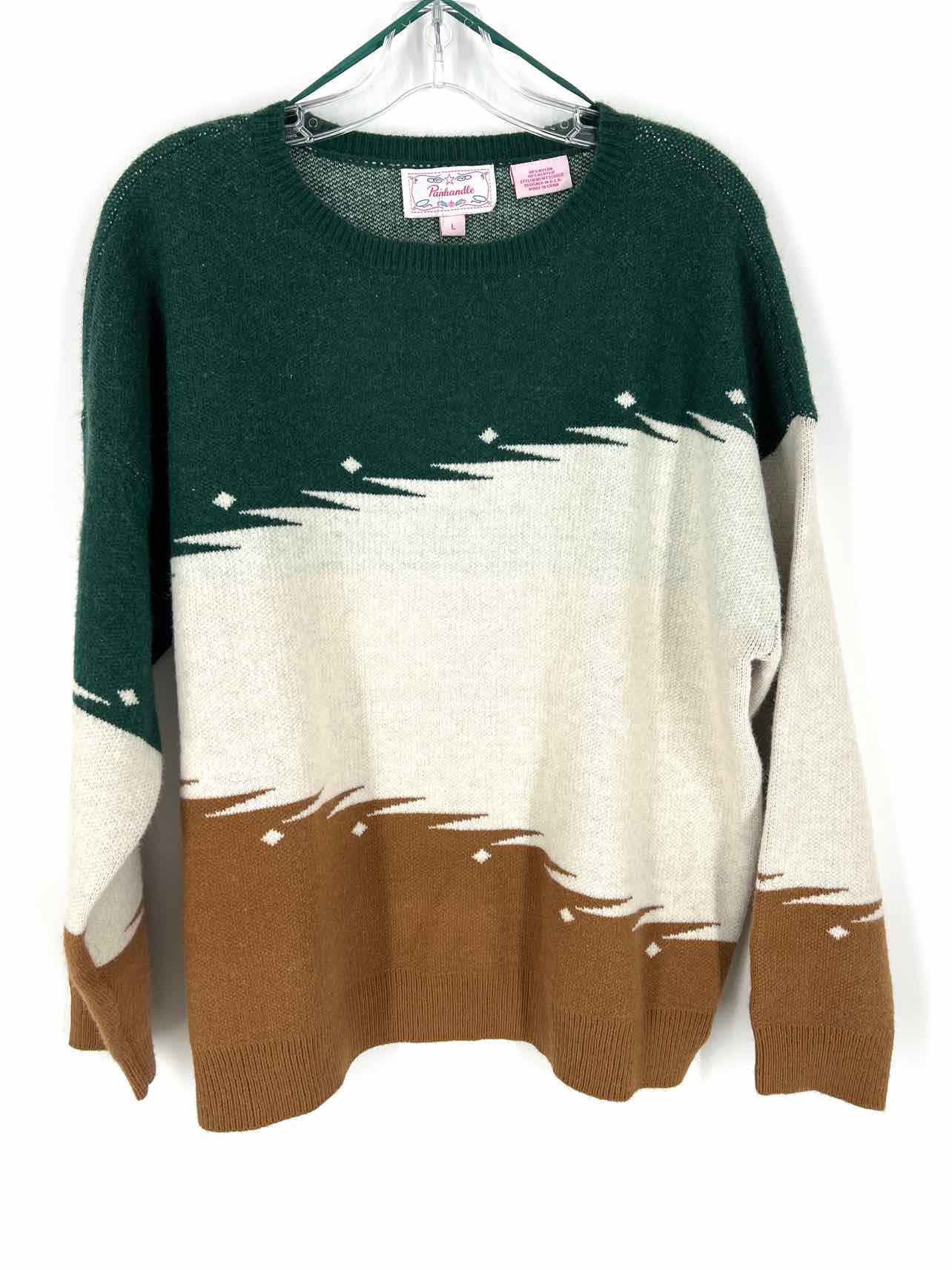 Panhandle Size L Green/Beige Blocked Western Sweaters Sweater