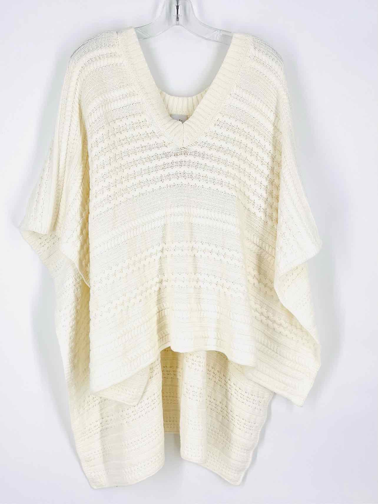 Cabi Size L ? Ivory Cable Knit Stripe Sweaters Poncho