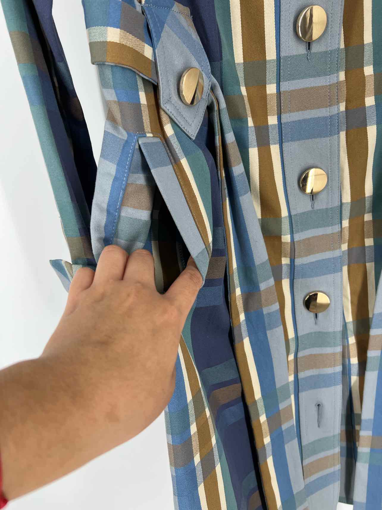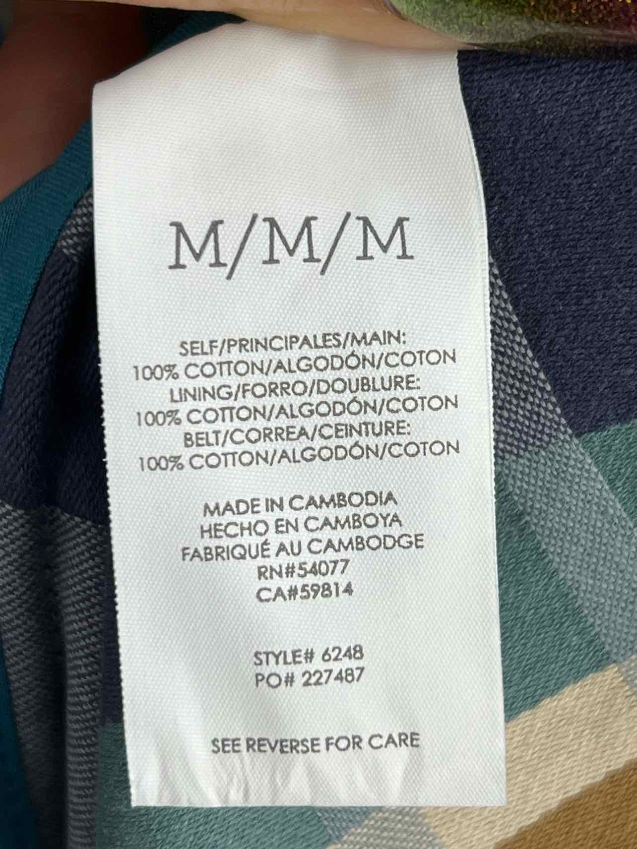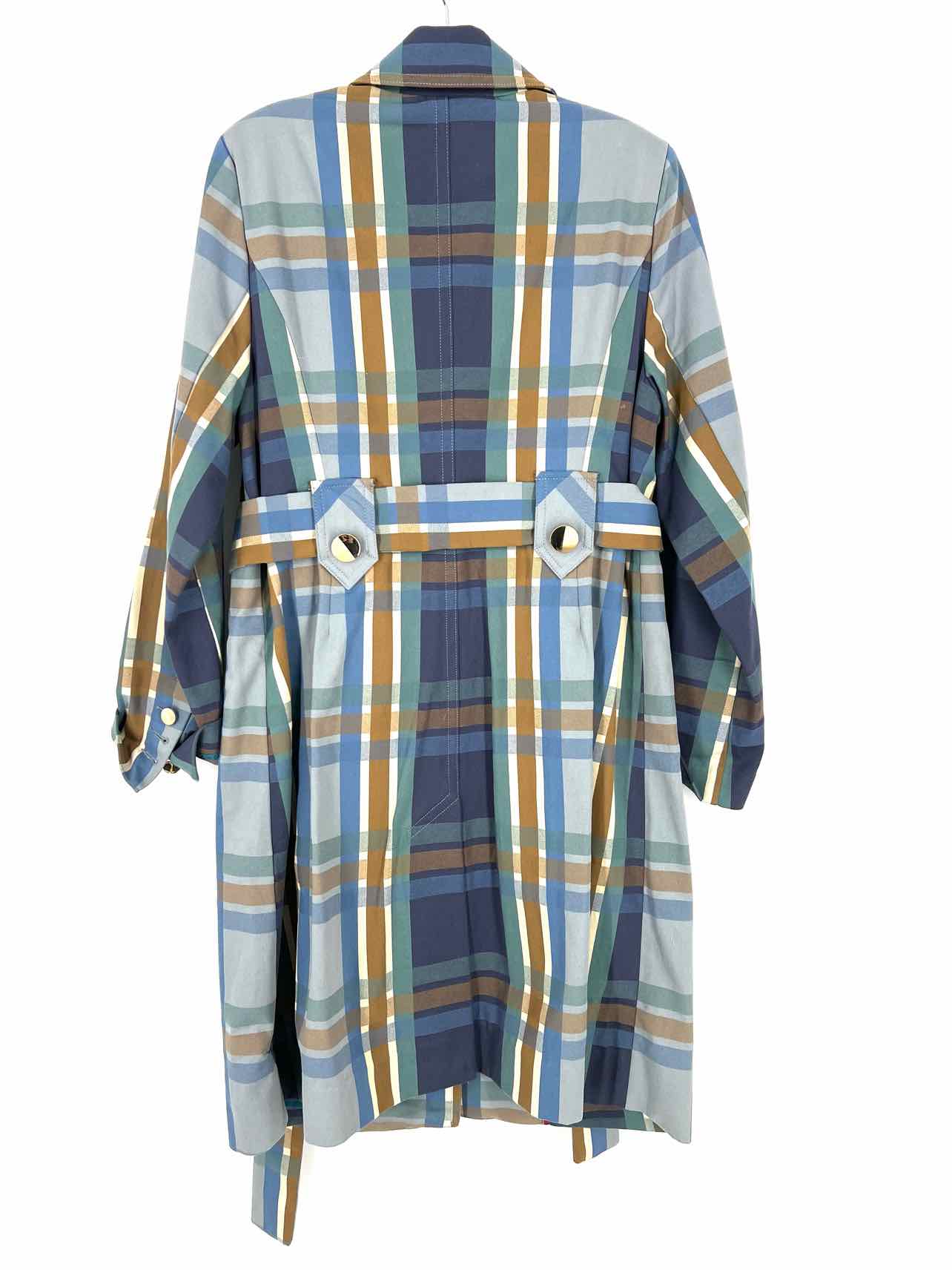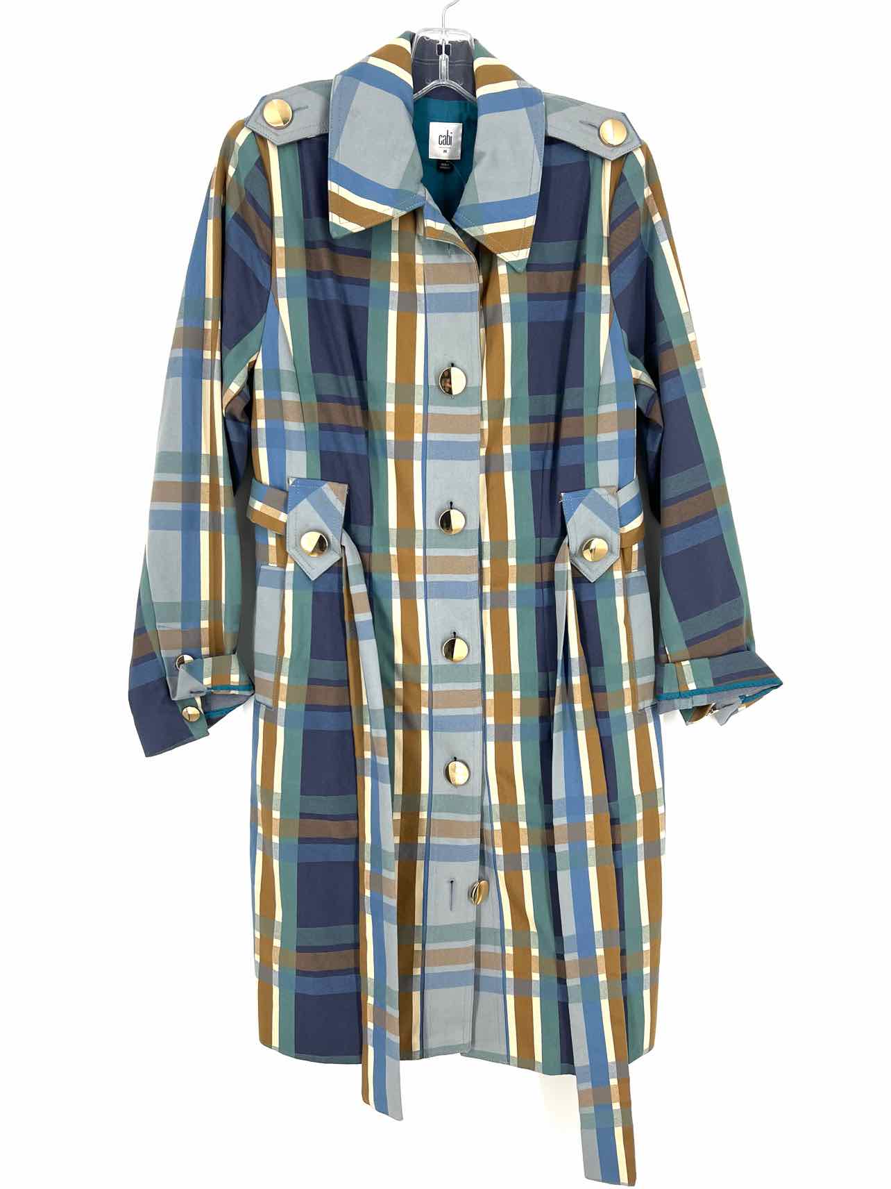Cabi Size M Navy/Brown Plaid Belted Designer Trenchcoat