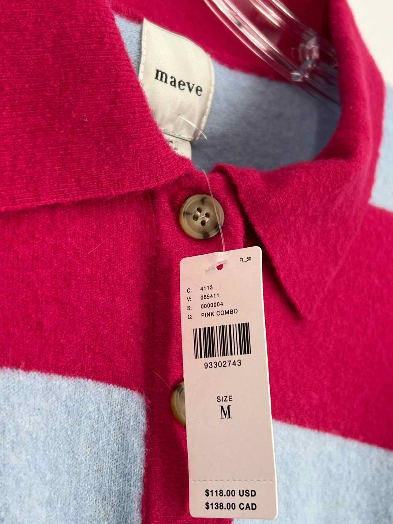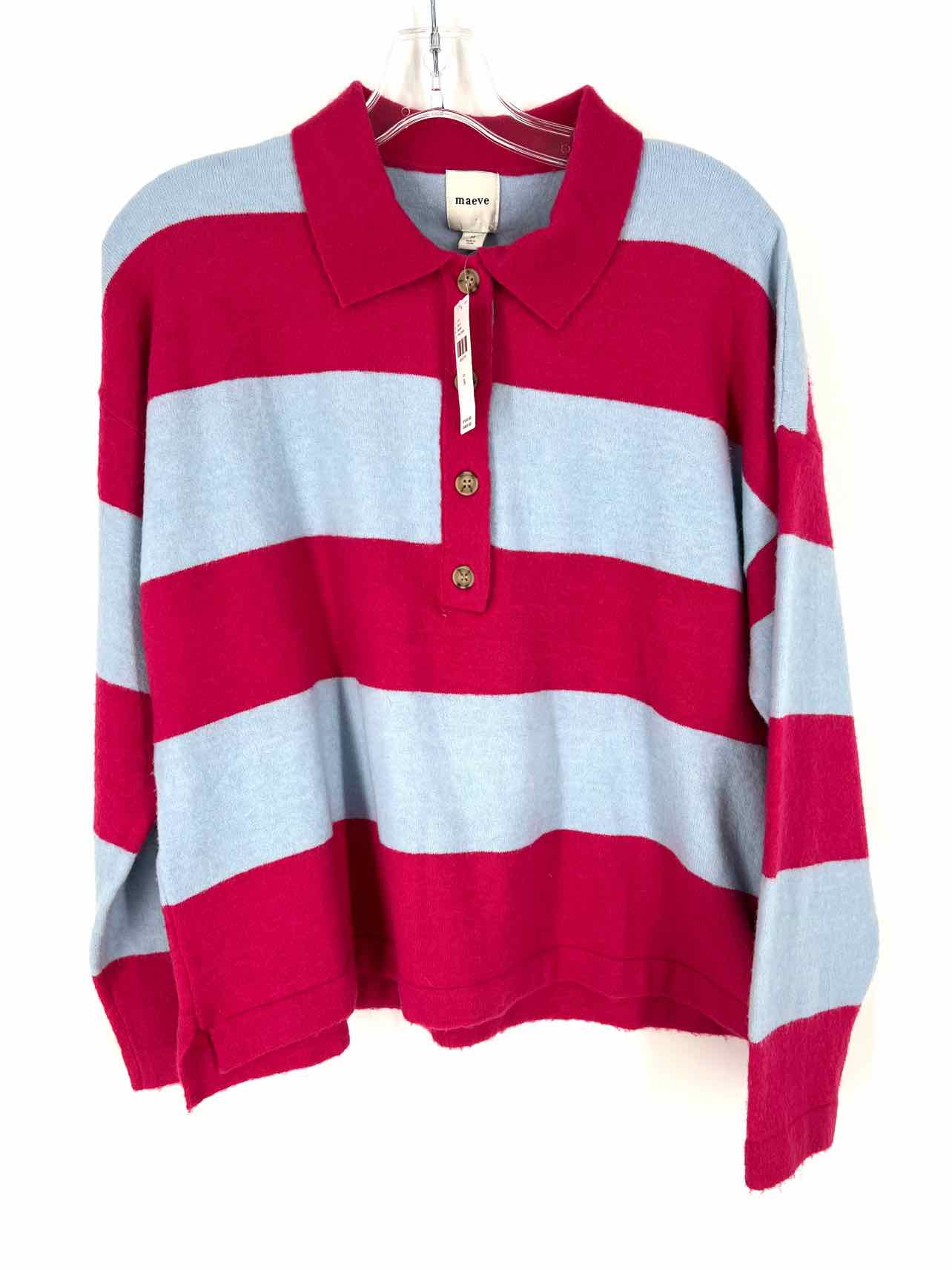 Maeve Size M Fuchsia/Lt Blue Collared Stripe NEW Sweaters Sweater