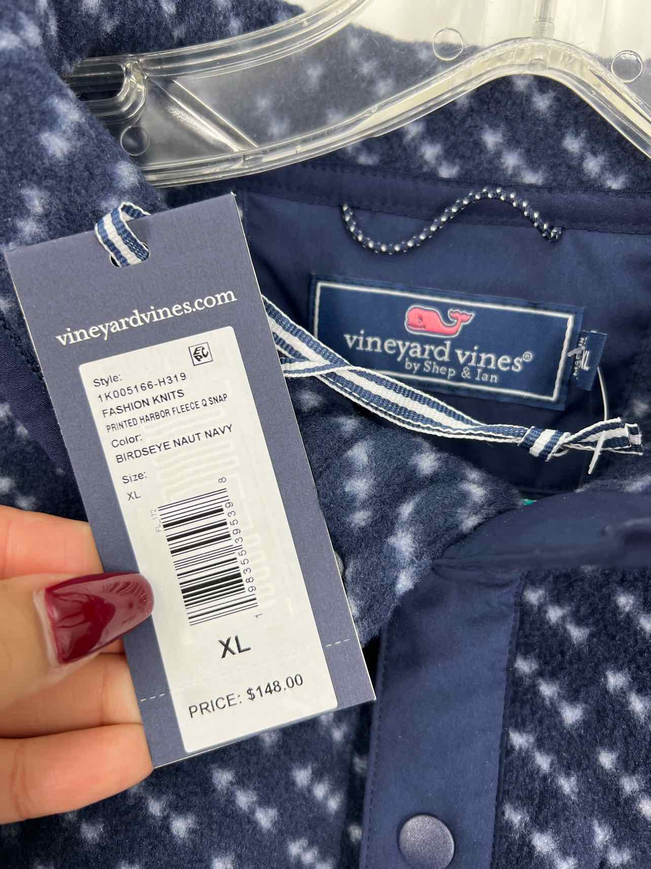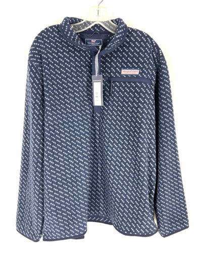 Vineyard Vines Size XL Navy/Lt Blue Print Fleece NEW Jackets Pullover