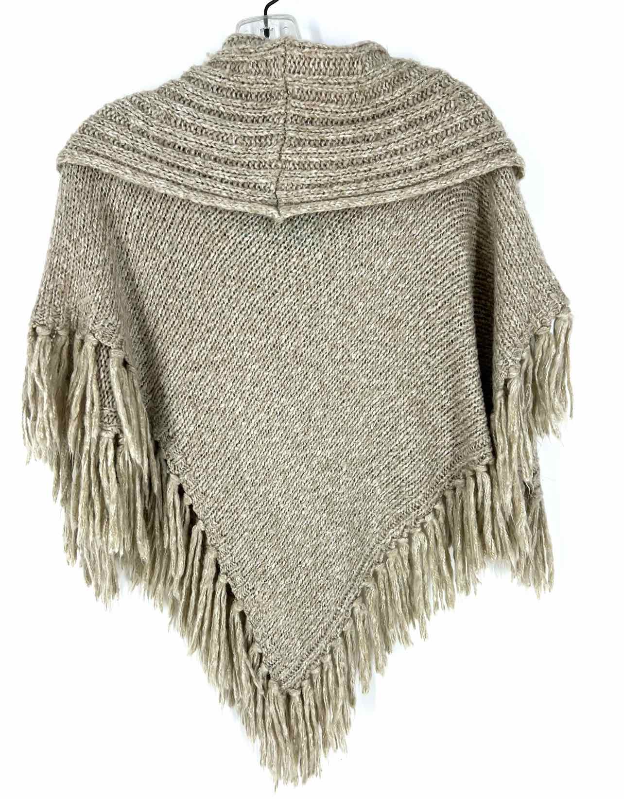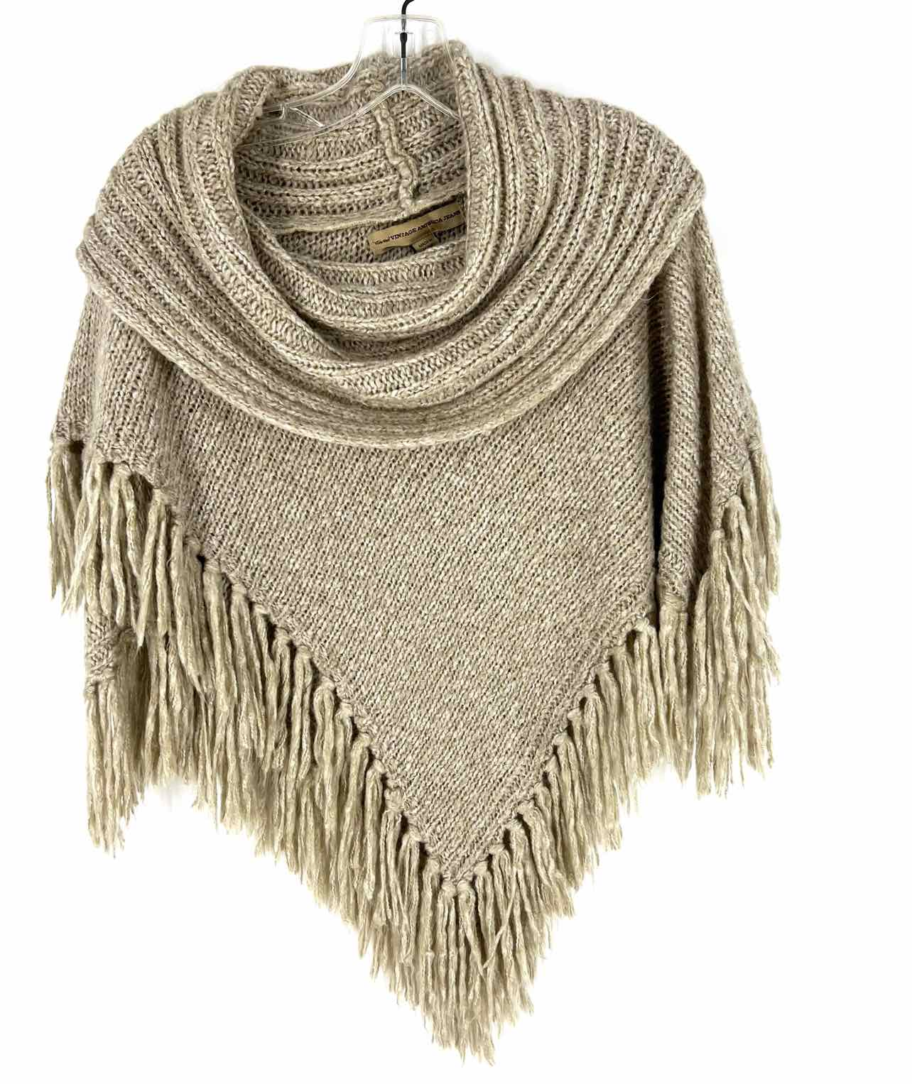 Vintage America Size XS Beige Cowlneck Fringe Sweaters Poncho
