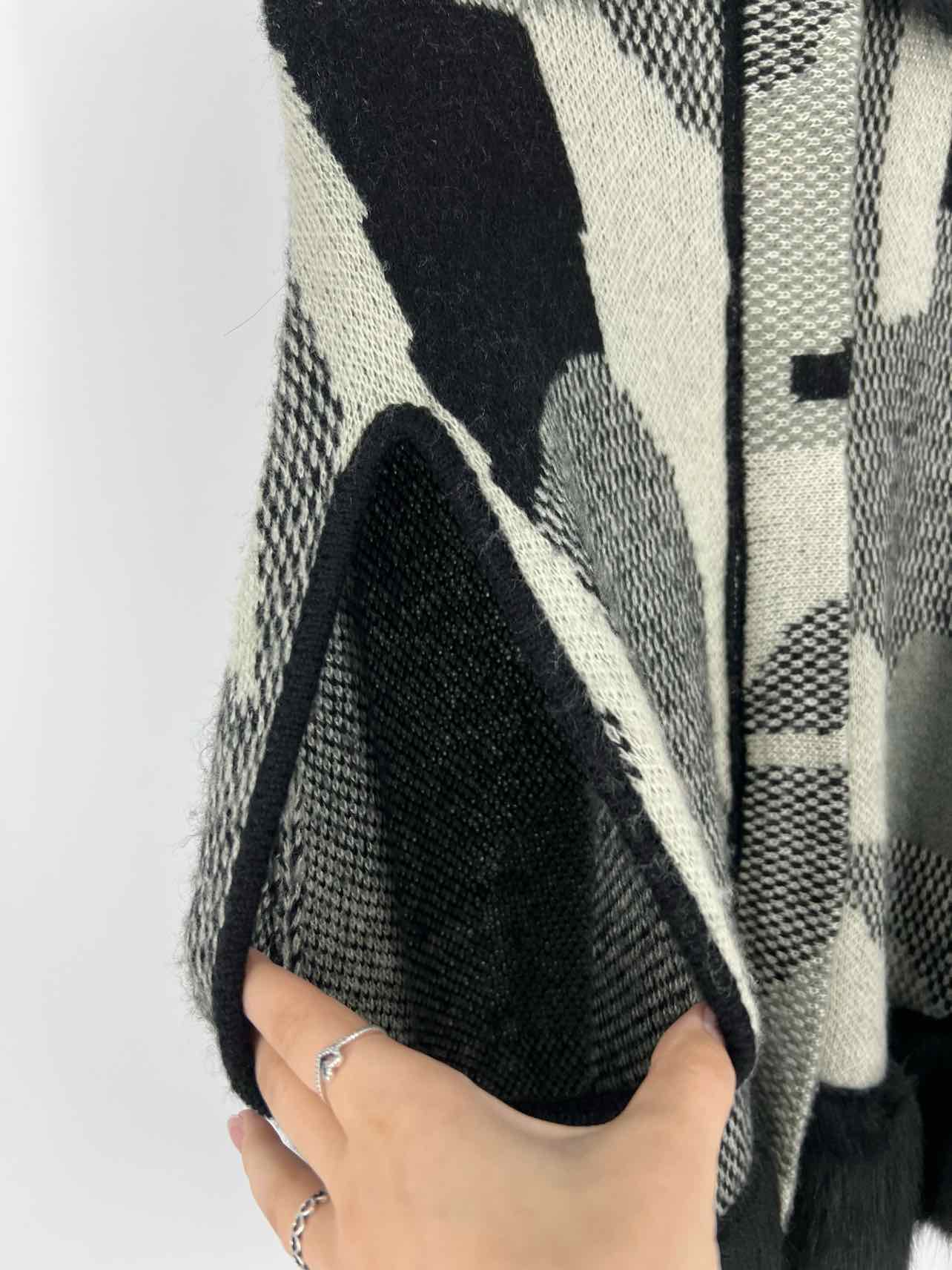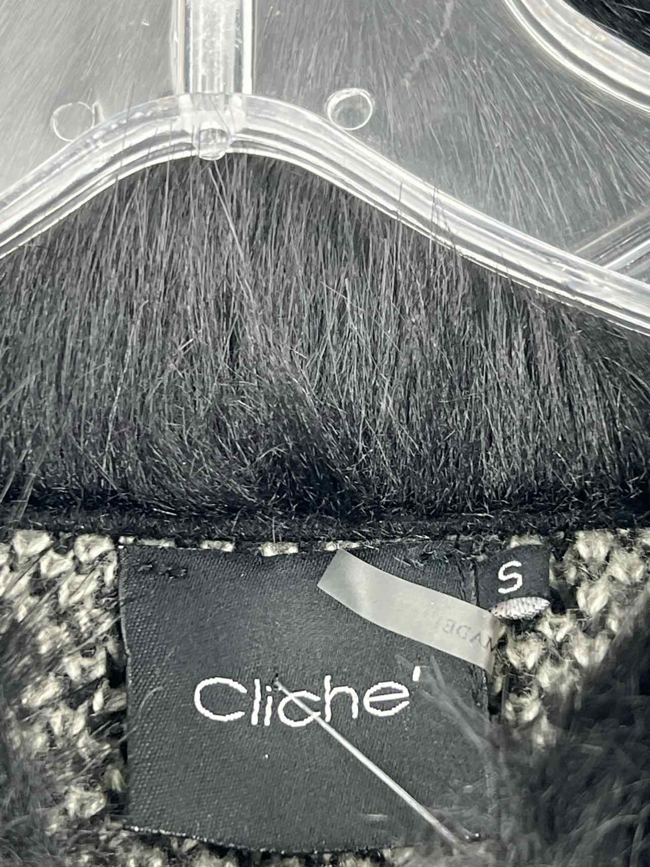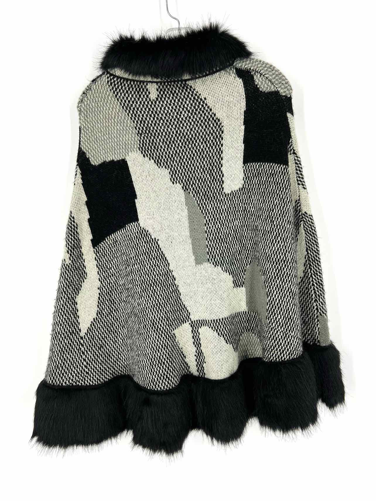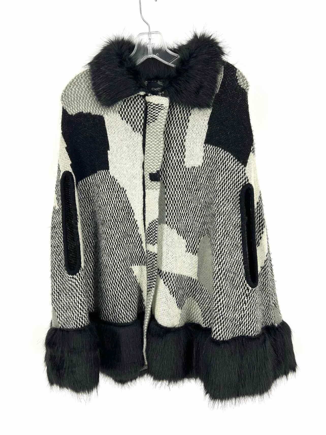 Cliche Size S Black/White Print Faux Fur Trim Cardigans Cardigan