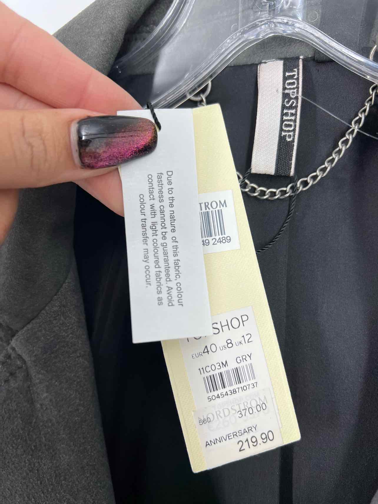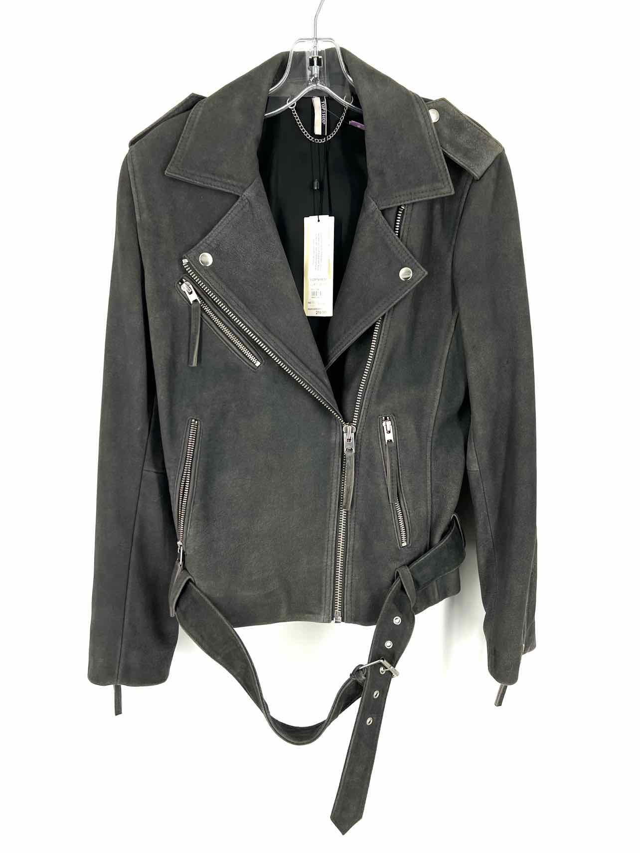 Topshop Size 8 Gray Moto Suede NEW Jackets Jacket