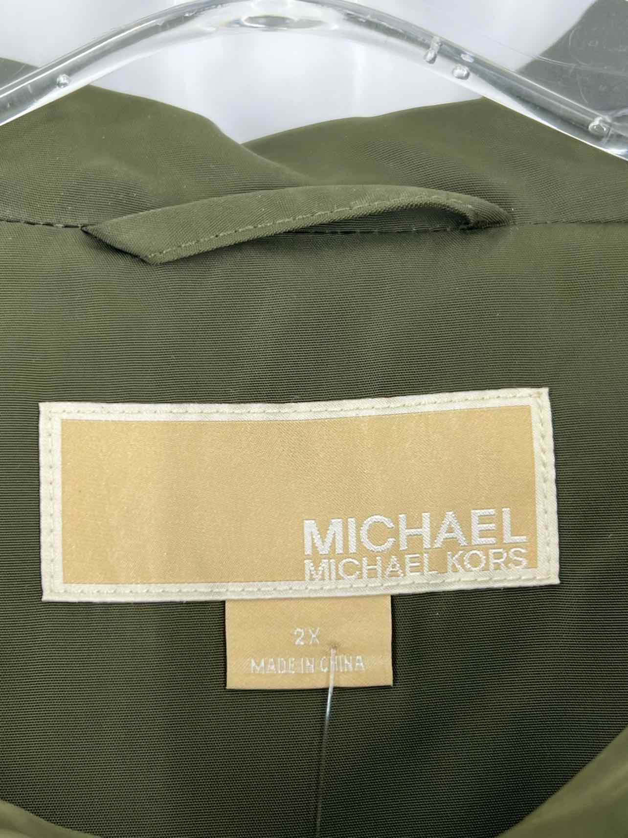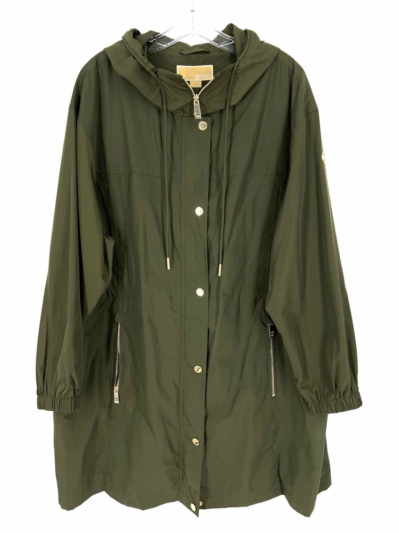 Michael Kors Size 2X Olive/Gold Hooded Cinched PLUS Raincoat