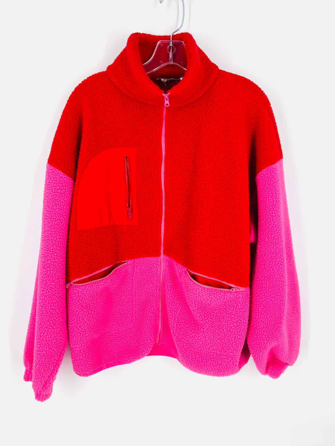 Jodifl Size L Red/Pink Color Block Fleece Jackets Jacket