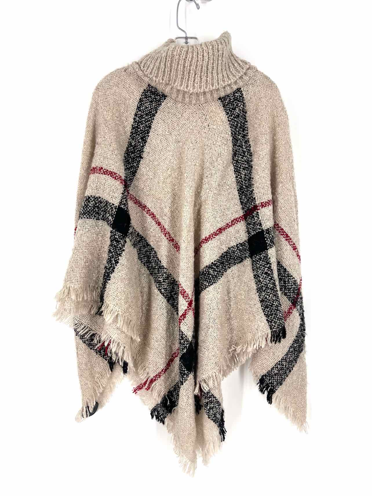 Size L/XL ? Beige/Black Plaid Turtleneck Sweaters Poncho