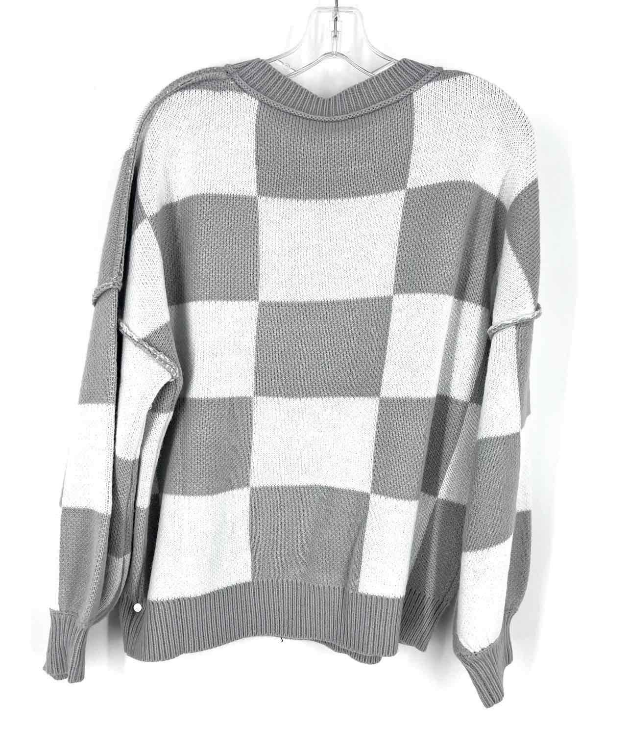 Size M Gray/White Checkered Knit Sweaters Sweater