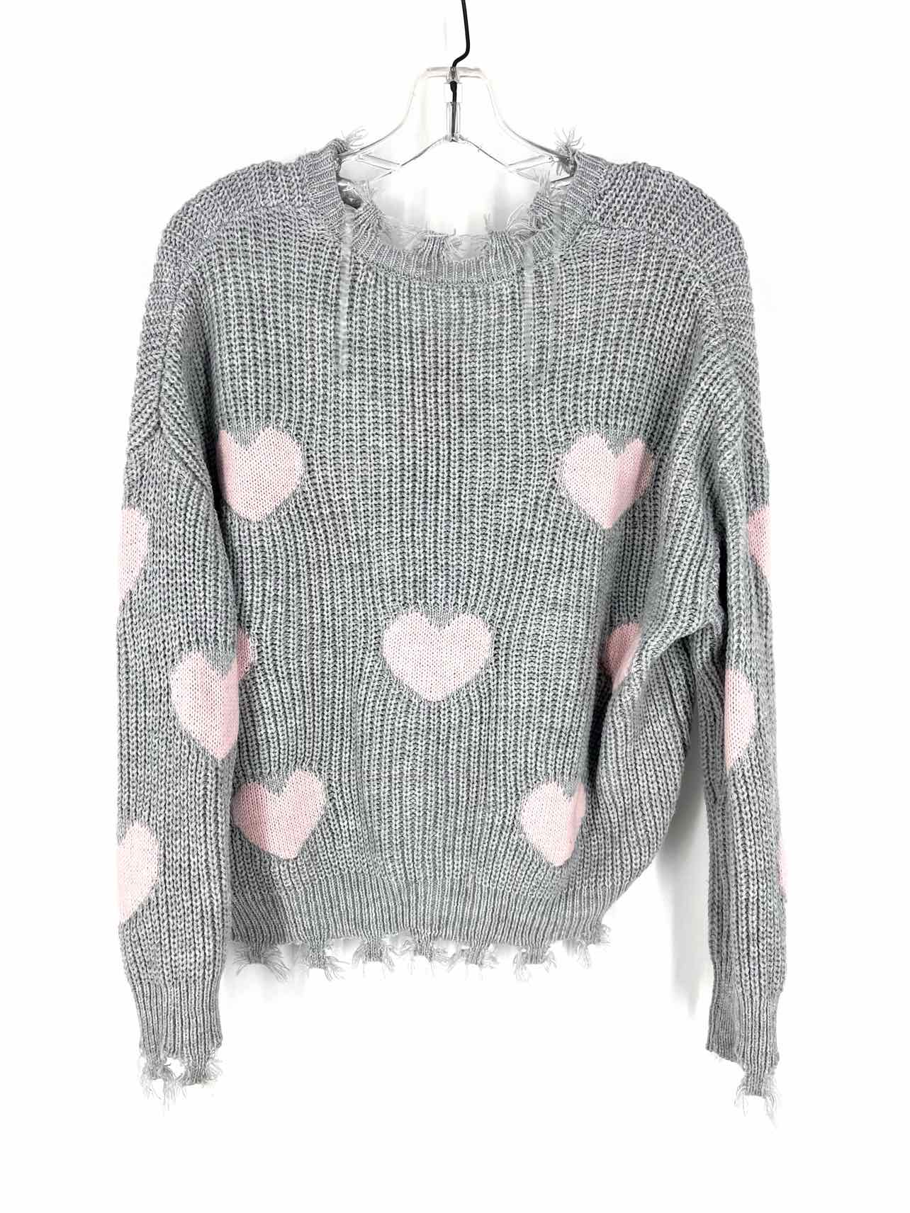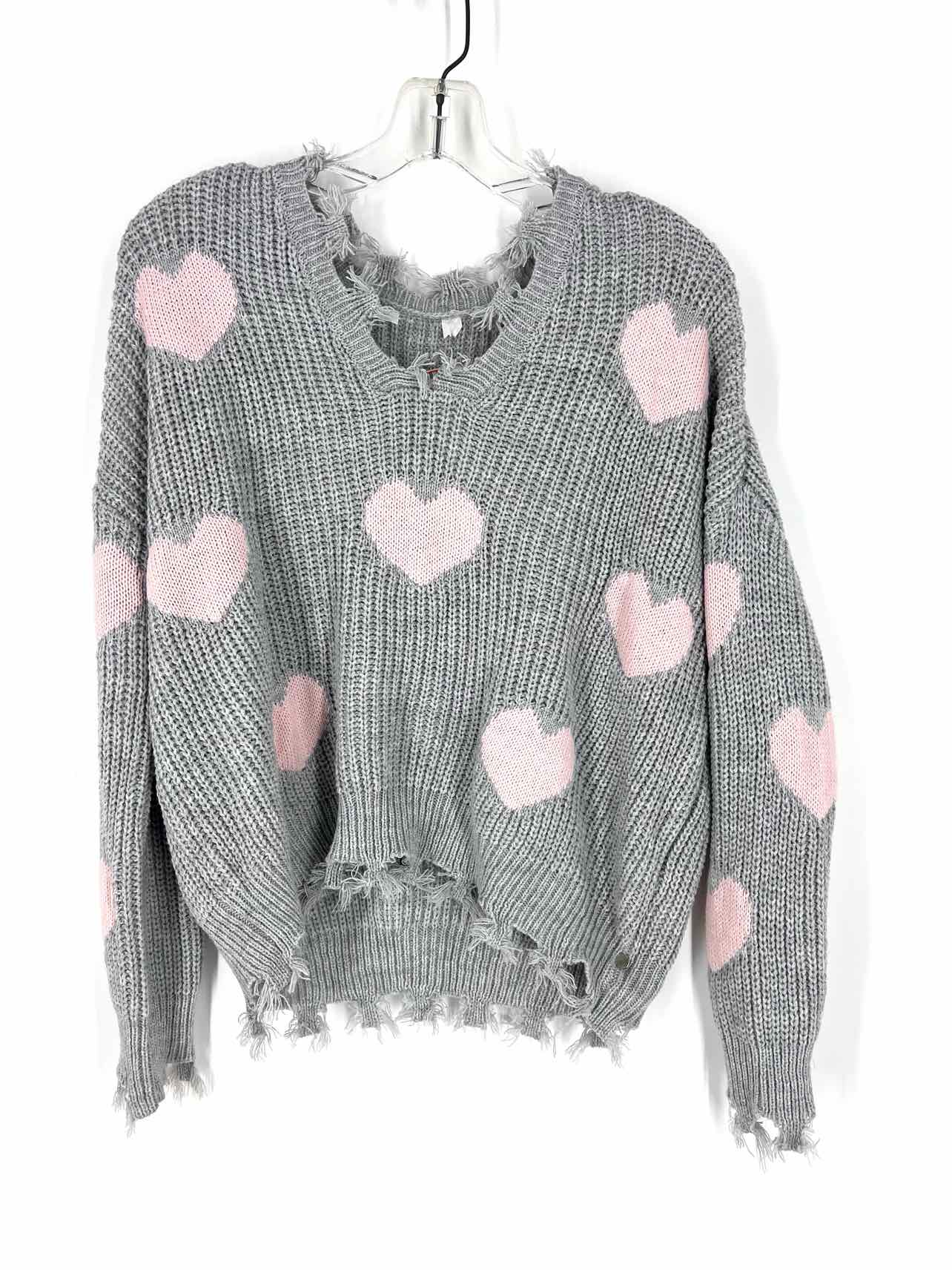 Size S ? Gray/Pink Hearts Knit Sweaters Sweater