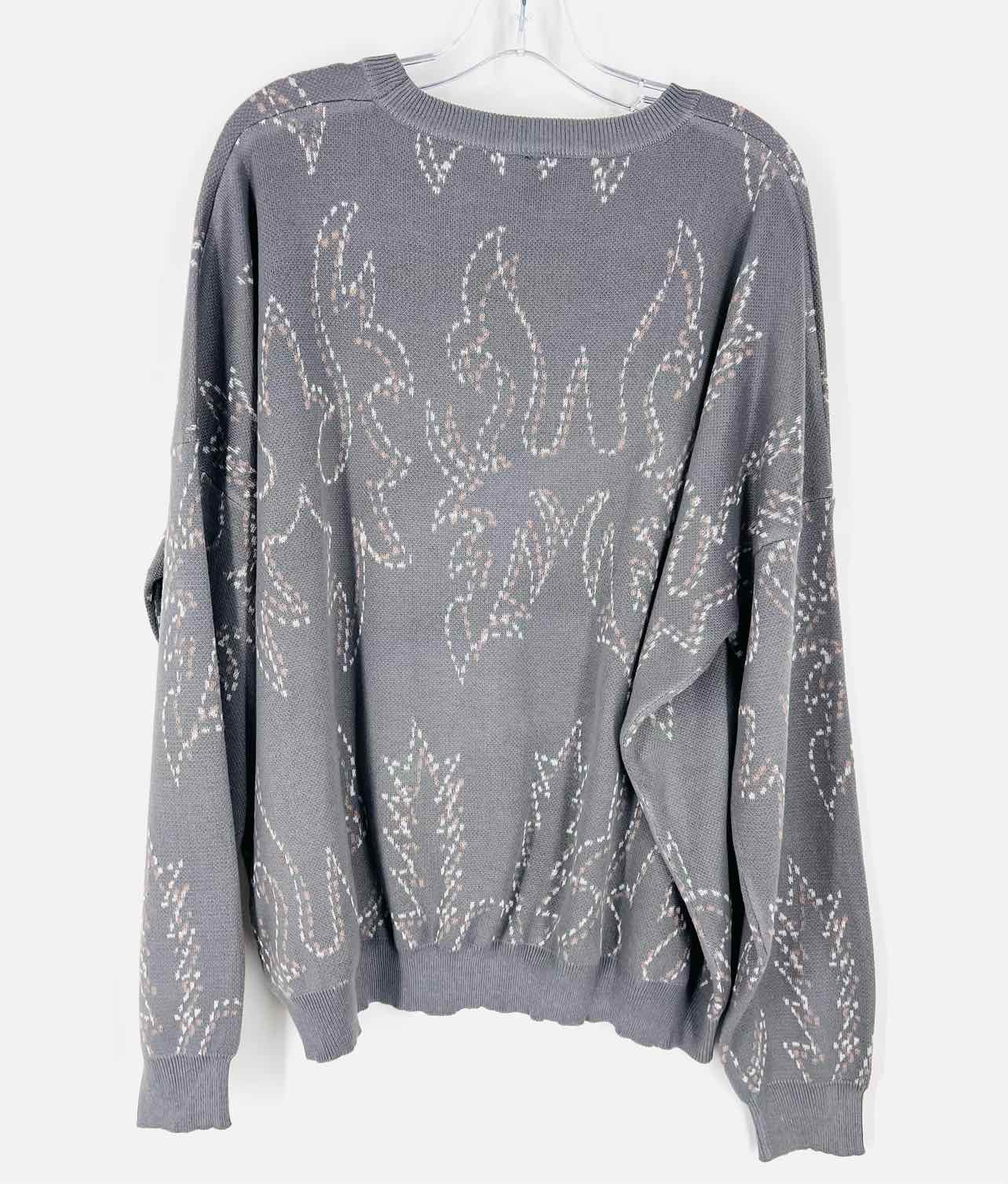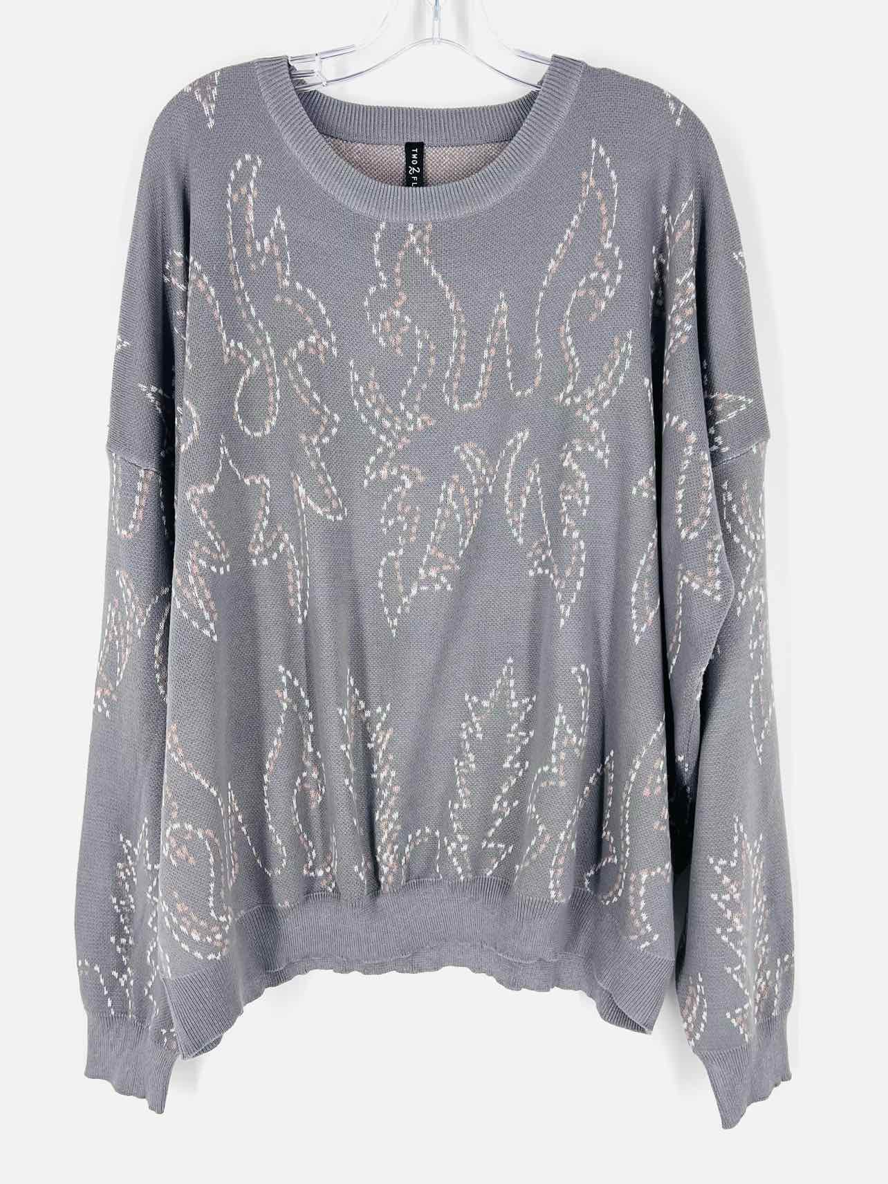Two Fly Size L/XL Gray/White Print Knit Sweaters Sweater