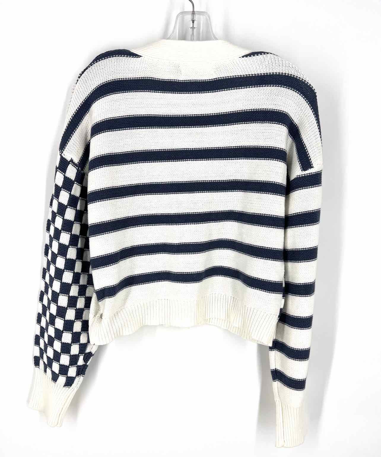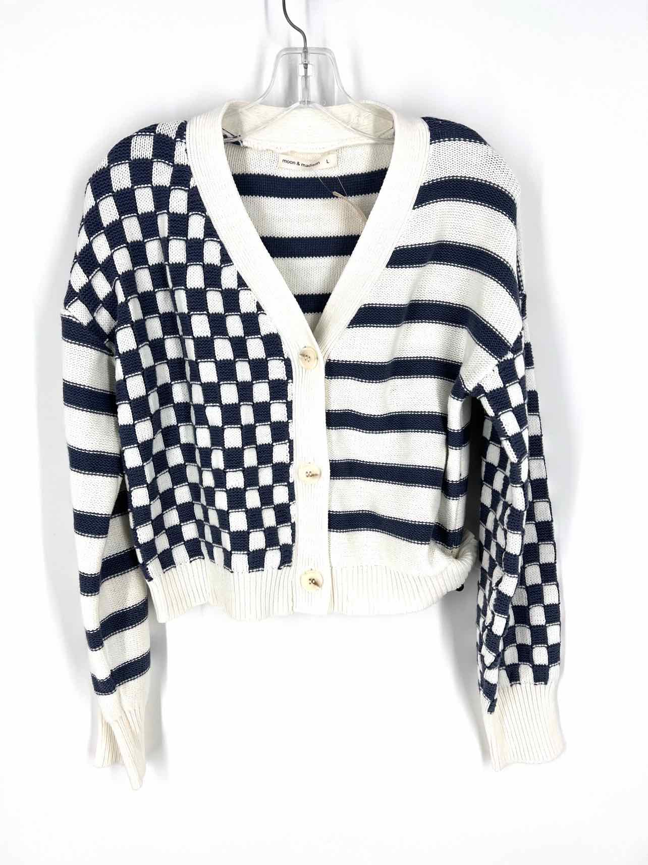 Moon & Madison Size L White/Blue Checkered Stripe Cardigans Cardigan