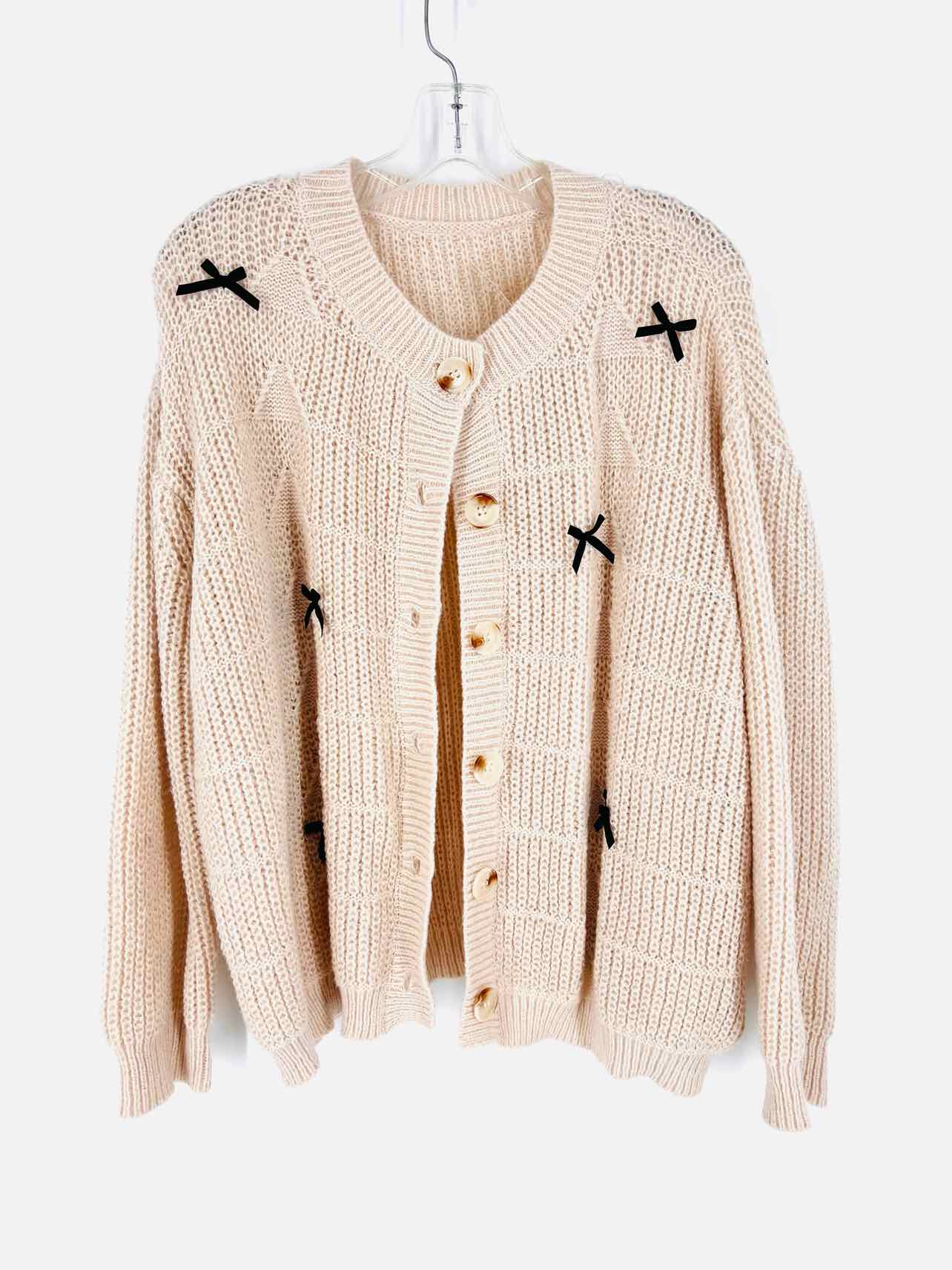 Size L? Beige/Black Bow(s) Knit Cardigans Cardigan