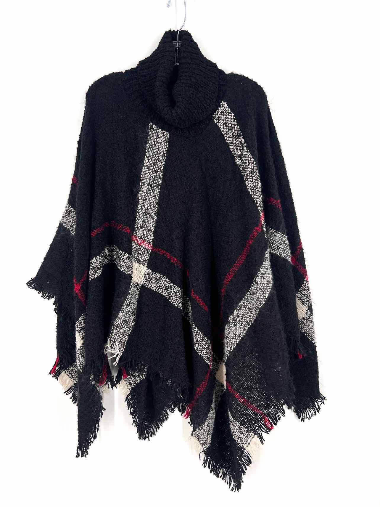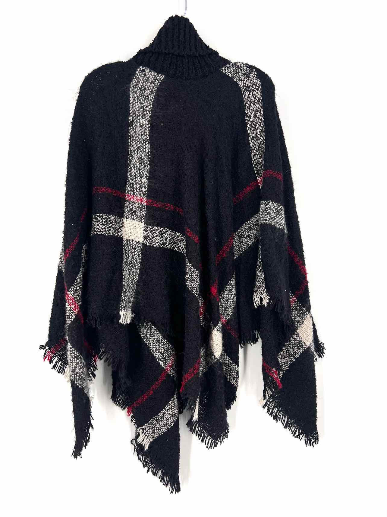 Size XL ? Bk/Wh/Rd Plaid Frayed Sweaters Poncho