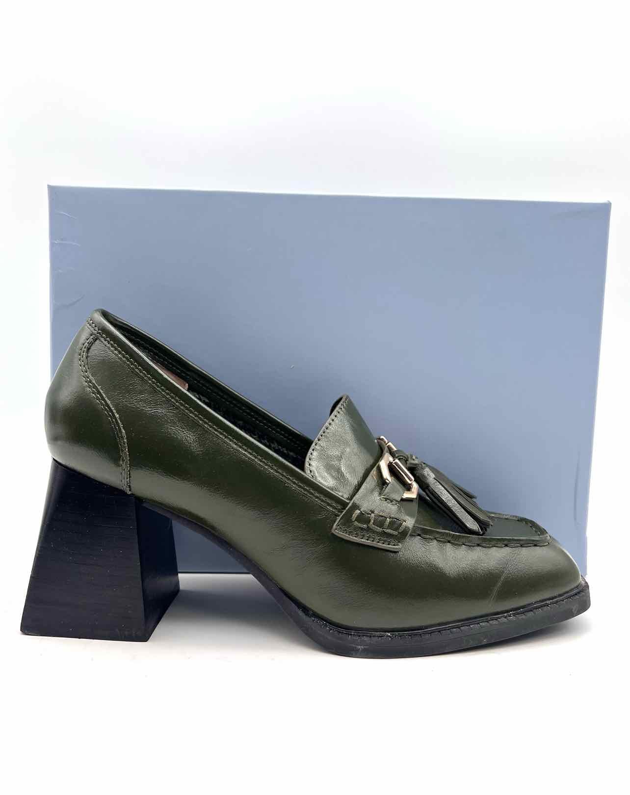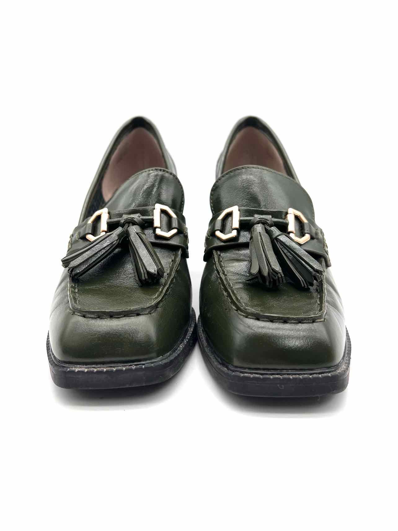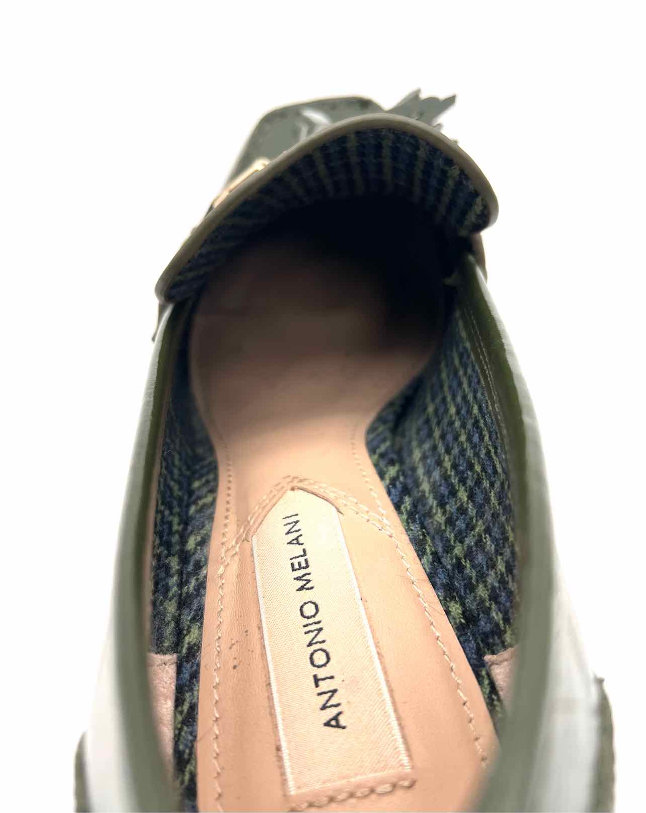 Antonio Melani Size 10 Army Green Tassels Leather Shoes Loafer Heels