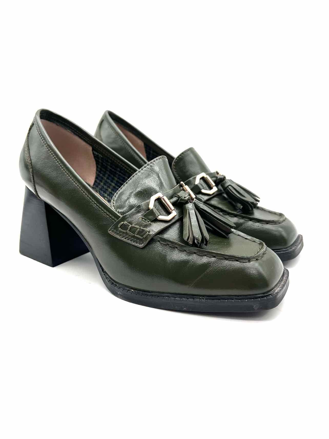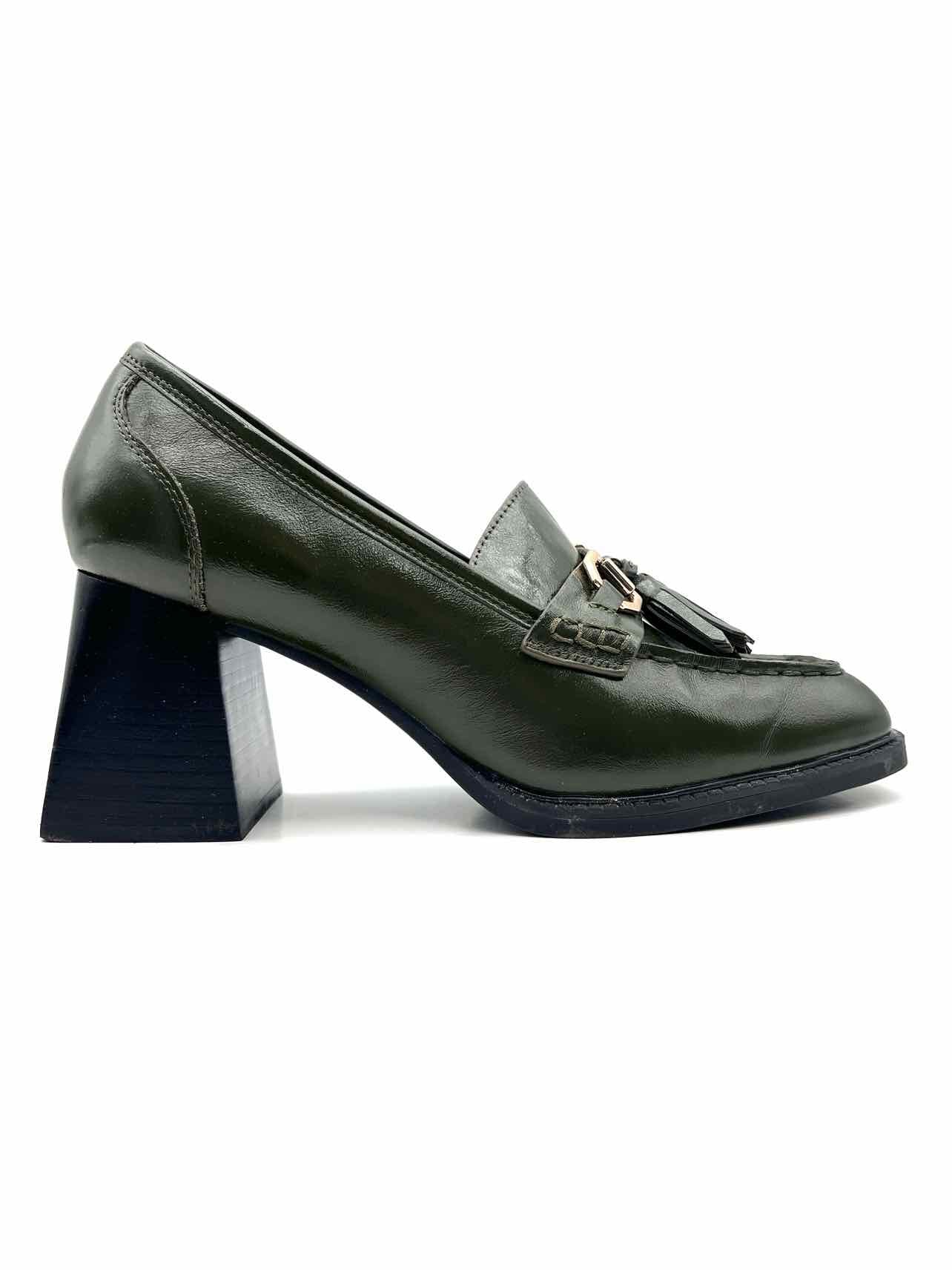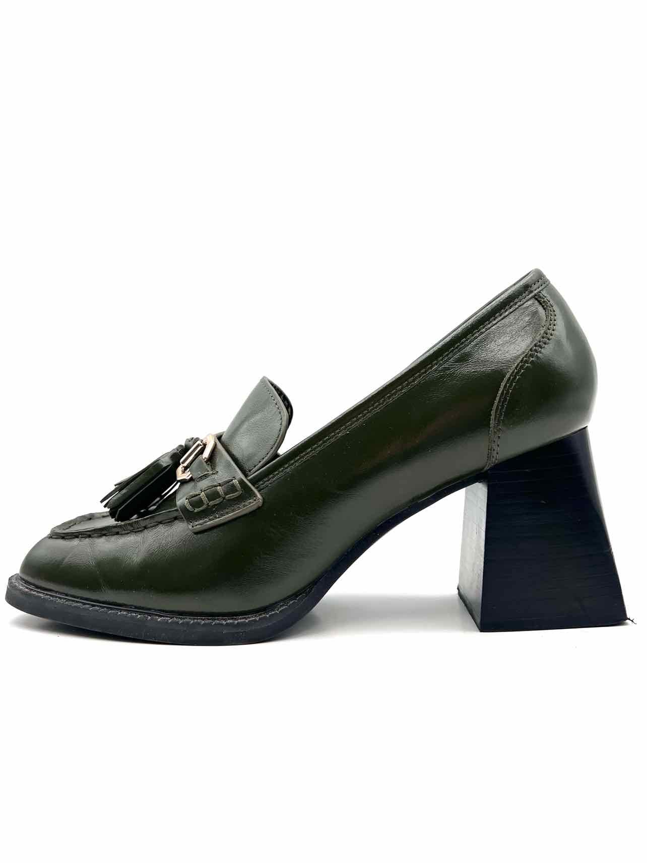 Antonio Melani Size 10 Army Green Tassels Leather Shoes Loafer Heels