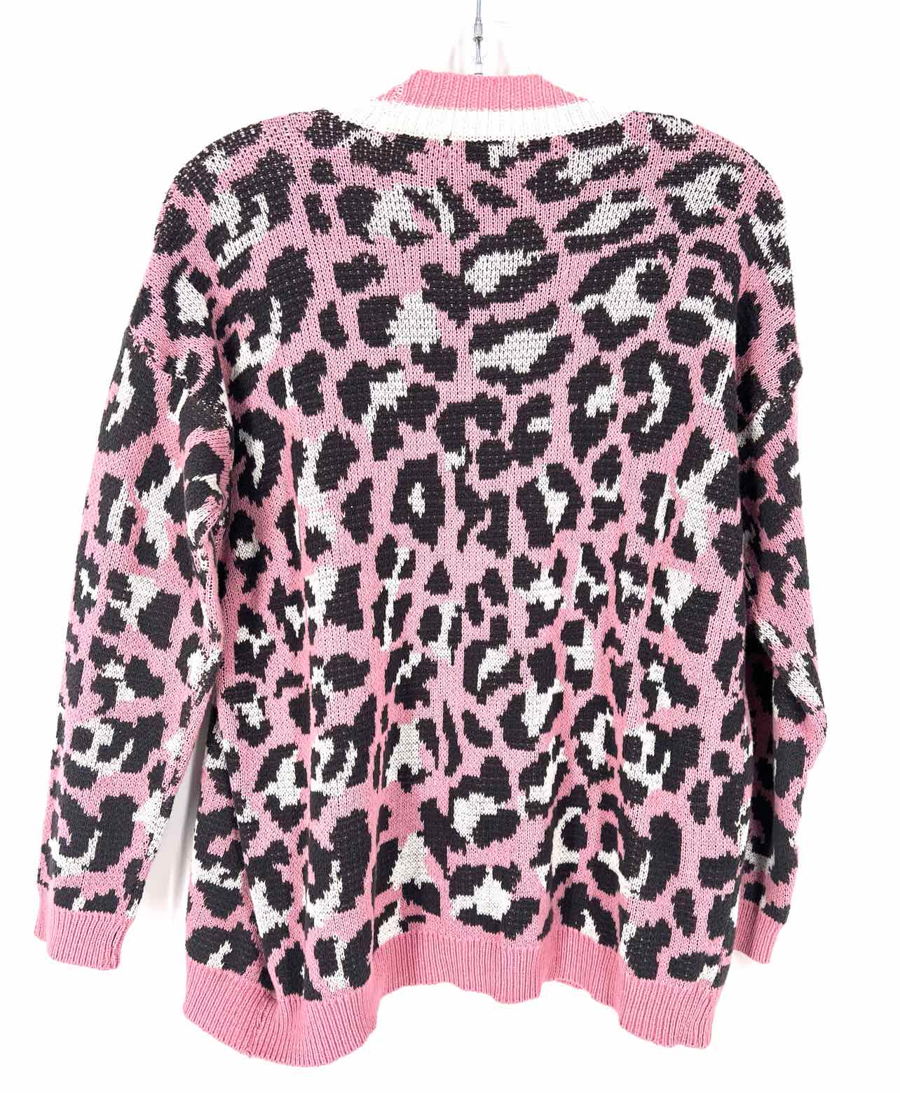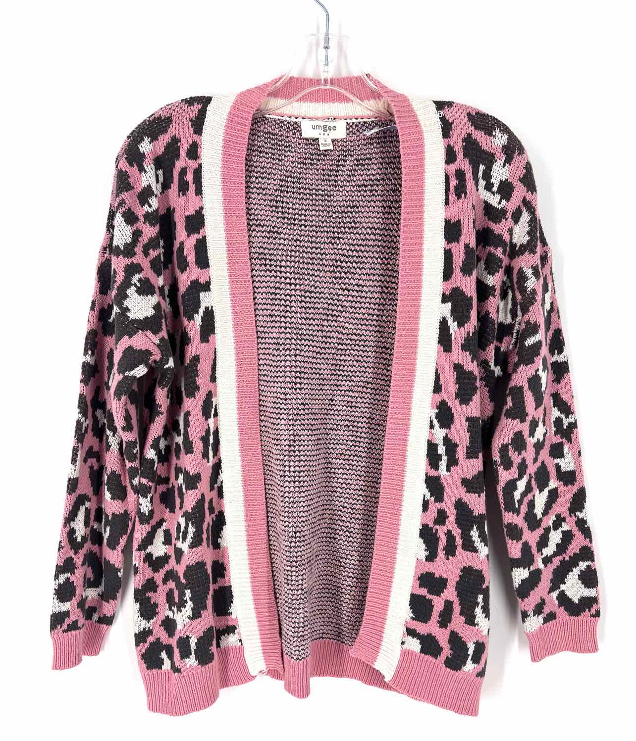 Umgee Size S Pink/Charcoal Animal Print Knit Cardigans Cardigan