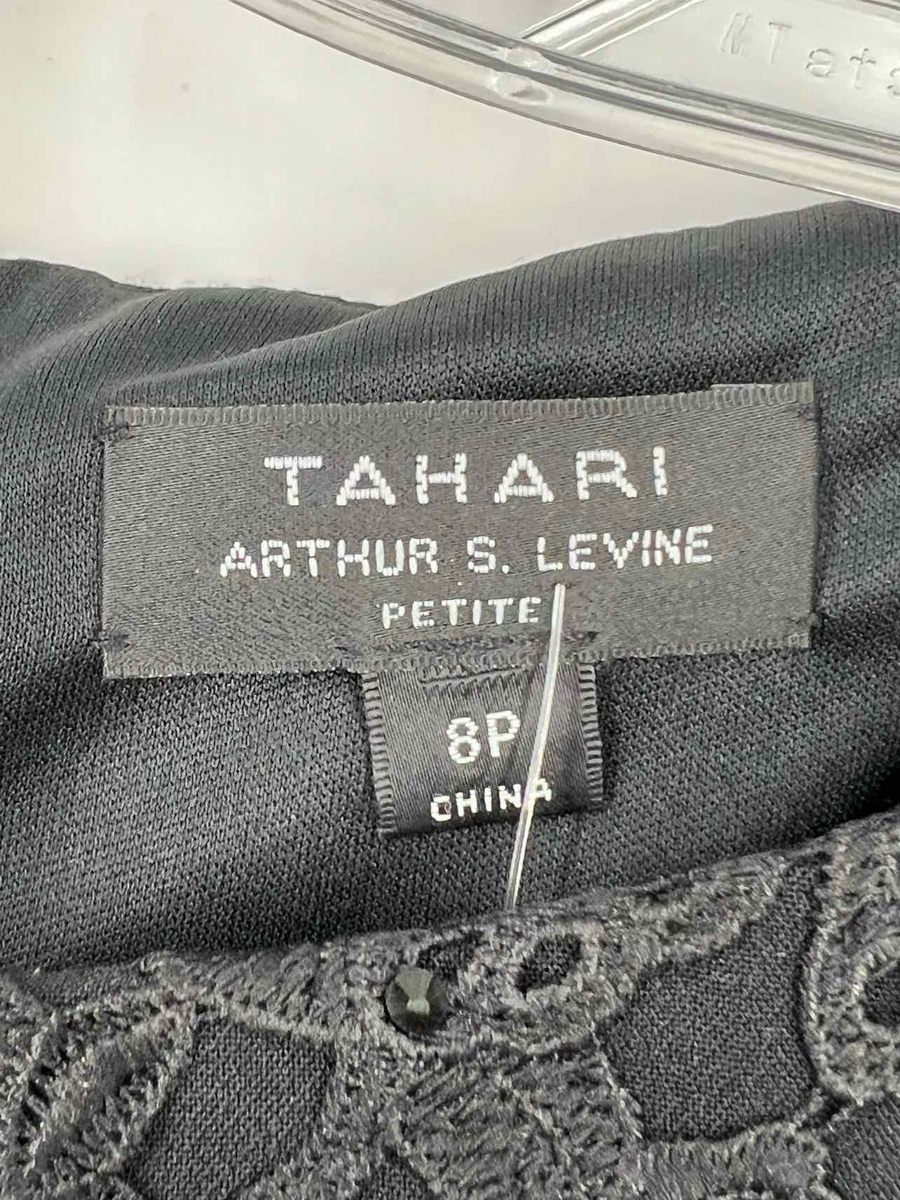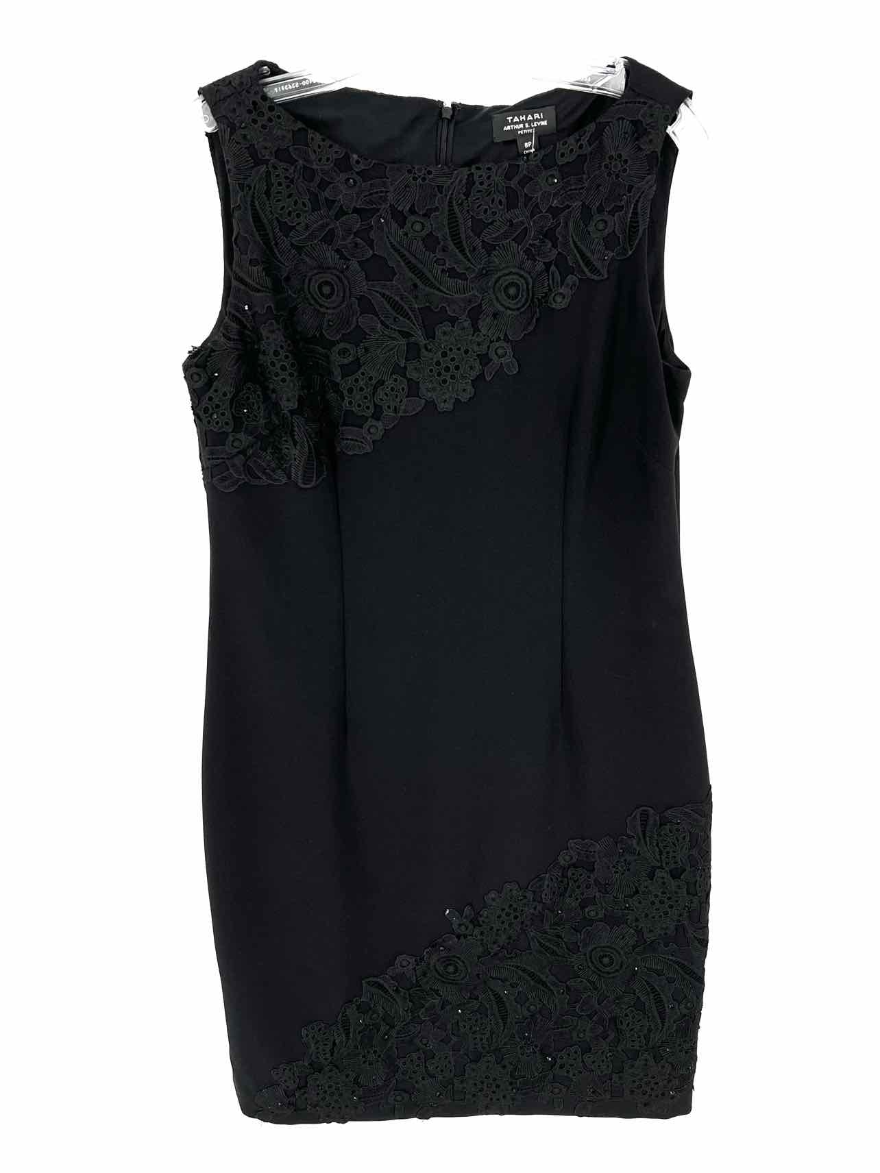Tahari ASL Size 8 Bl/Aq/Wh Floral Applique Rhinestones Designer Dress