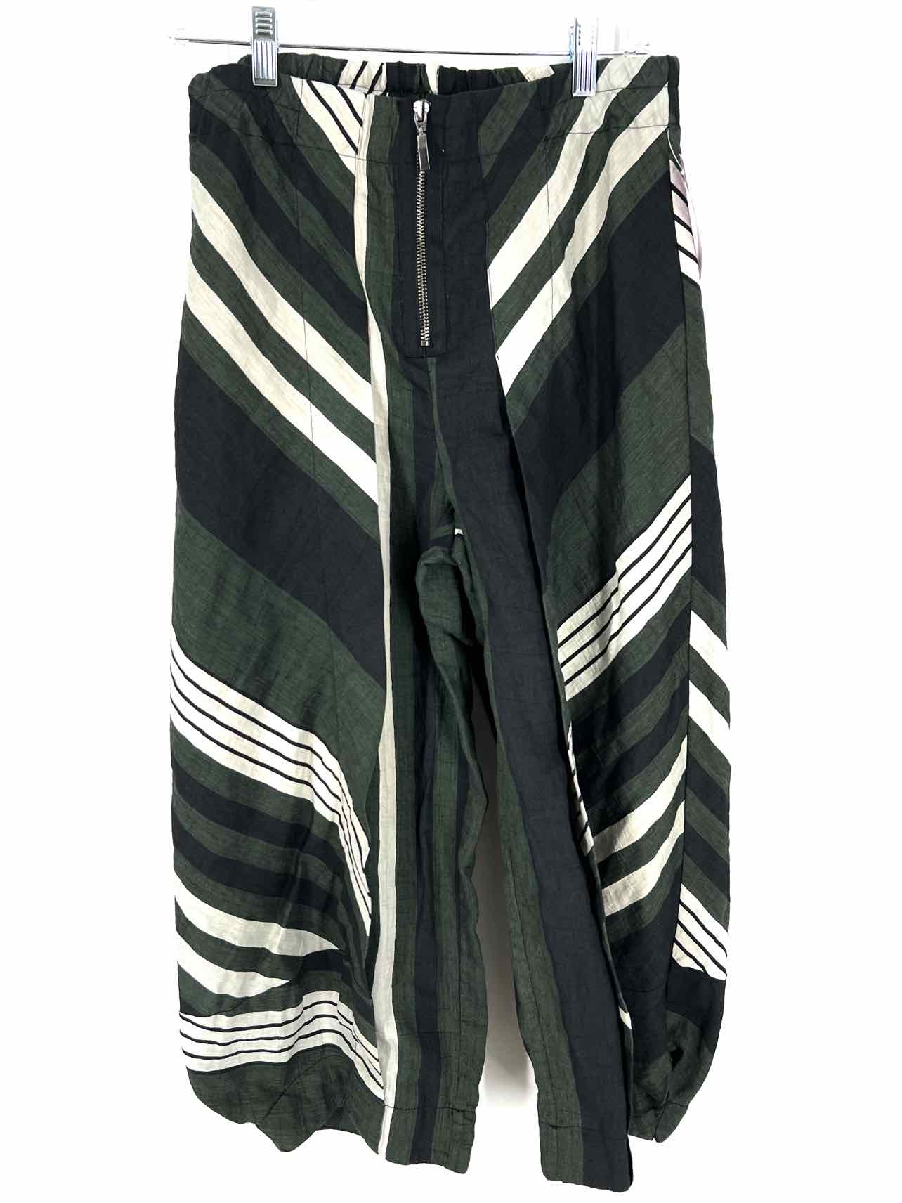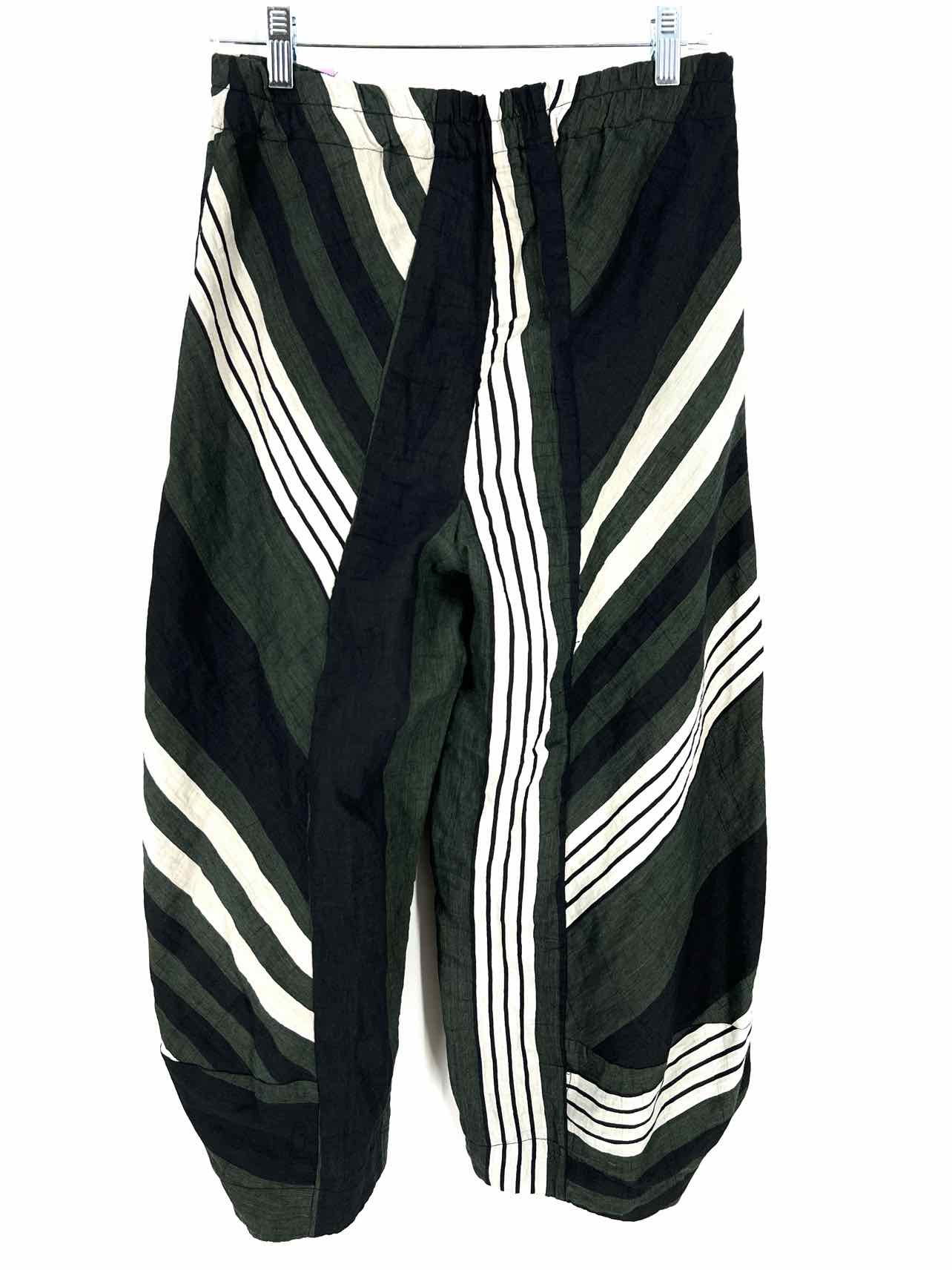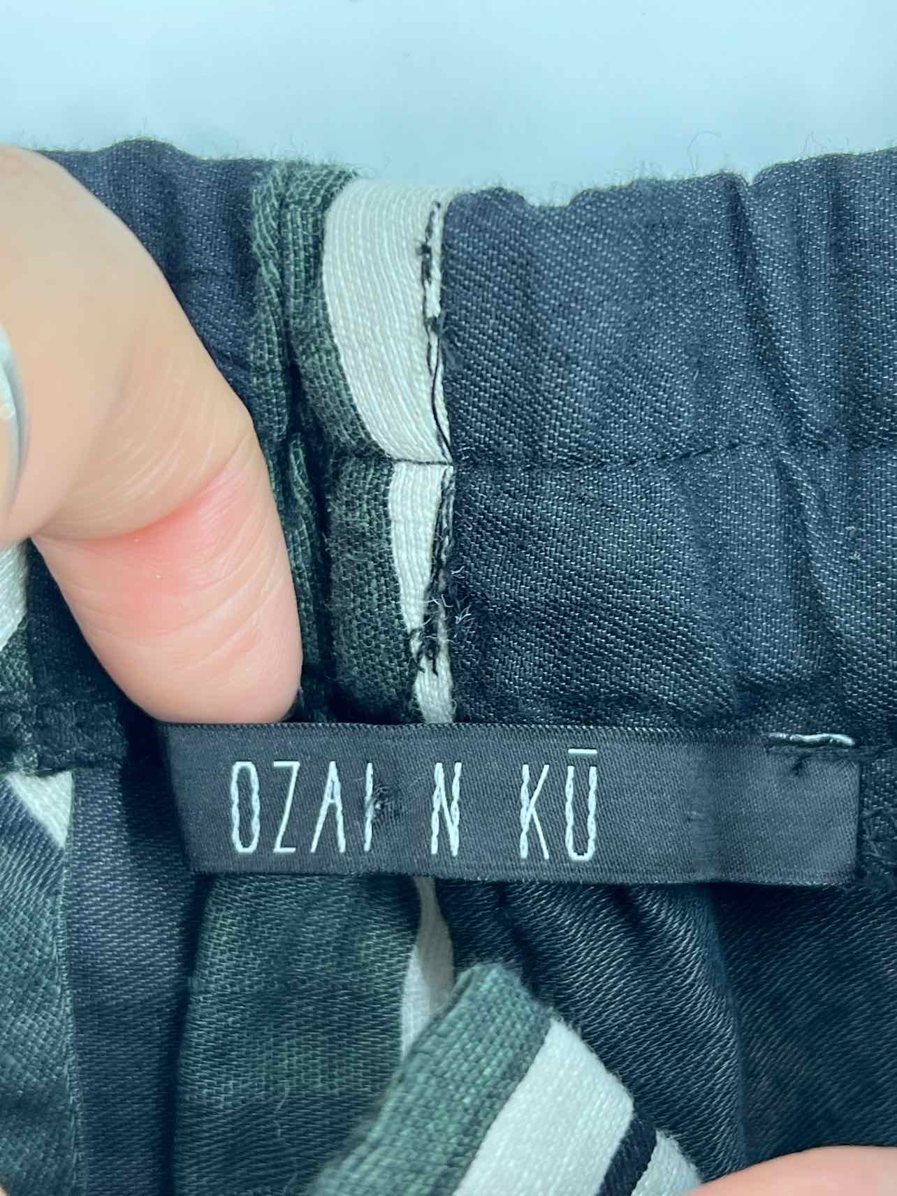 Ozai N Ku Size S Gr/Bk/Wh Stripe Pleat Designer Pants