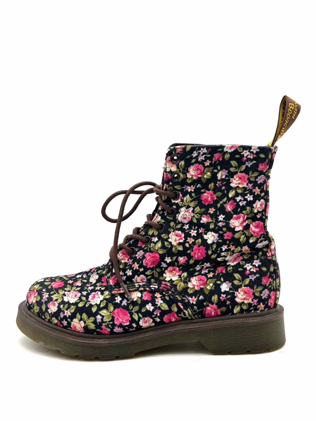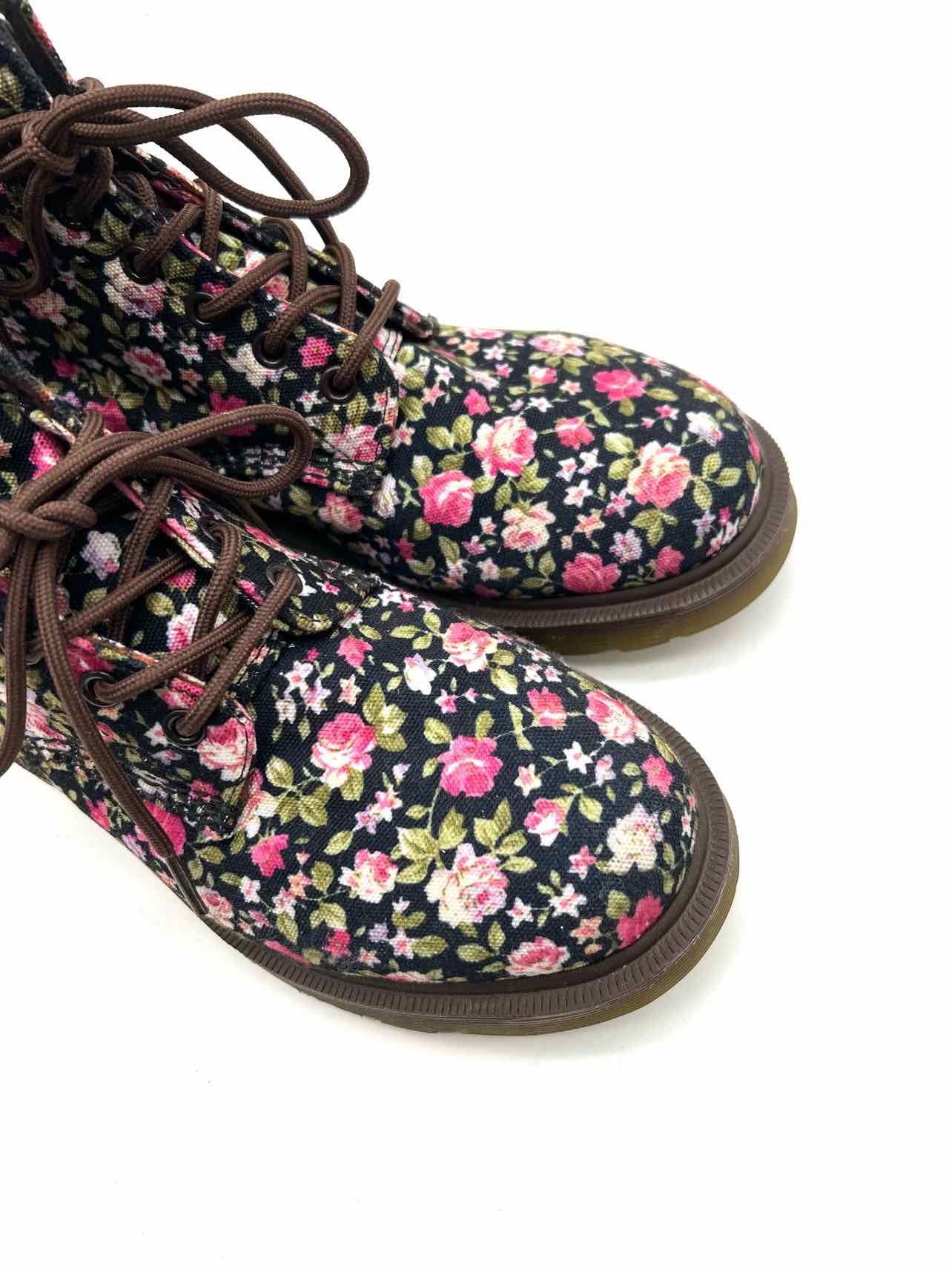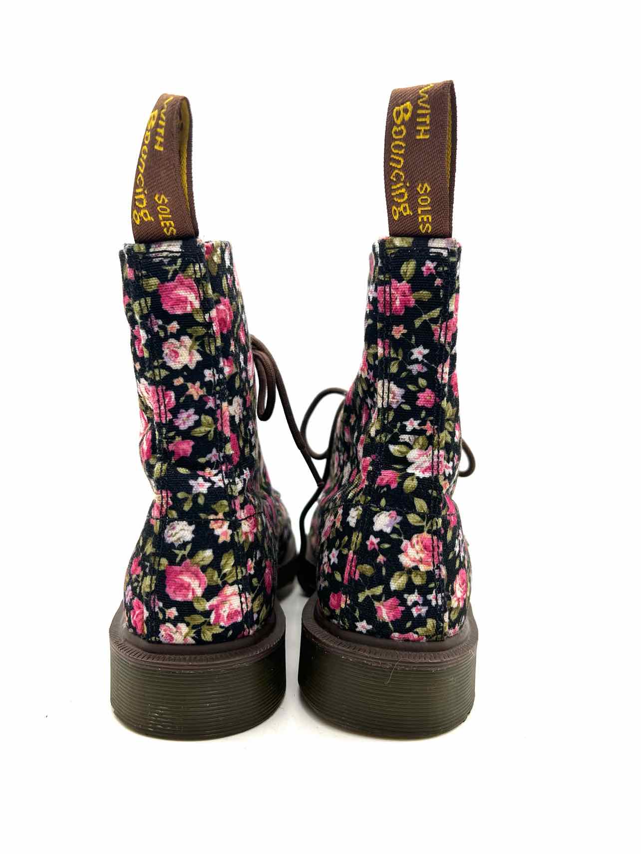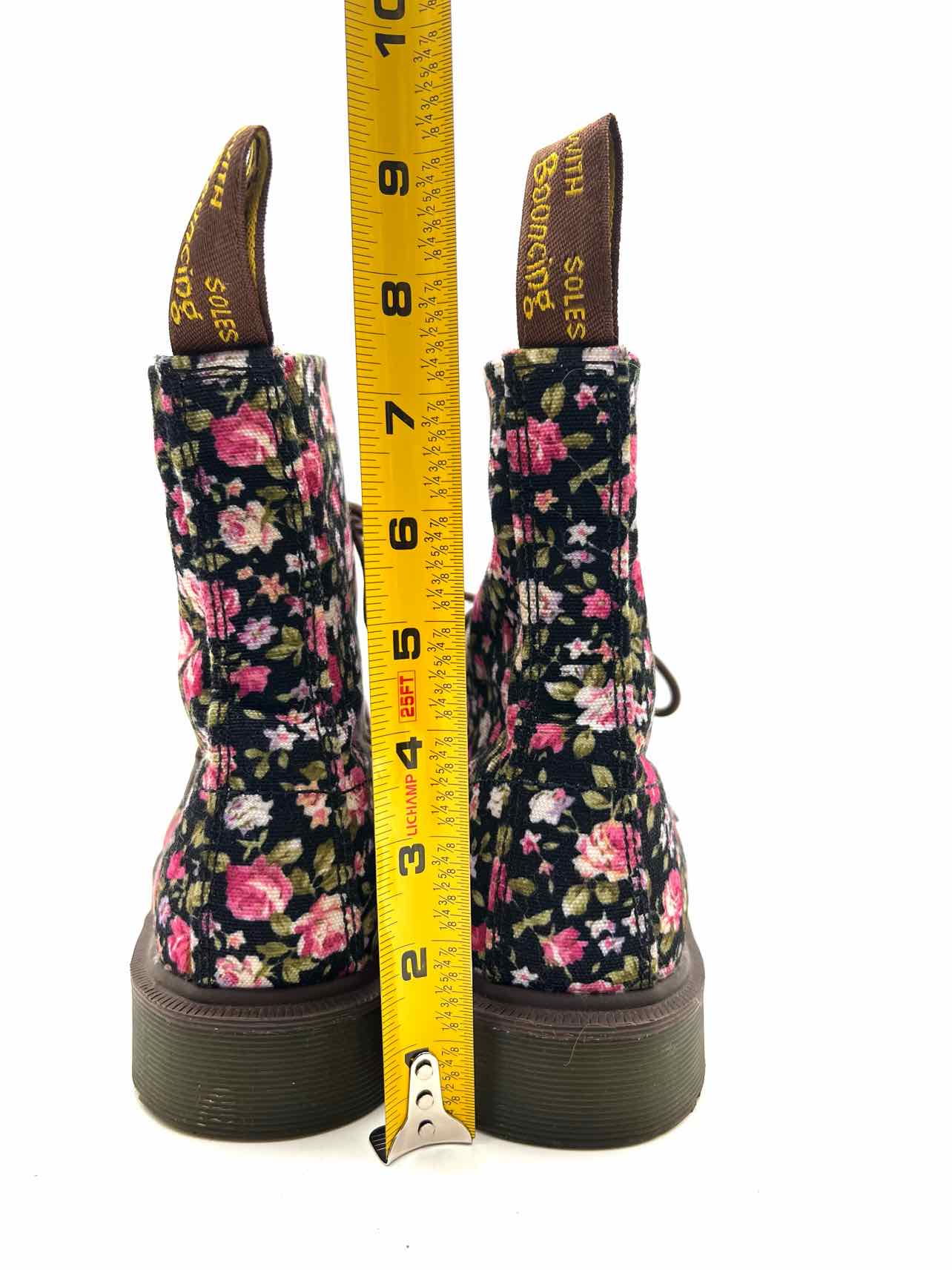 Dr. Martens Size 9 Black/Pink Lace-Up Floral Shoes Short Boots