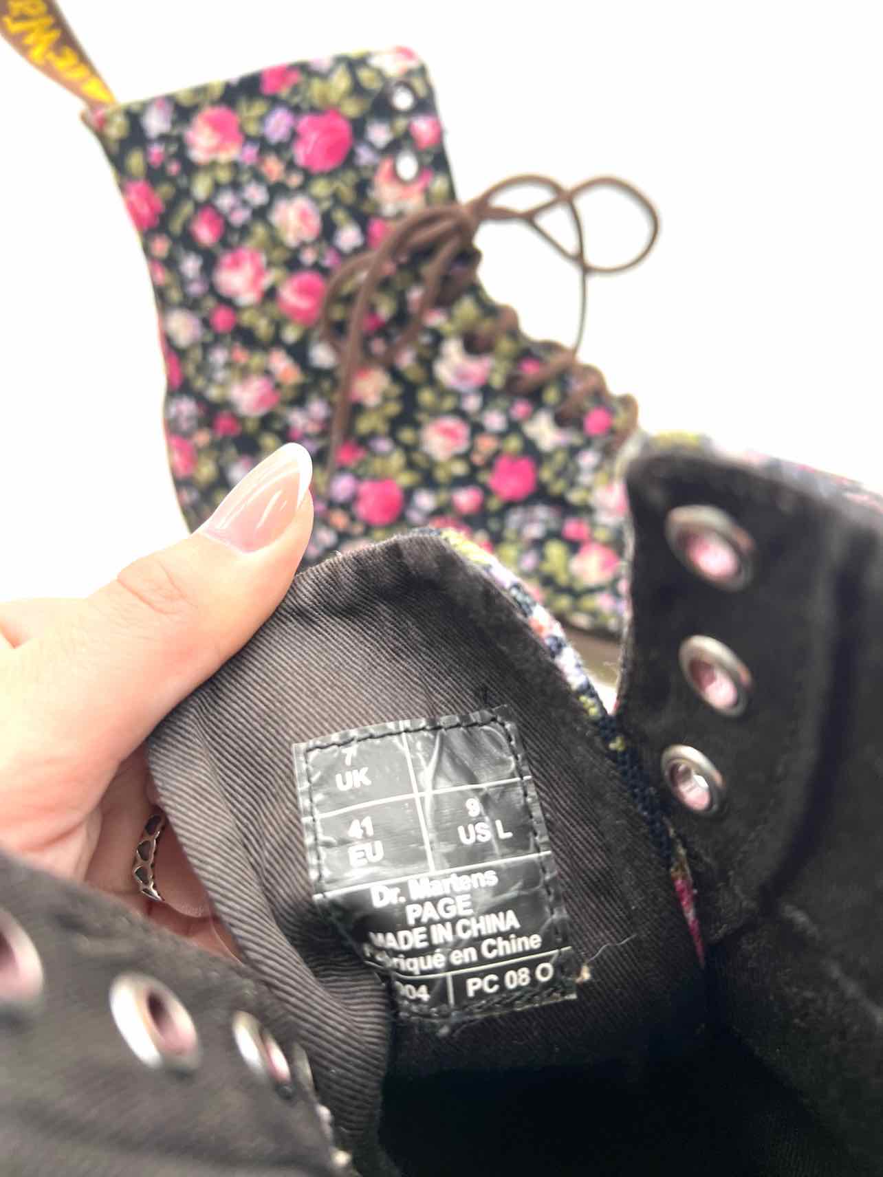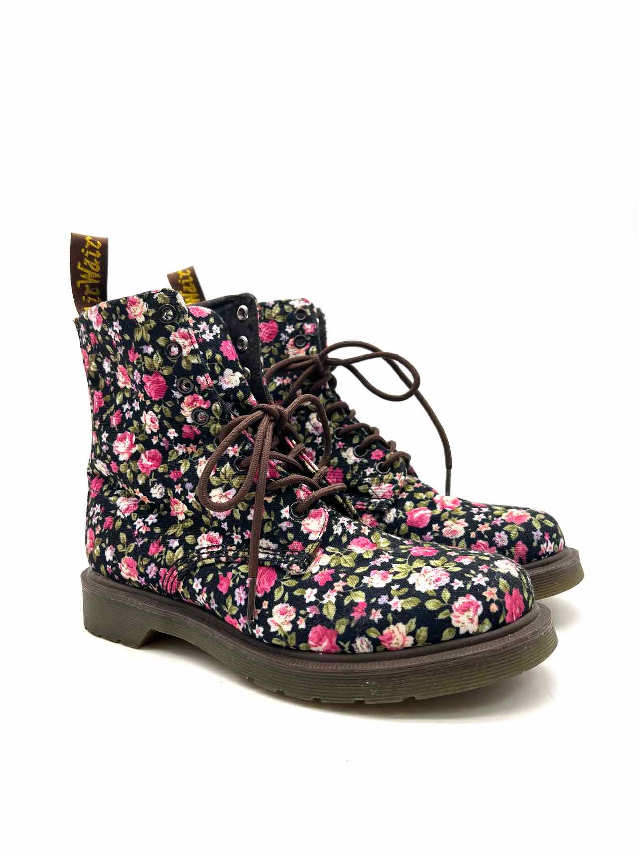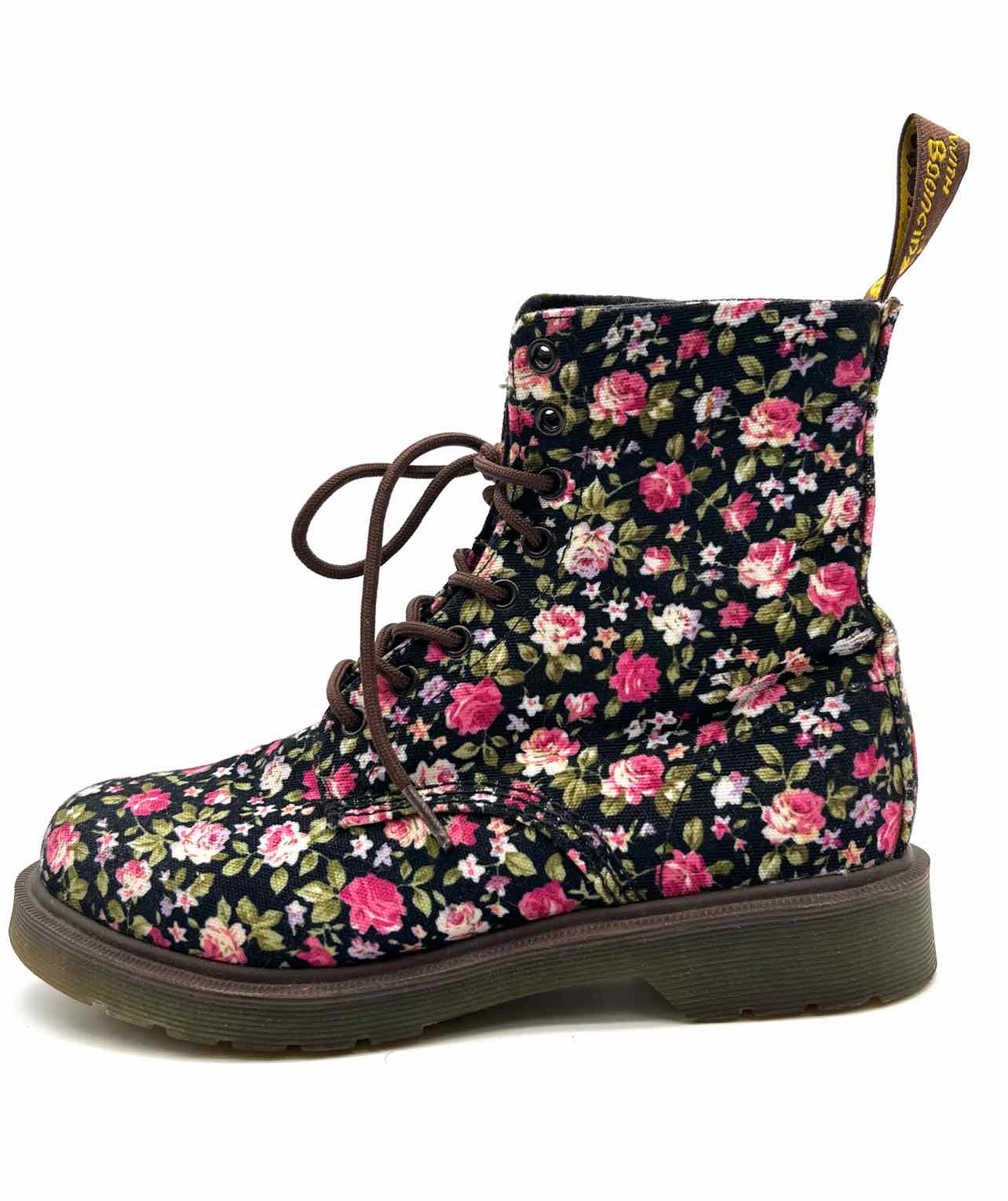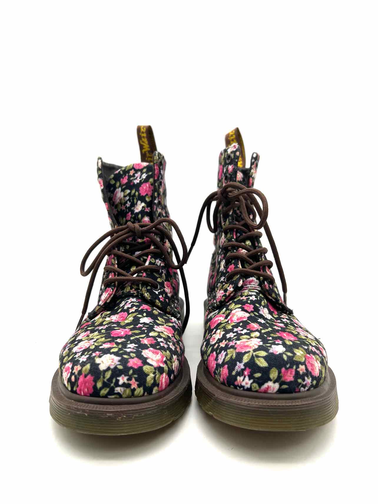 Dr. Martens Size 9 Black/Pink Lace-Up Floral Shoes Short Boots
