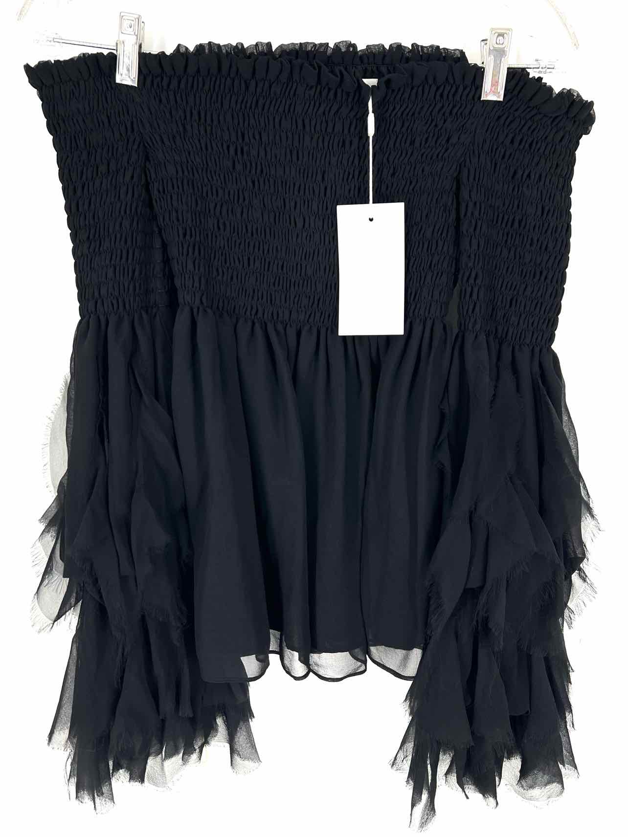 Caroline Constas Size S Black Smocked Off the Shoulder NEW Top-Long Sleeve