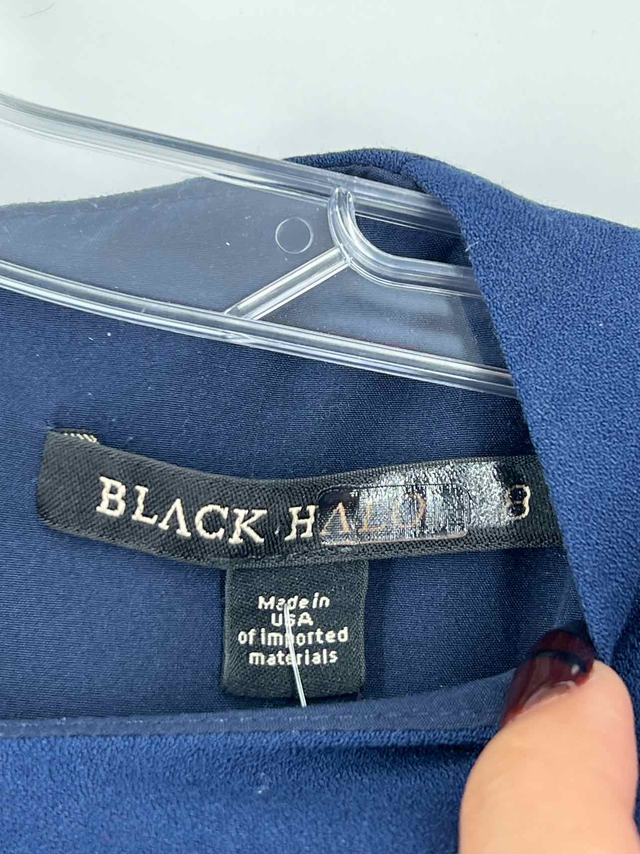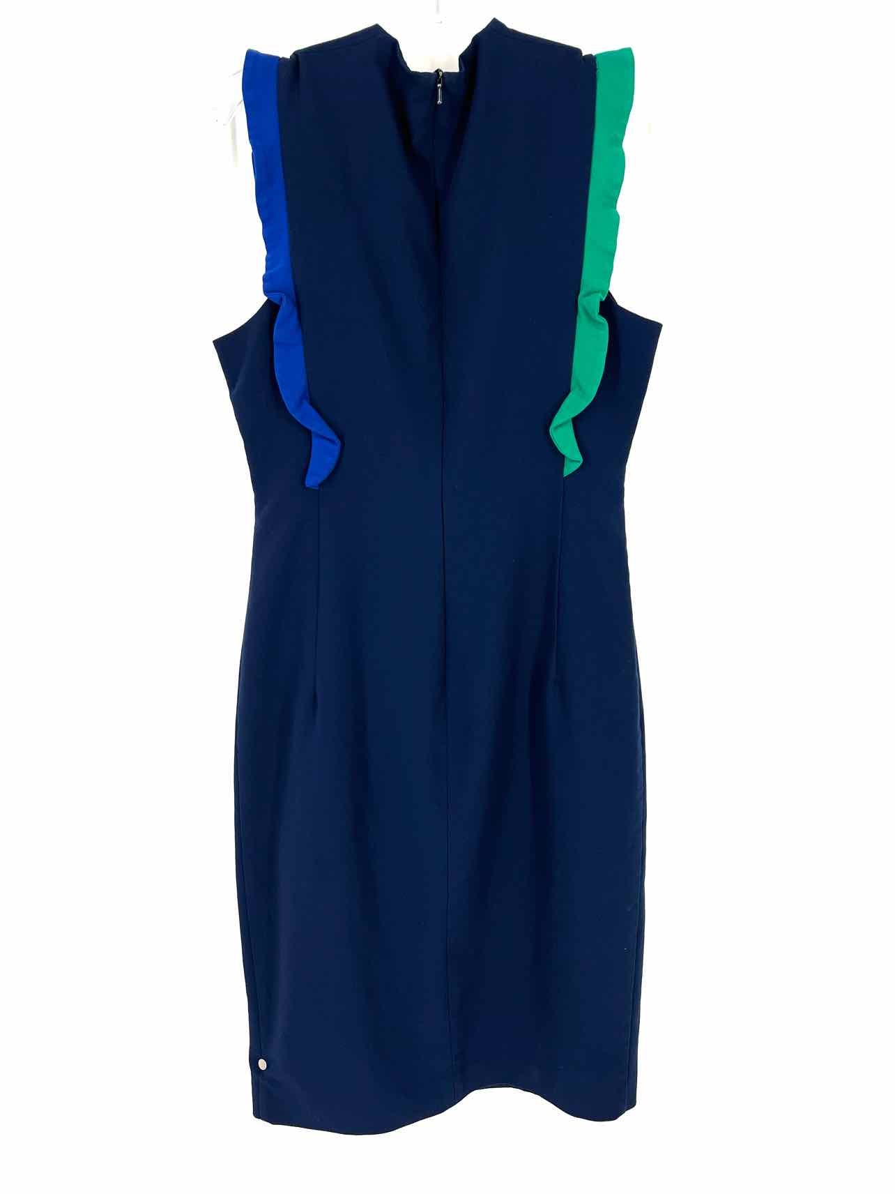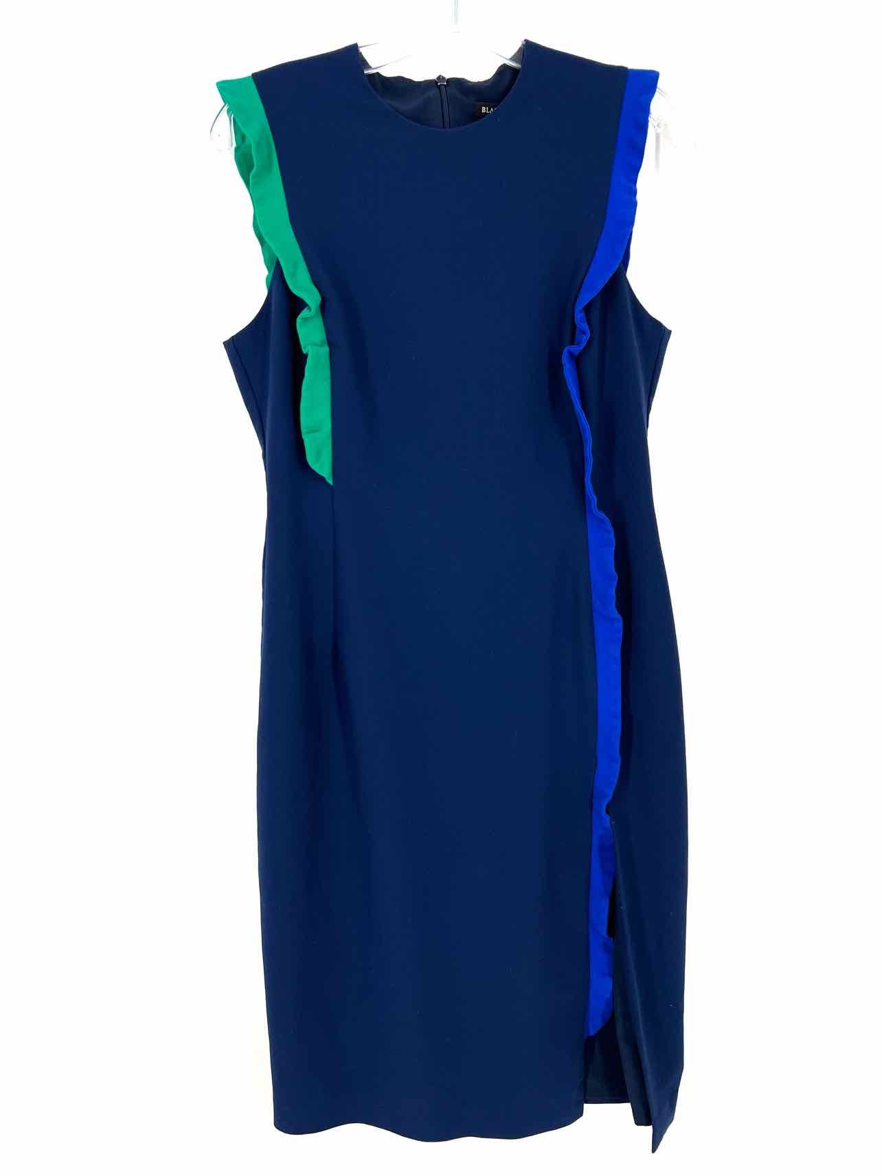 Black Halo Size 8 Navy/Green Ruffles Trim Designer Dress