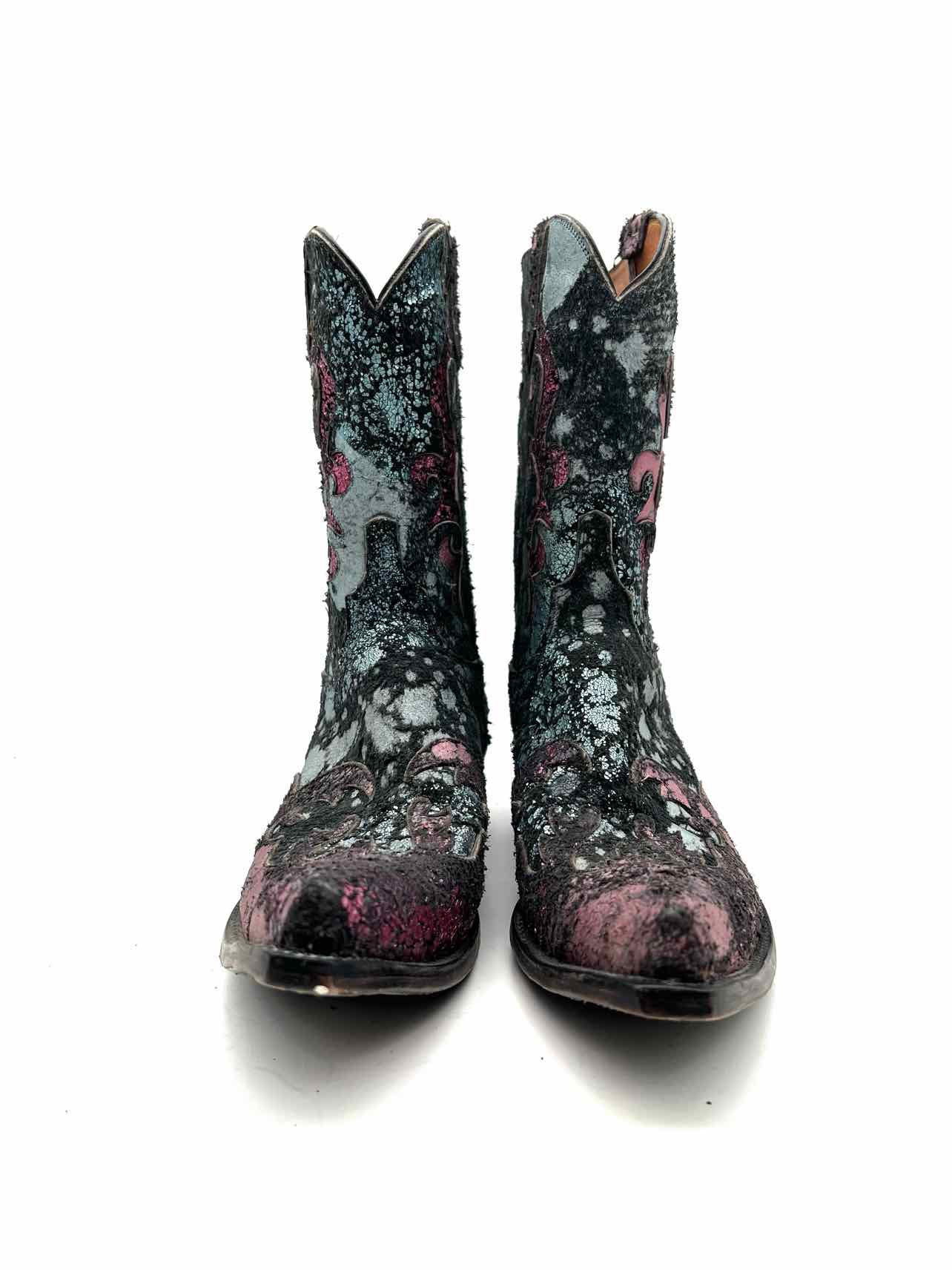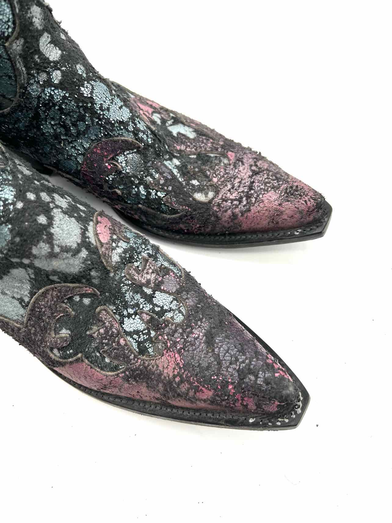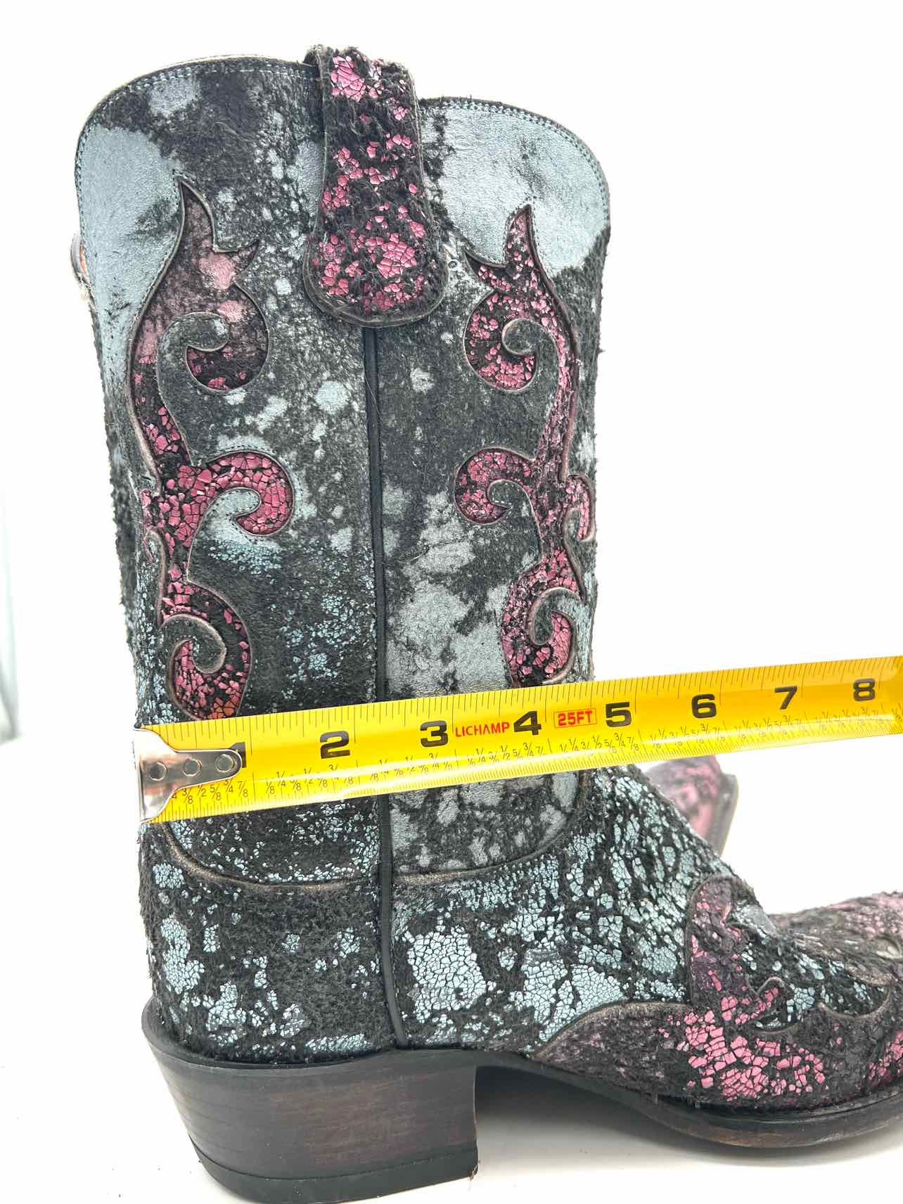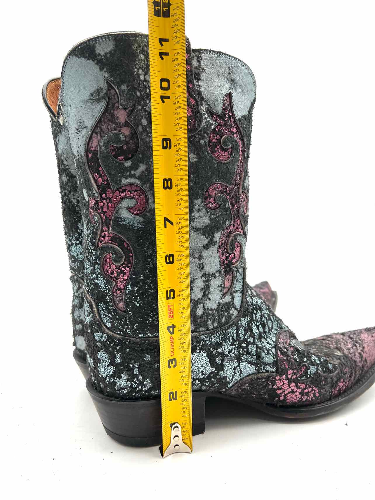 Lucchese Size 9 Bk/Pk/Bl Metallic Distressed Shoes Cowboy Boots