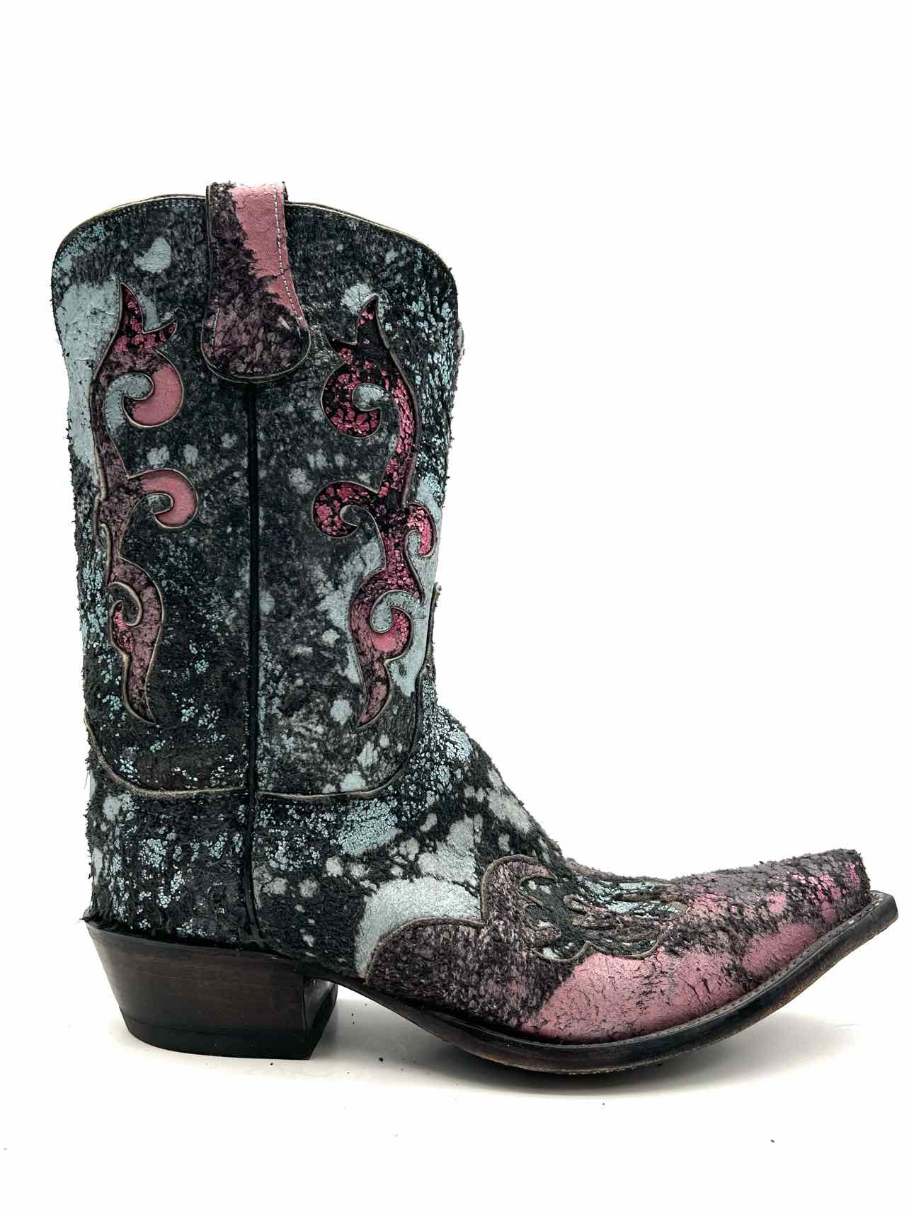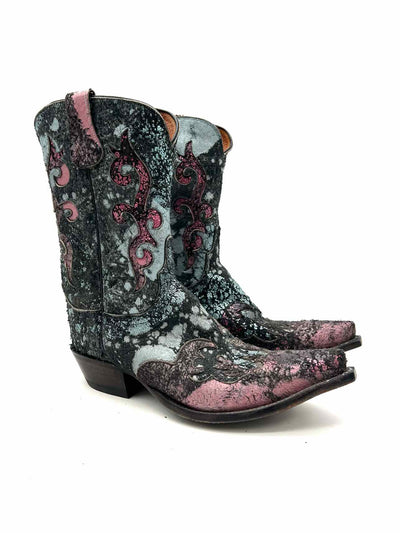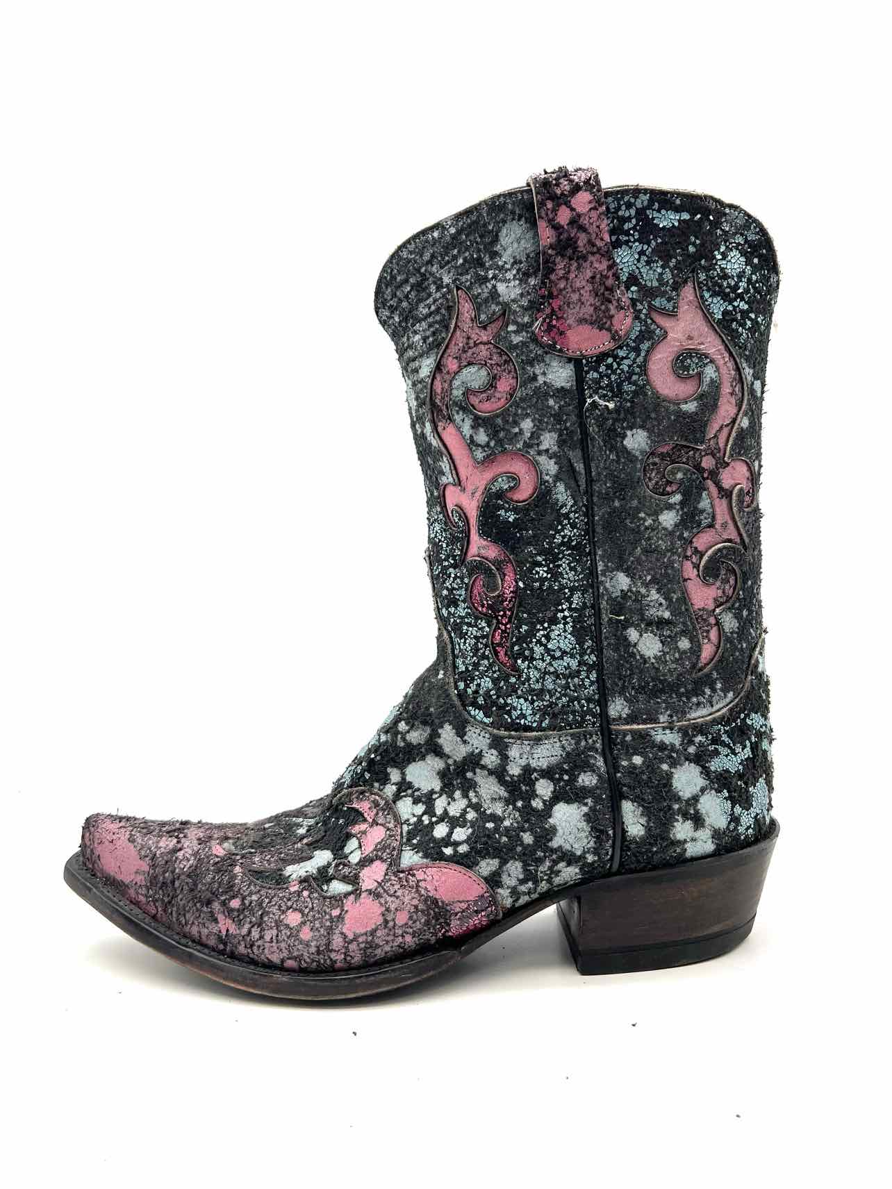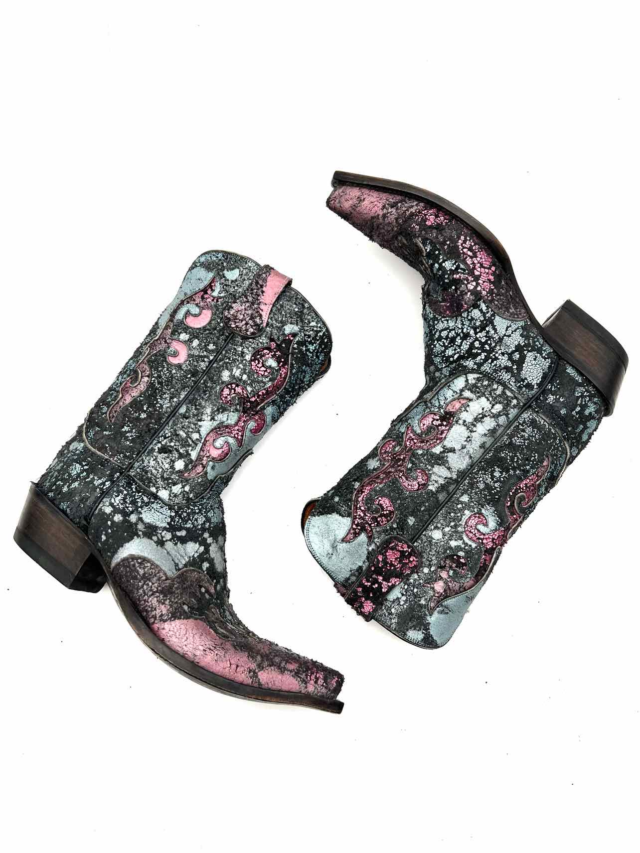 Lucchese Size 9 Bk/Pk/Bl Metallic Distressed Shoes Cowboy Boots