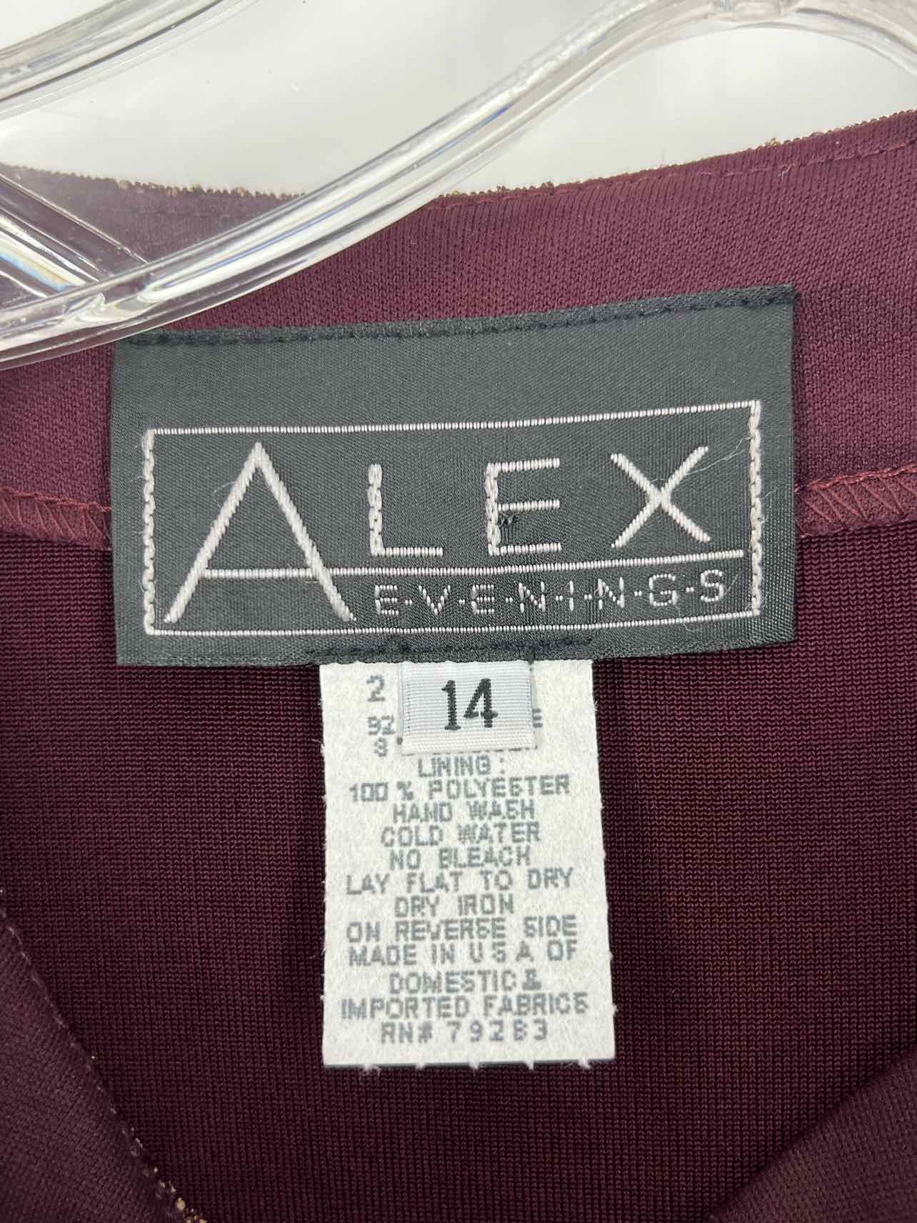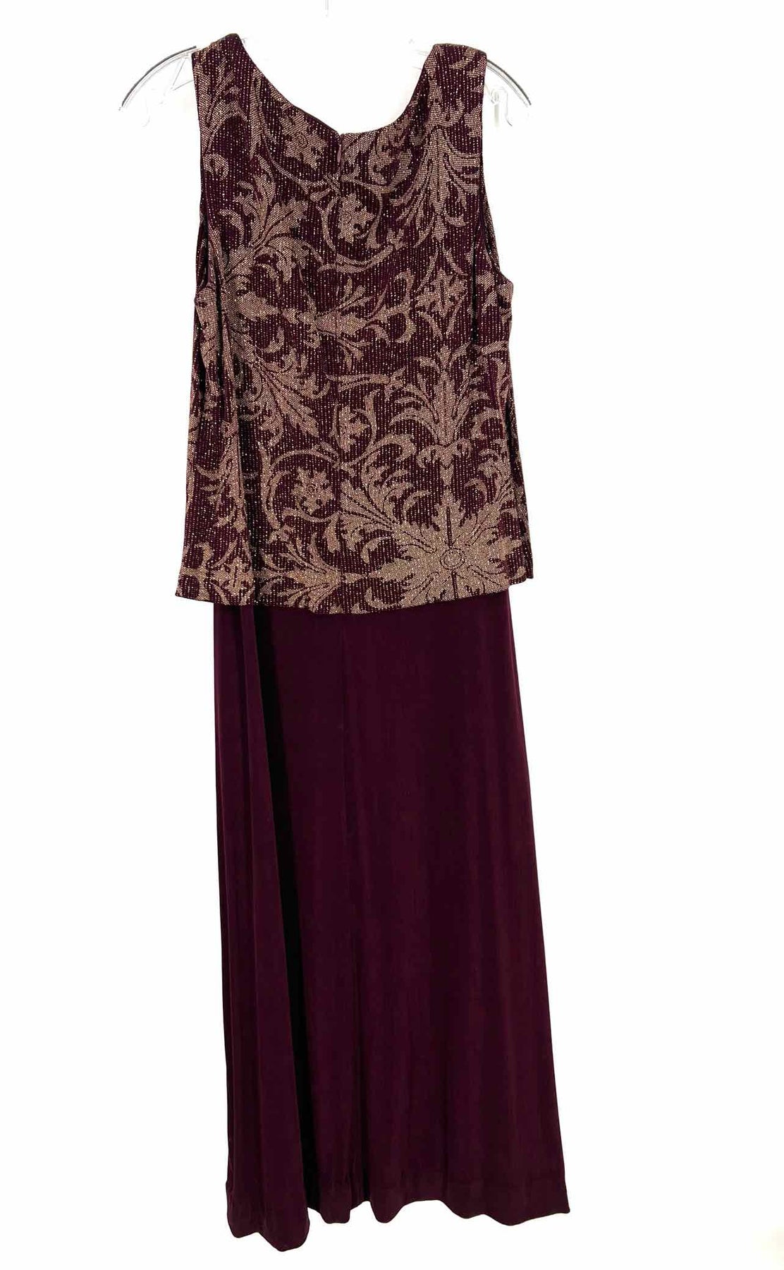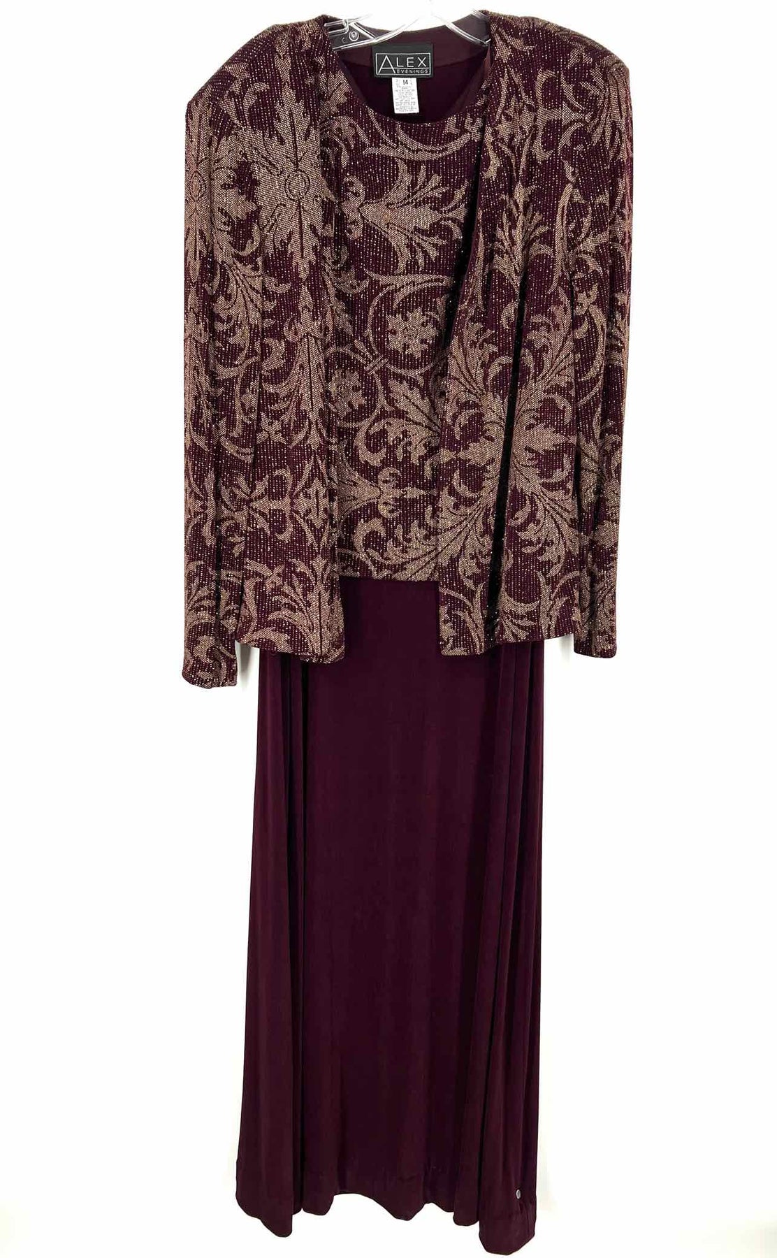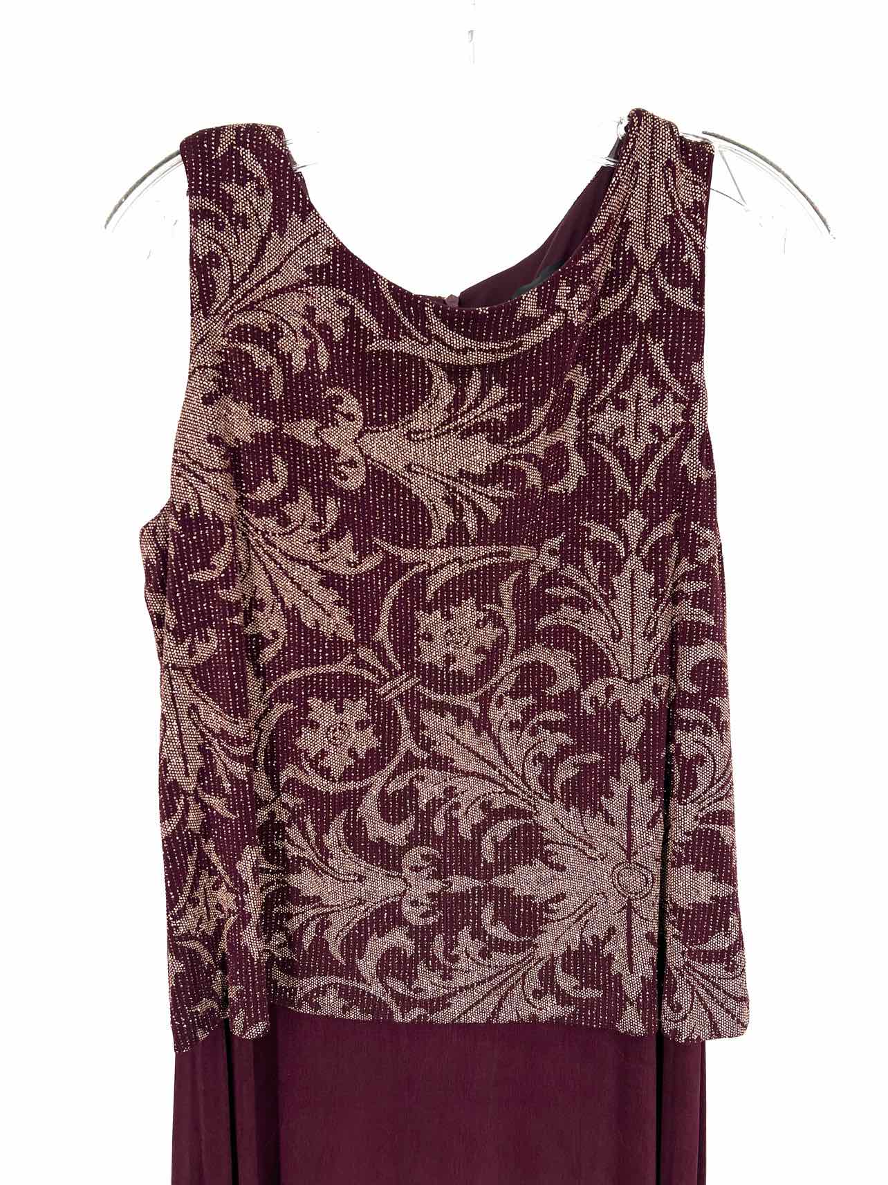 Alex Evenings Size 14 Wine/Gold Print Glitter Formal Wear Jacket Dress