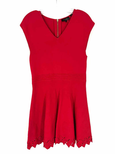 Ted Baker Size 5 Red Textured Cut-Outs Designer Dress