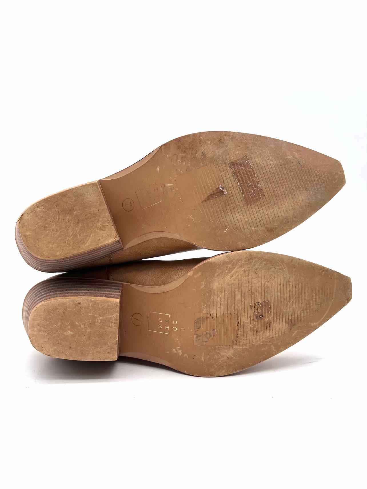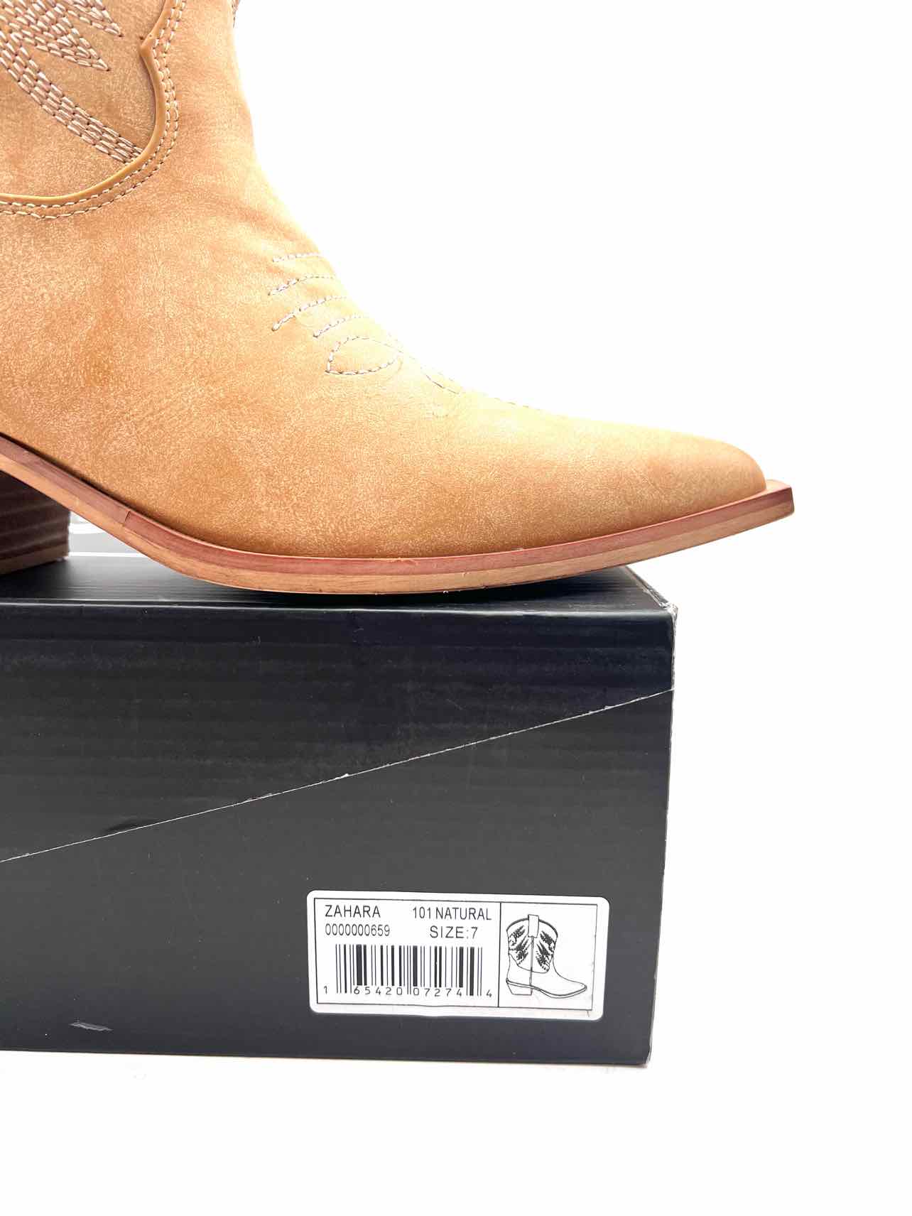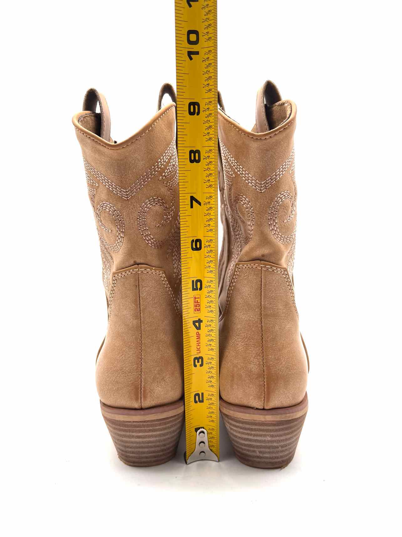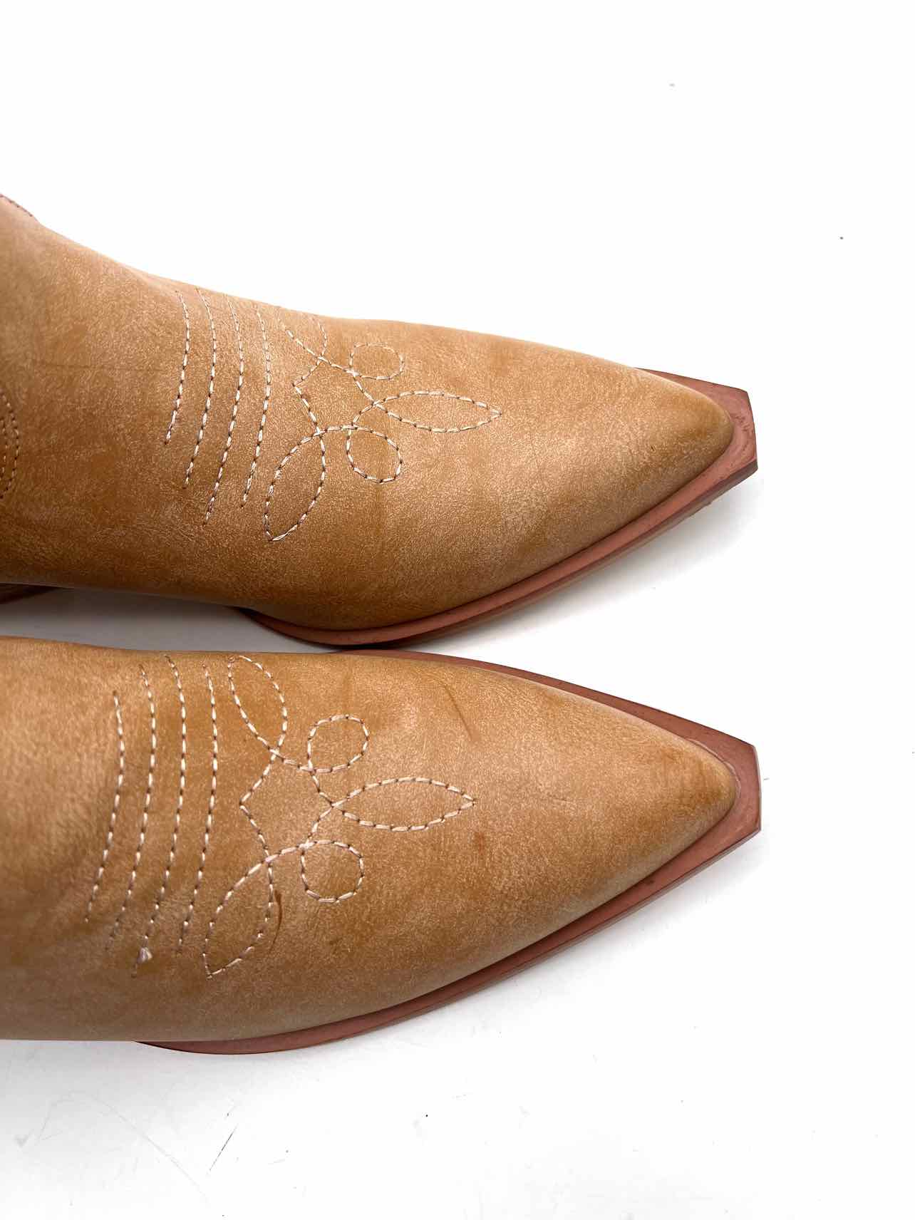 Shu Shop Size 7 Lt. Brown/Beige Stitched Faux Leather Shoes Cowboy Boots