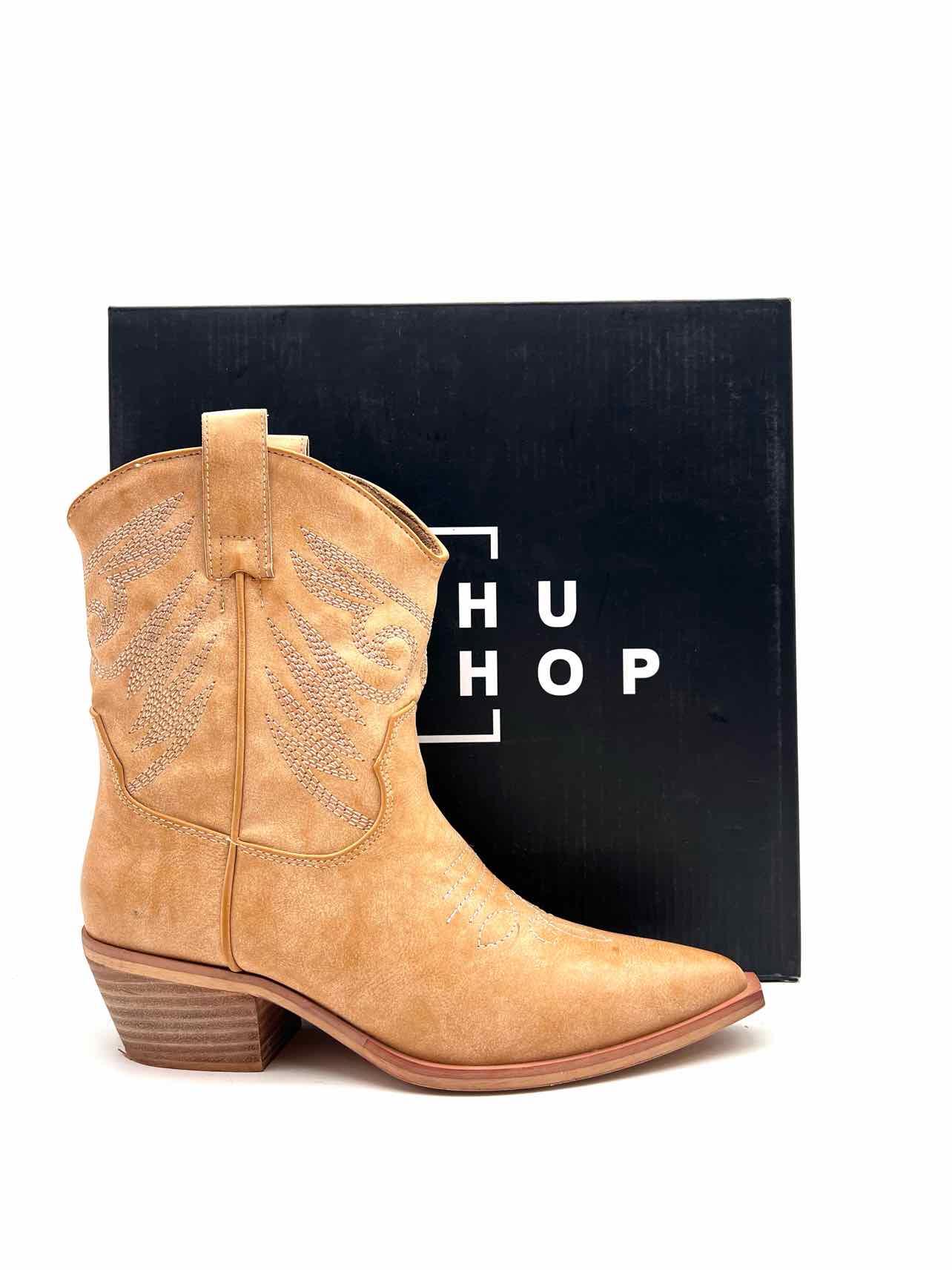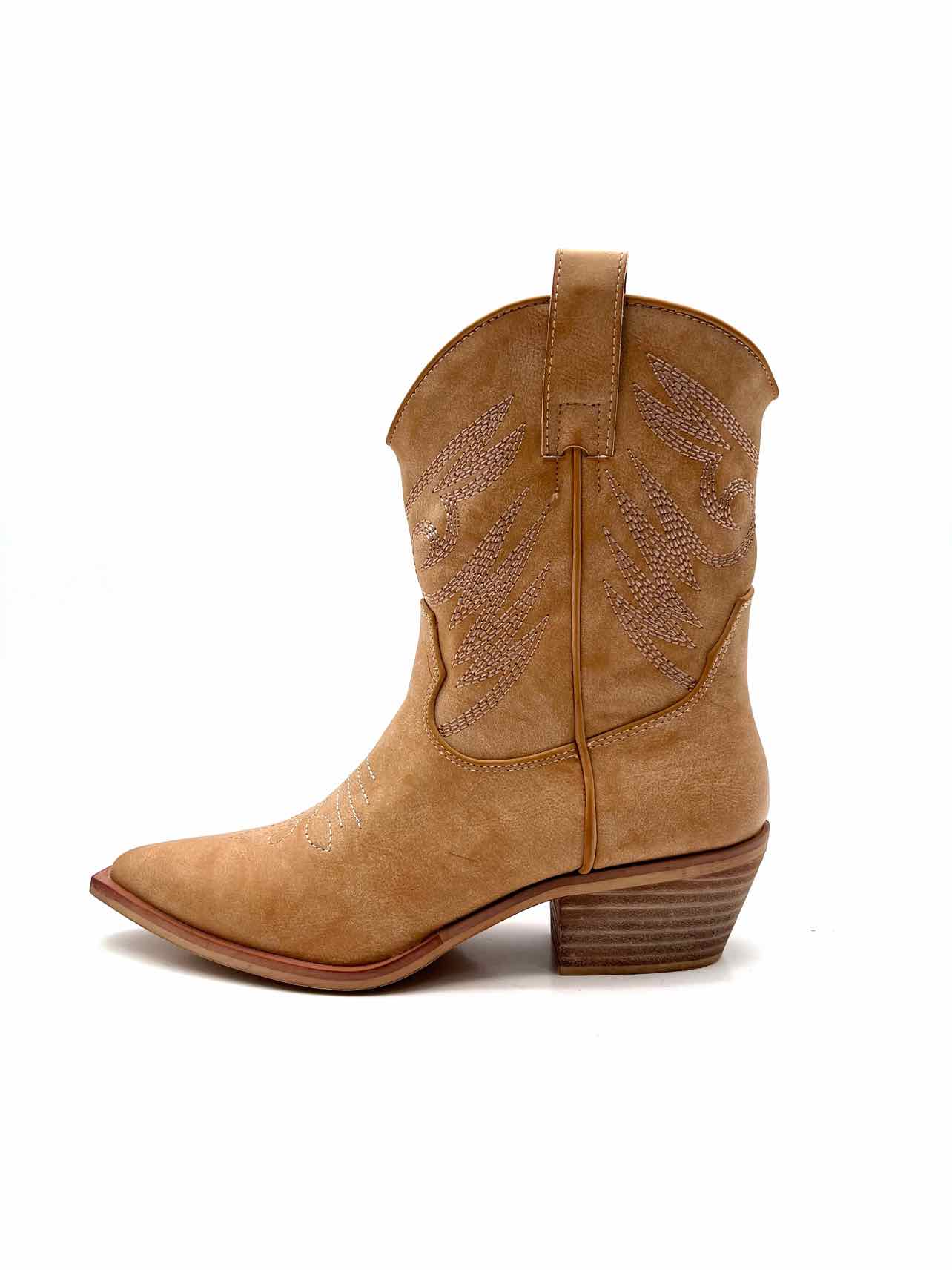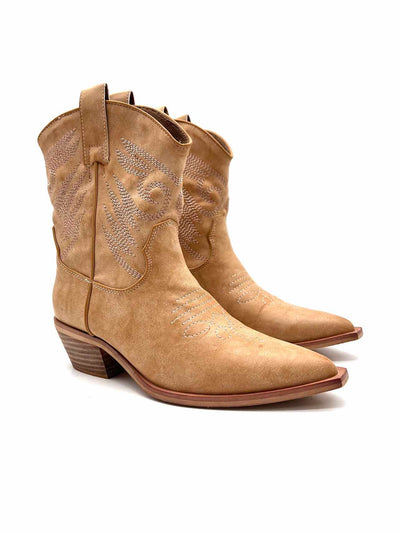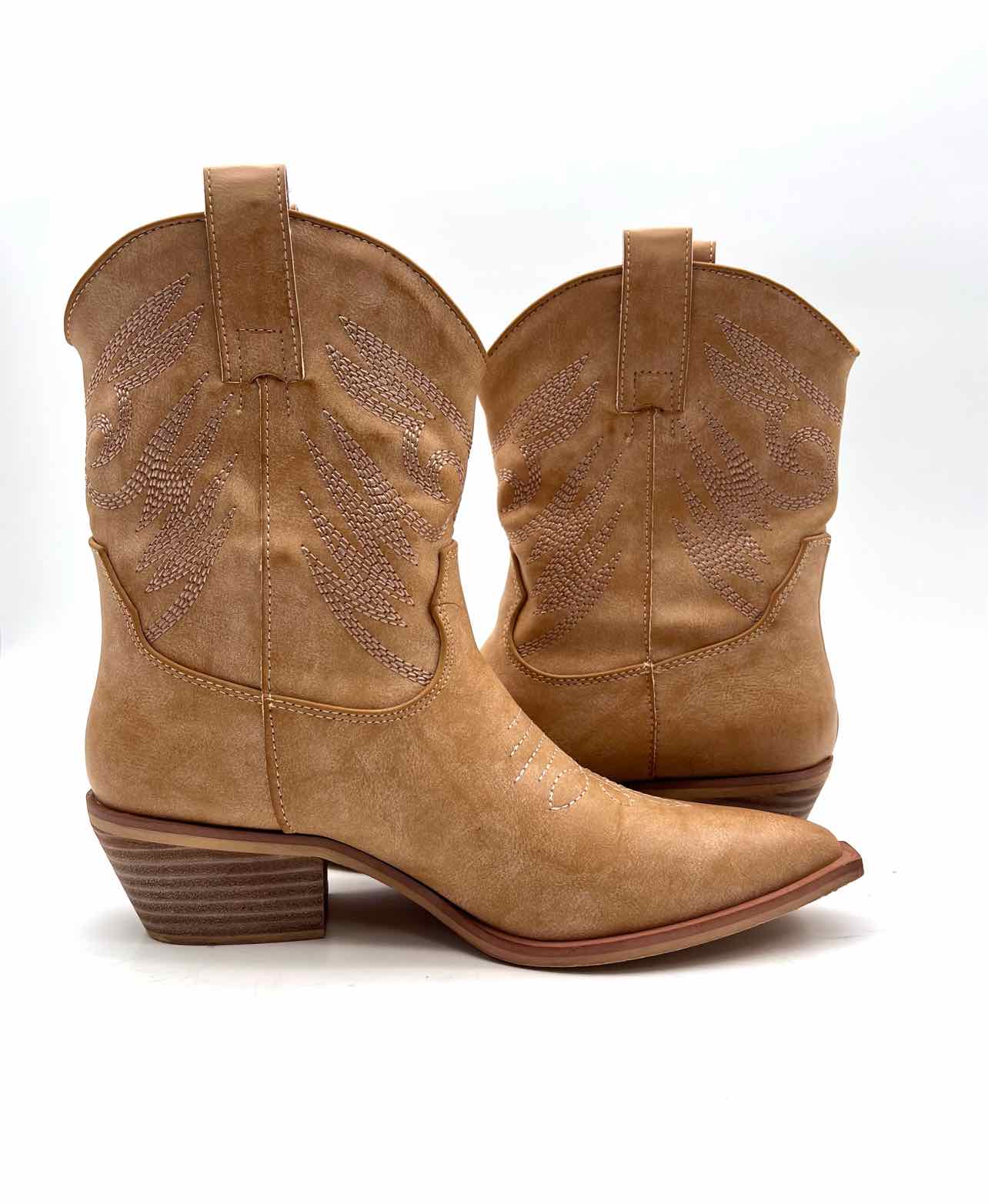 Shu Shop Size 7 Lt. Brown/Beige Stitched Faux Leather Shoes Cowboy Boots