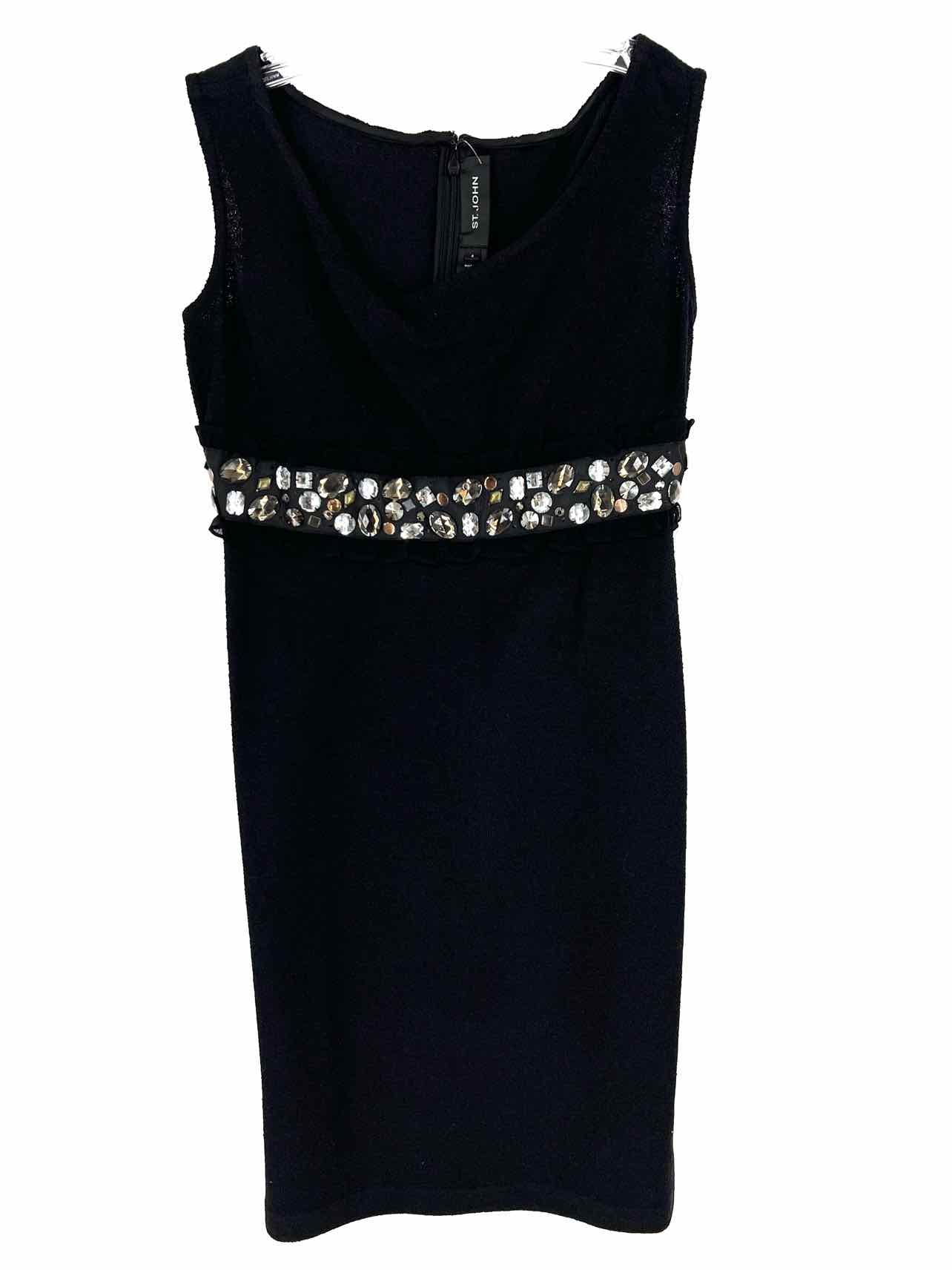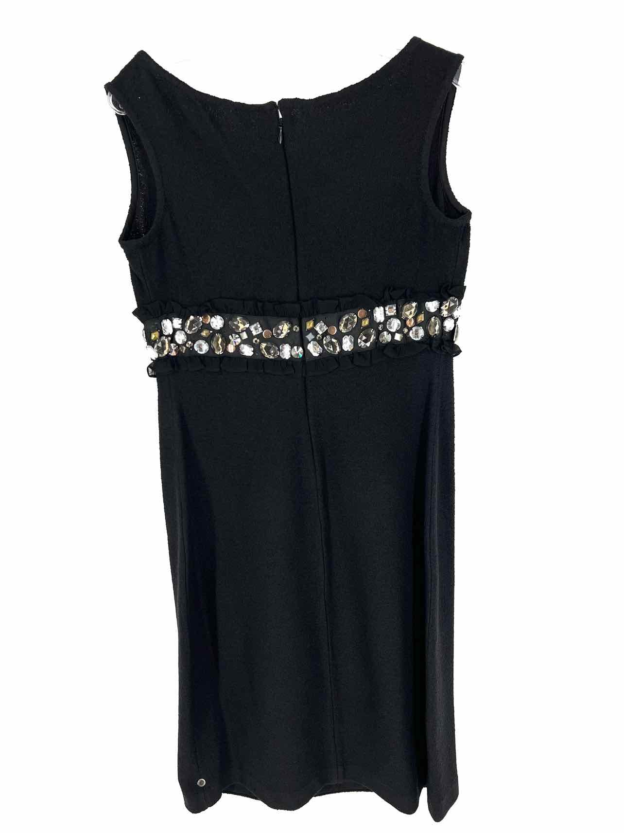 St. John Size 6 Black Jeweled Ruffle Designer Dress