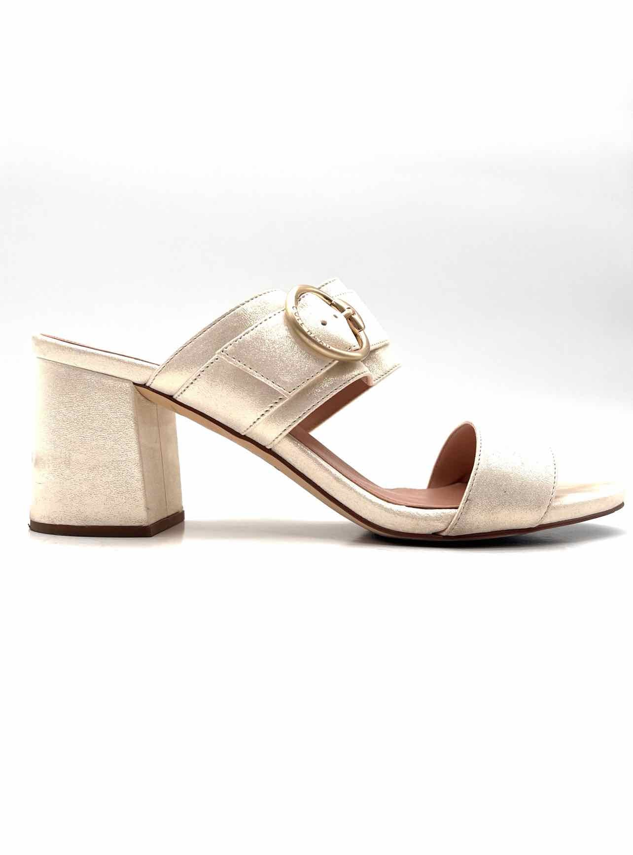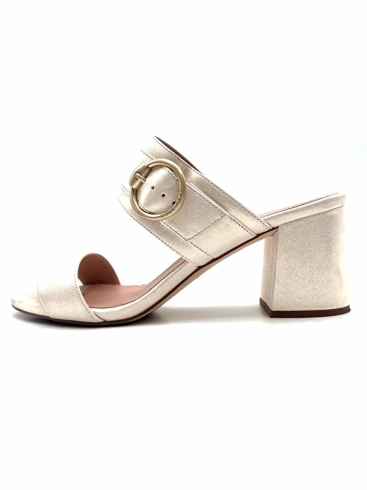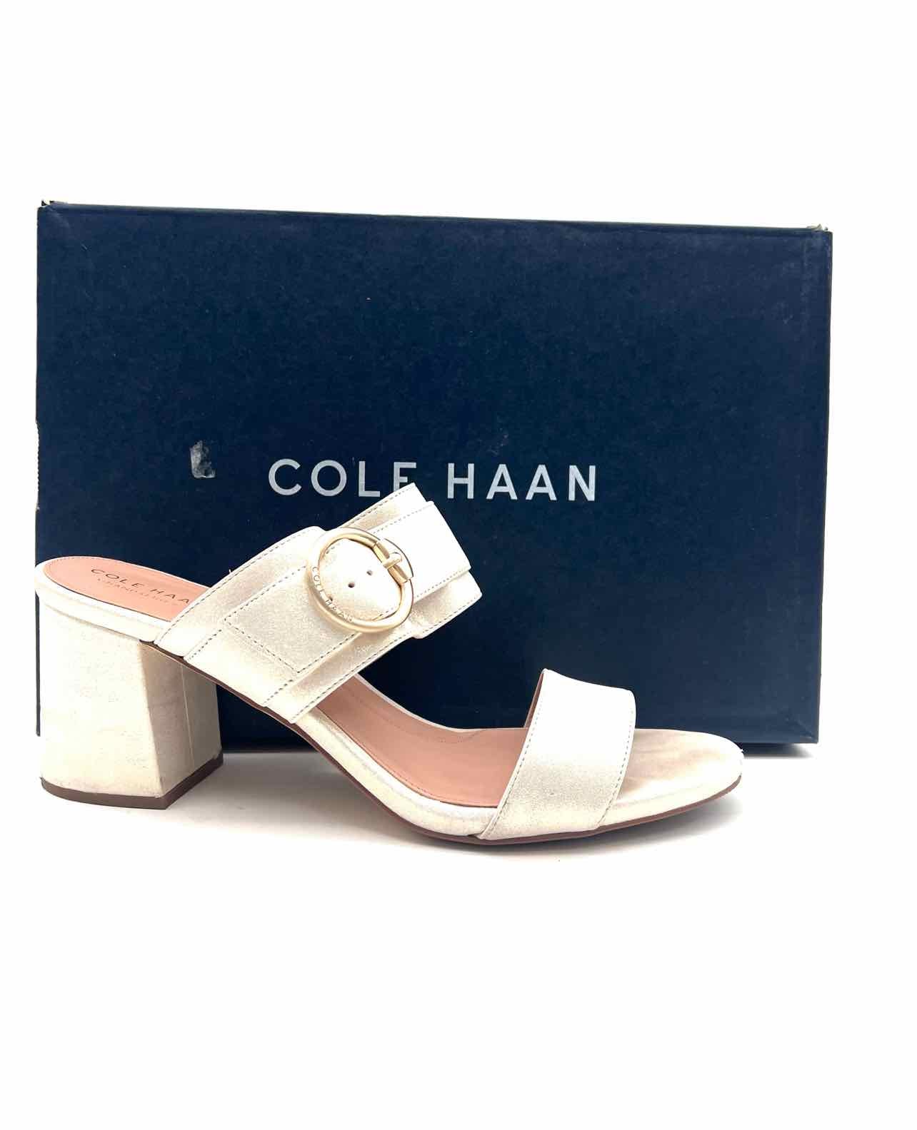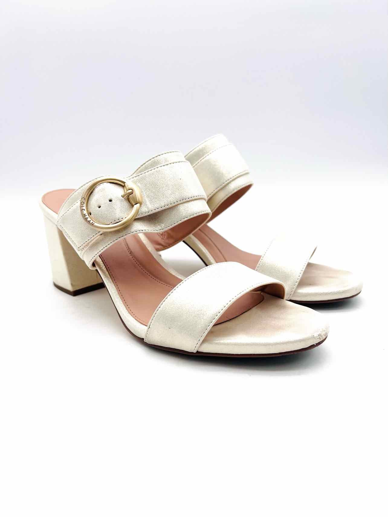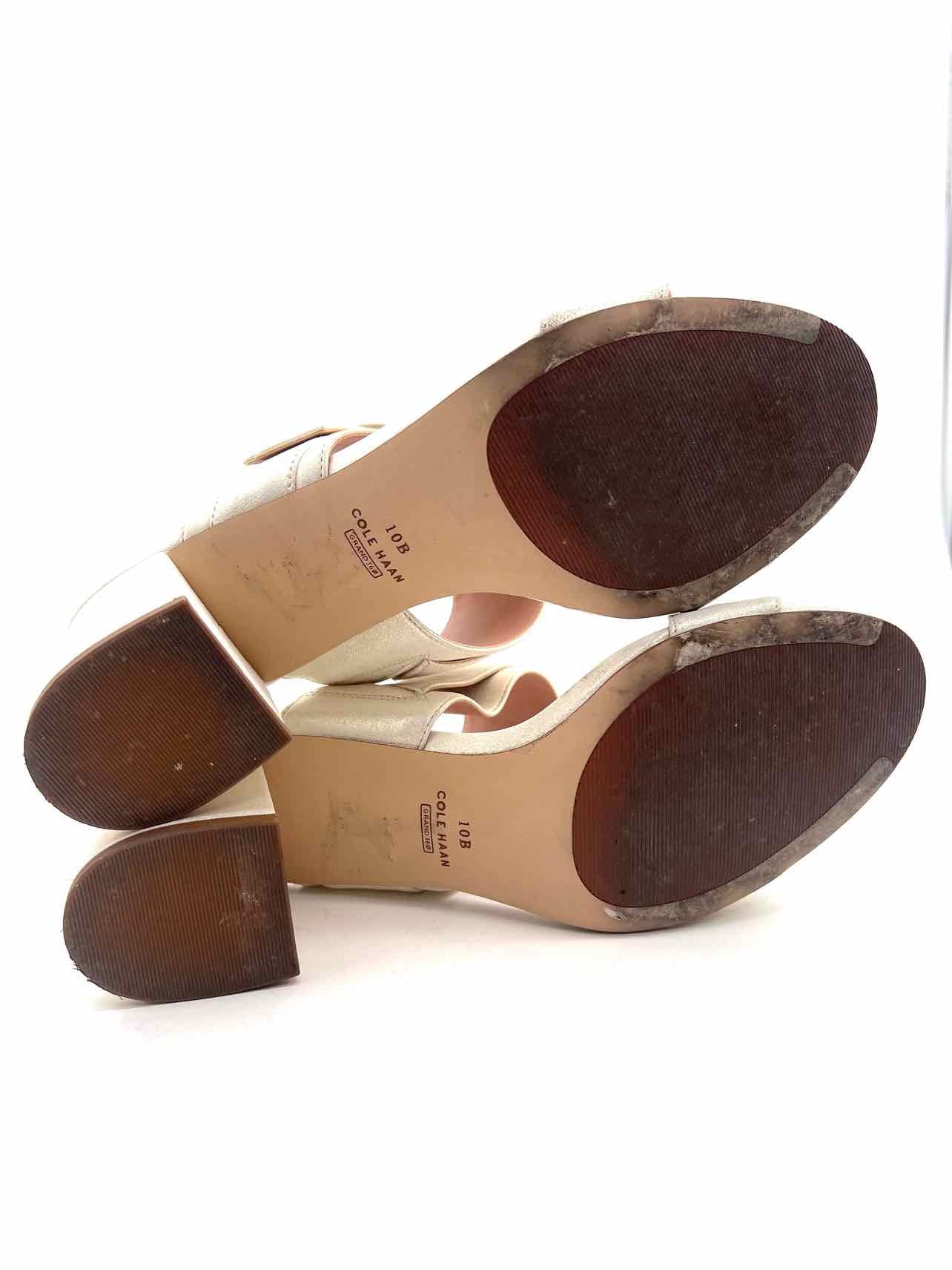 Cole Haan Size 10 White/Gold Buckle(s) Leather Shoes Sandals Heels