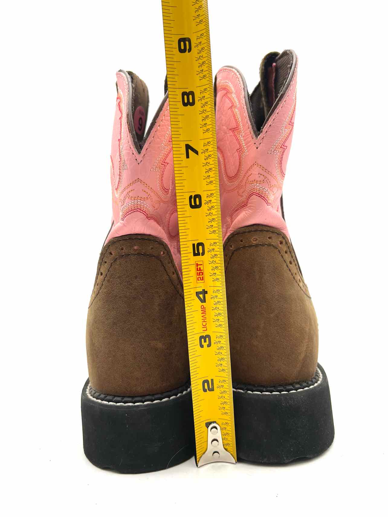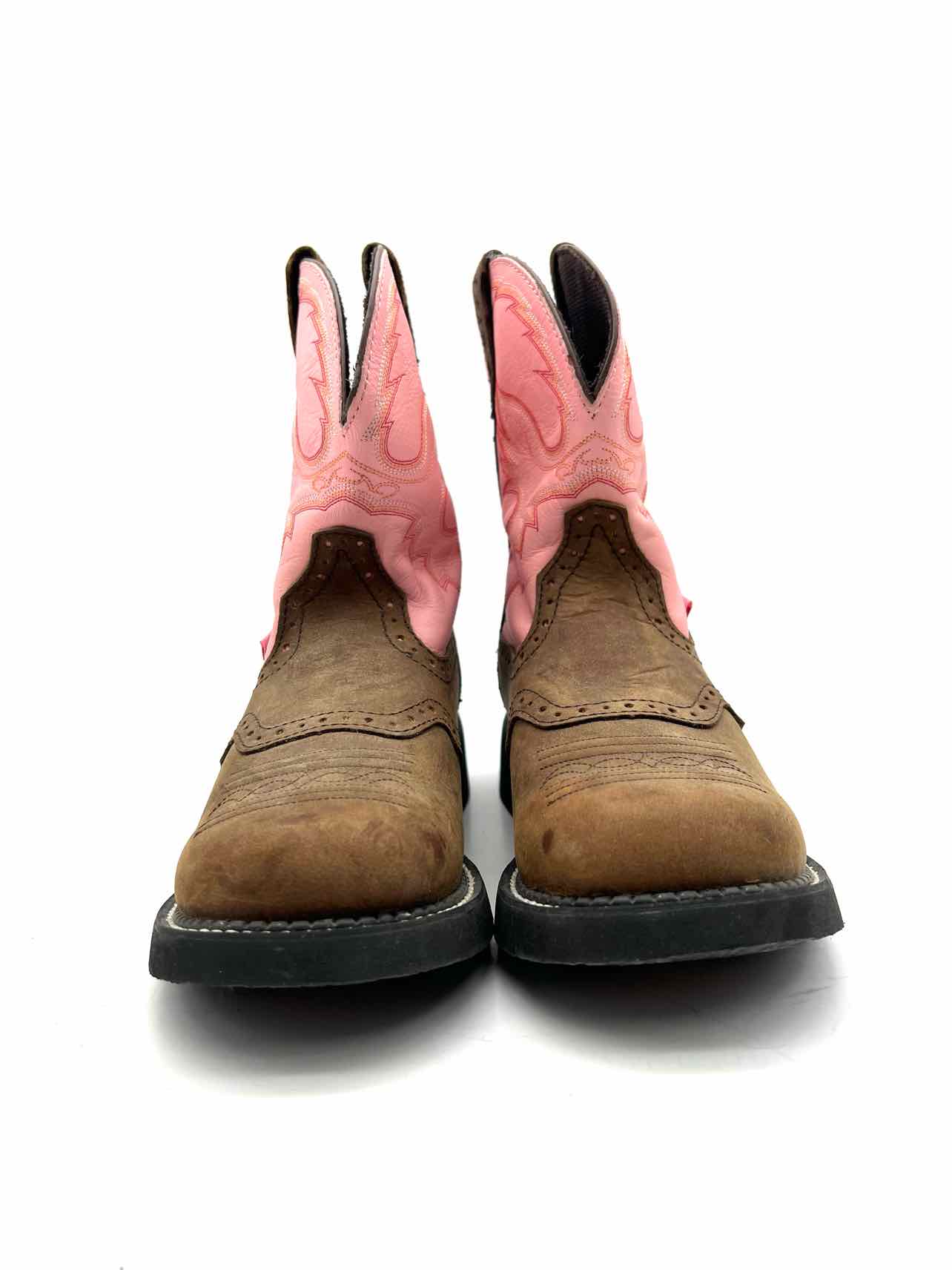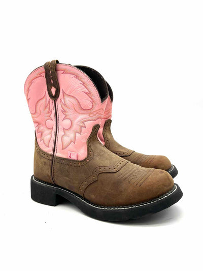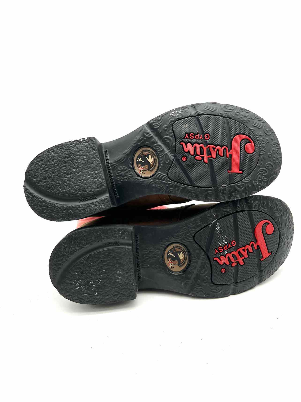 Justin Size 9 Brown/Pink Stitched Leather Shoes Cowboy Boots