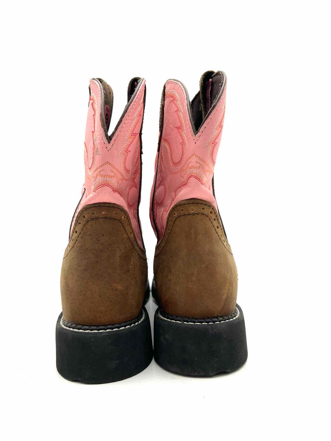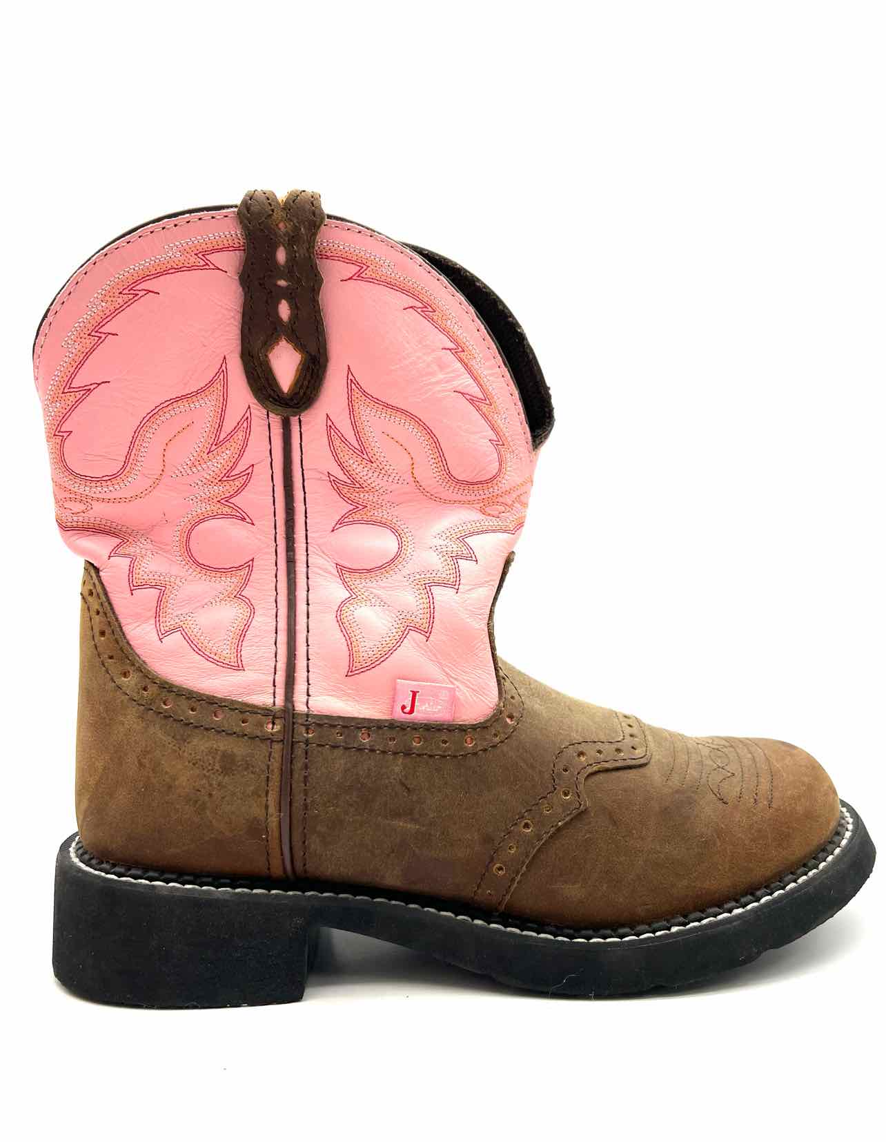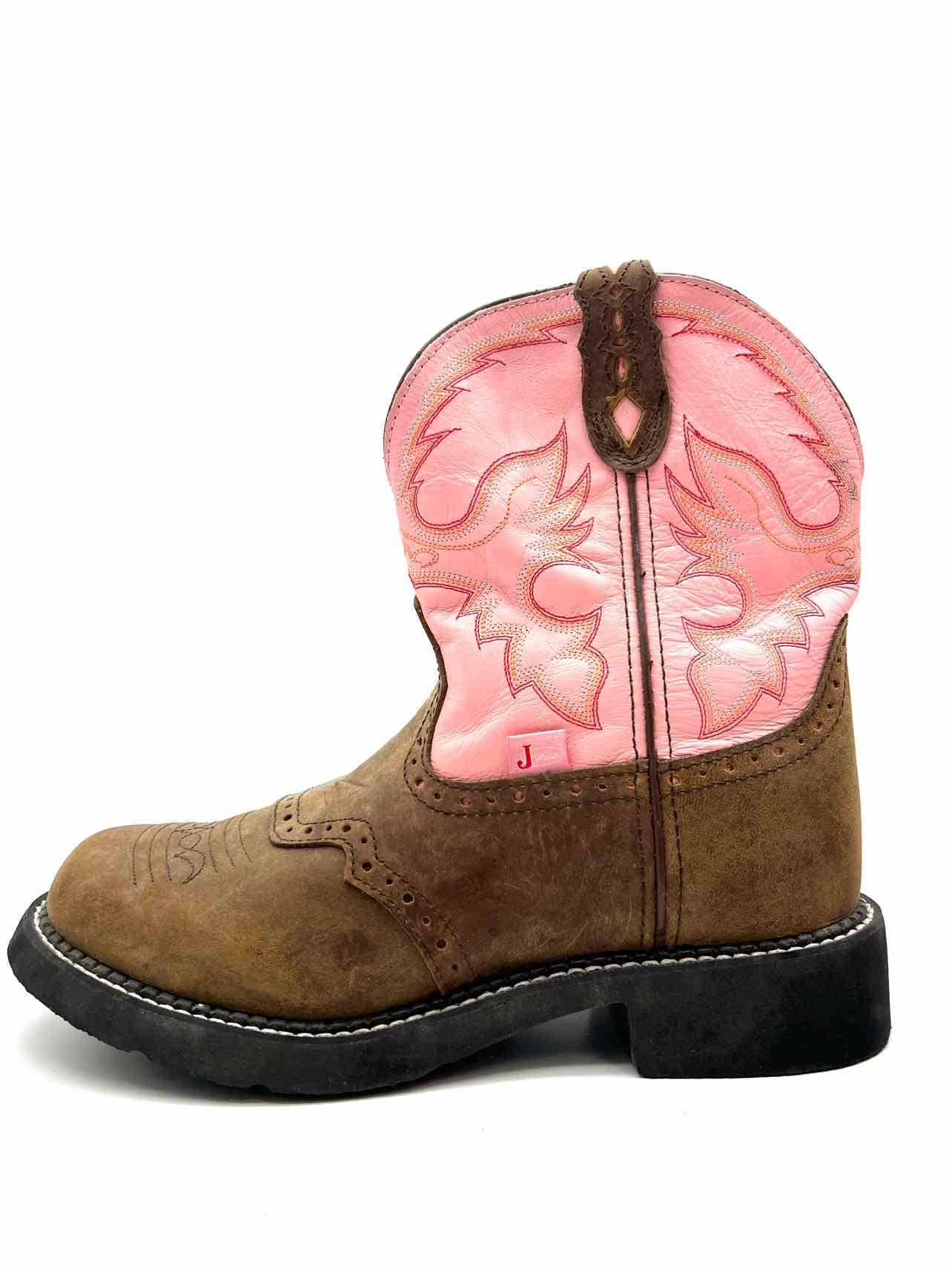 Justin Size 9 Brown/Pink Stitched Leather Shoes Cowboy Boots