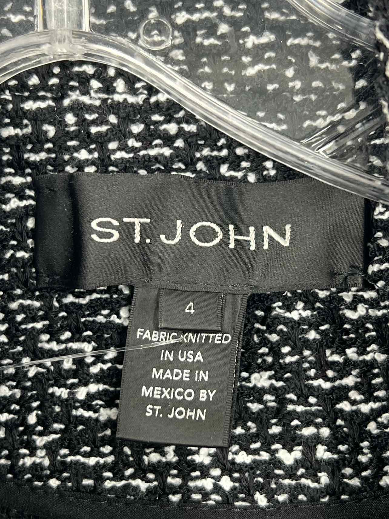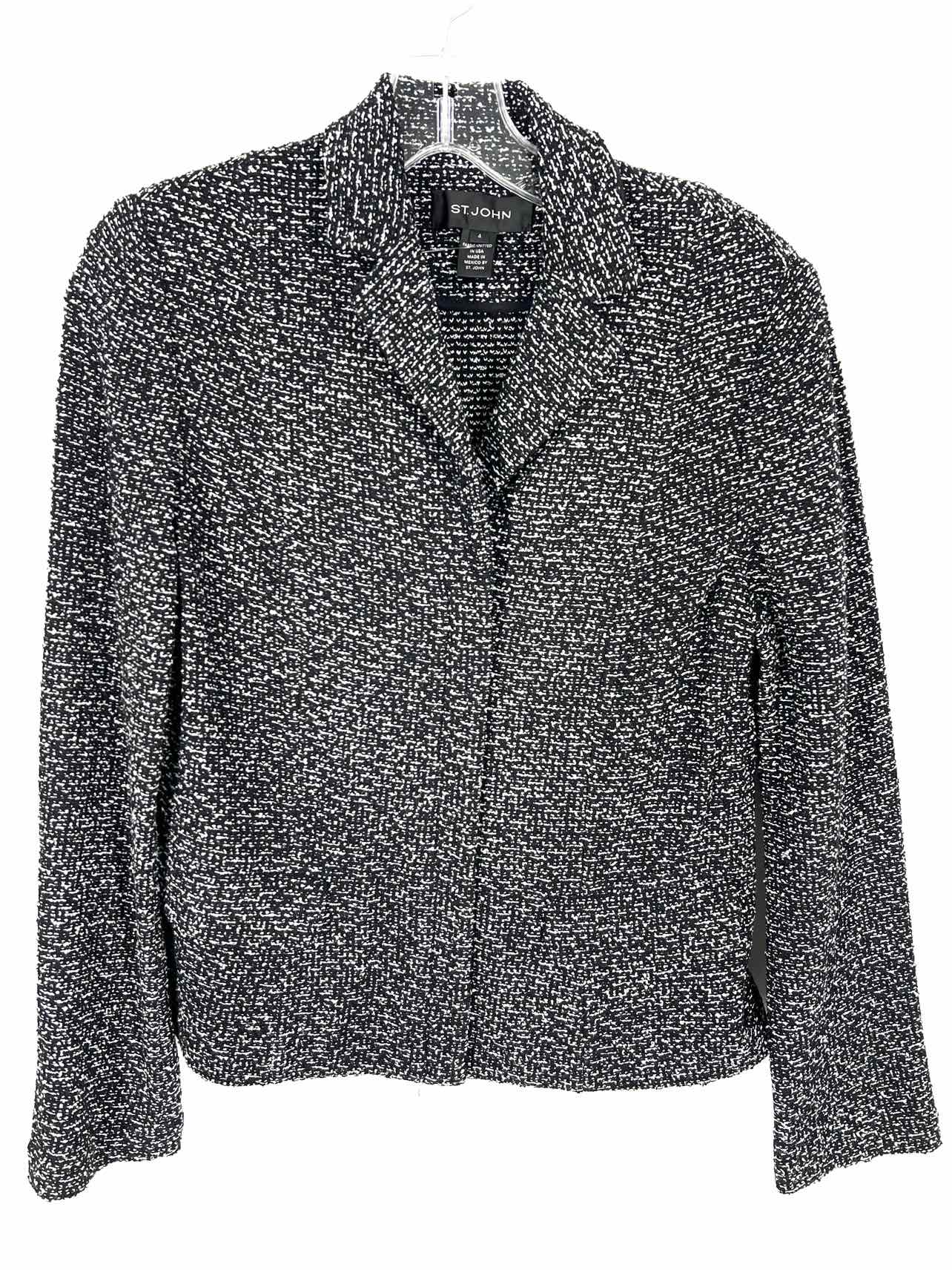 St. John Size 4 Black/White Tweed Wool Blend Designer Blazer