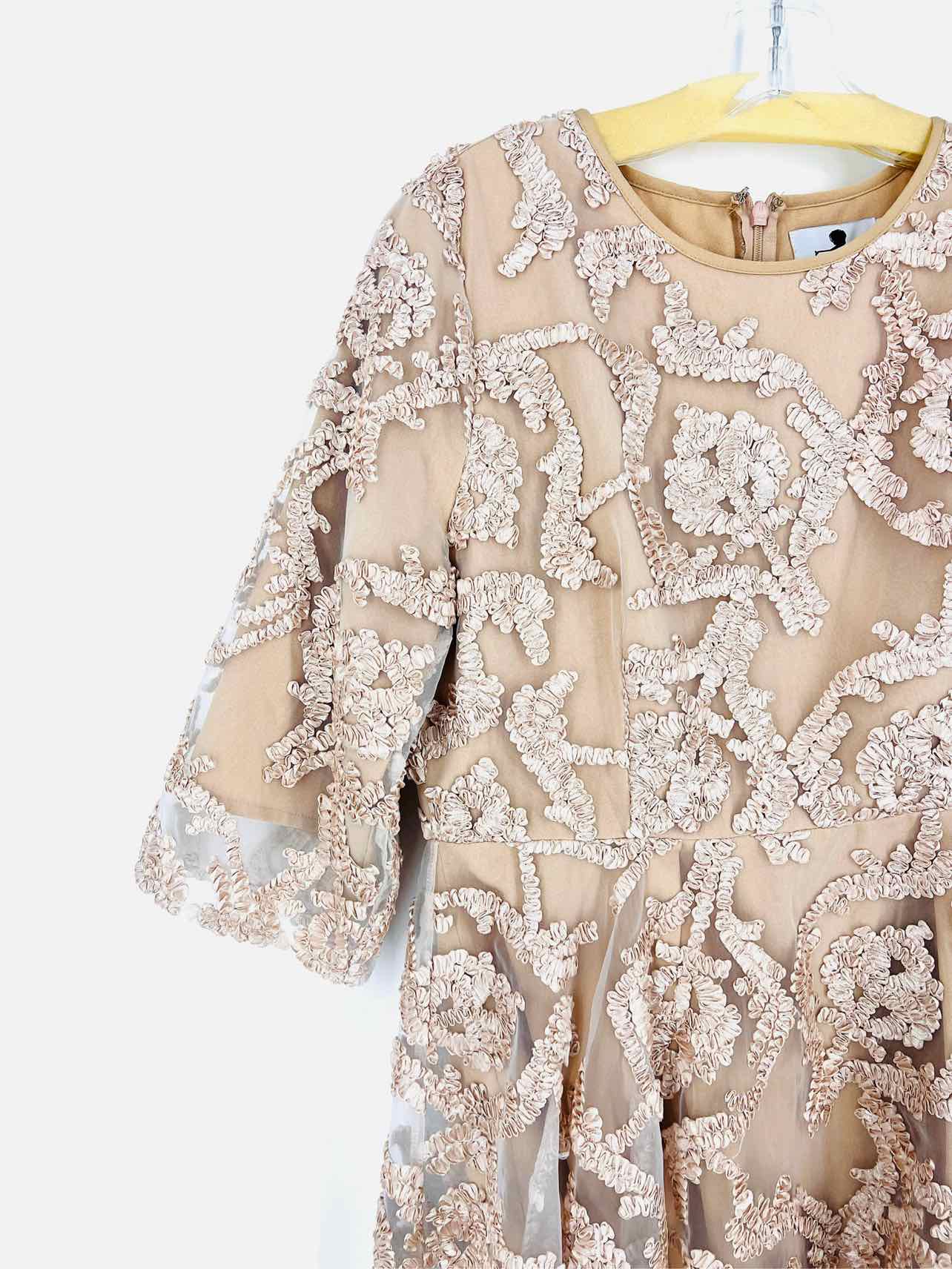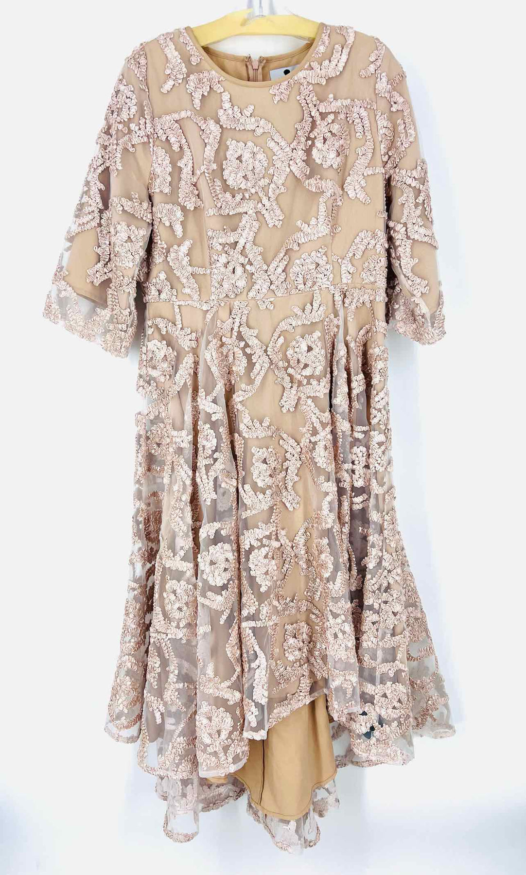 Dainty Jewells Size L Beige Soutache Maxi Formal Wear Dress-Formal Wear