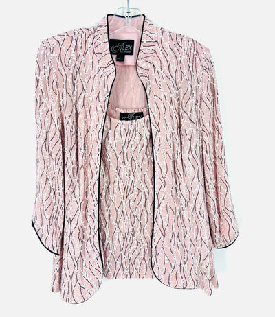 Alex Evenings Size L Pk/Wh/Bk Textured Sequin Formal Wear Cardigan Set